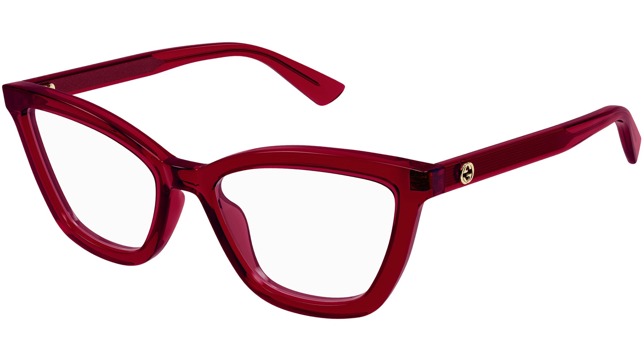 Occhiali da vista Gucci GG1686O 009 donna con montatura pantos in acetato riciclato rosso trasparente e lenti demo. Linea: GG Logo. Codice modello: GG1686O. Codice colore: 009. Made in Italy. Rivenditore autorizzato Gucci online. Gli occhiali vengono consegnati con custodia e accessori originali e sono coperti dalla garanzia ufficiale di 12 mesi del produttore.