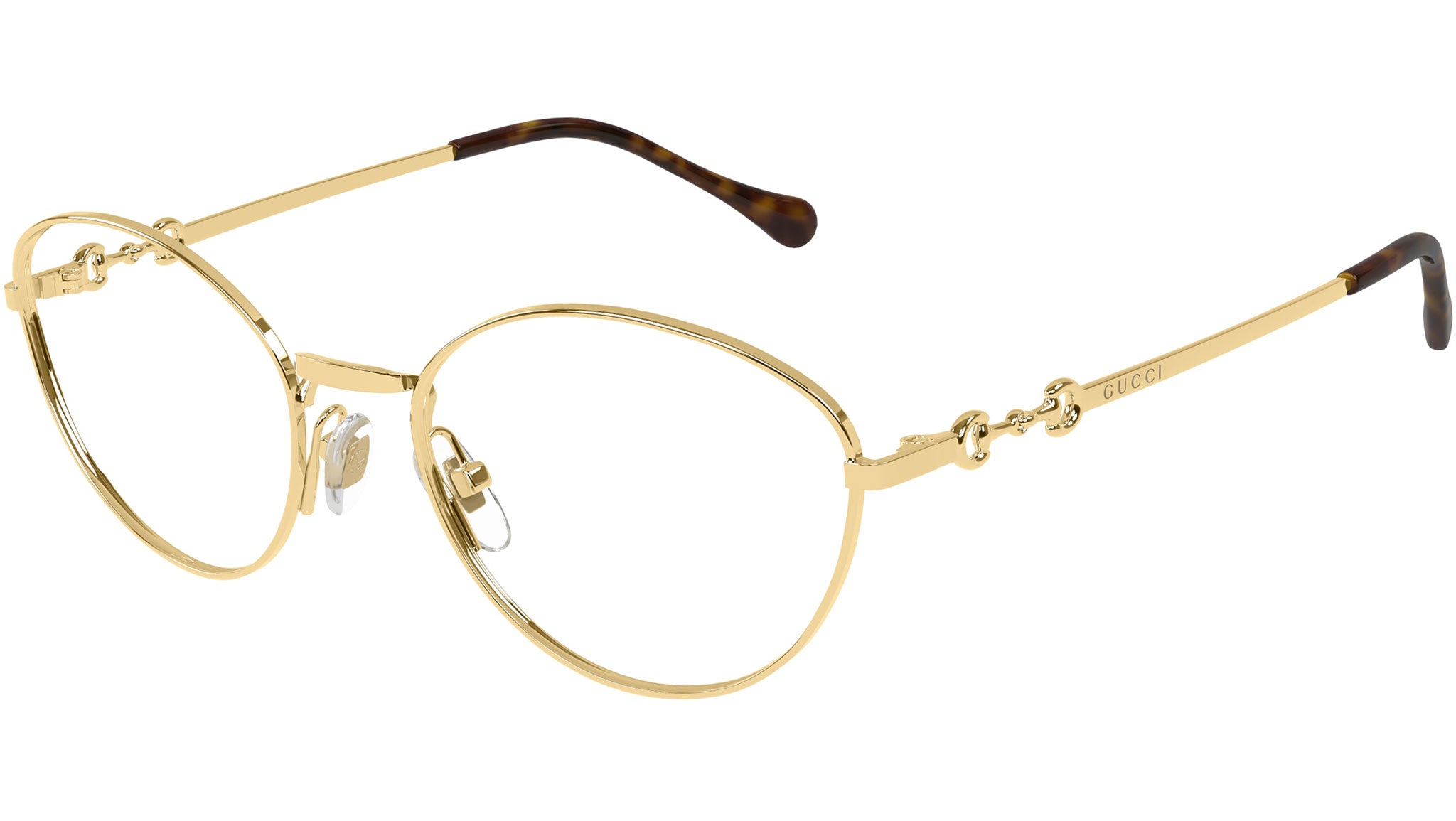 Occhiali da vista Gucci modello GG1699O linea Horsebit in metallo forma a gatto codice colore 001 oro endura lucido con aste in oro e lenti demo. Rivenditore autorizzato Gucci online. Gli occhiali vengono consegnati con custodia e accessori originali e sono coperti dalla garanzia ufficiale di 12 mesi del produttore.