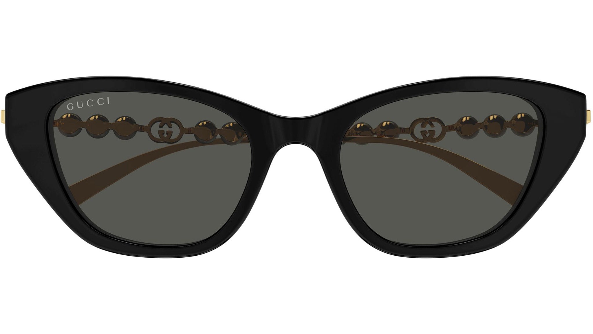 Occhiali da sole Gucci GG1968S 001 donna con montatura cat eye in acetato riciclato nero lucido tinta unita e lenti grigio tinta unita in bio nylon. Linea: Emblem. Codice modello: GG1968S. Codice colore: 001. Made in Japan. Rivenditore autorizzato Gucci online. Gli occhiali vengono consegnati con custodia e accessori originali e sono coperti dalla garanzia ufficiale di 12 mesi del produttore.
