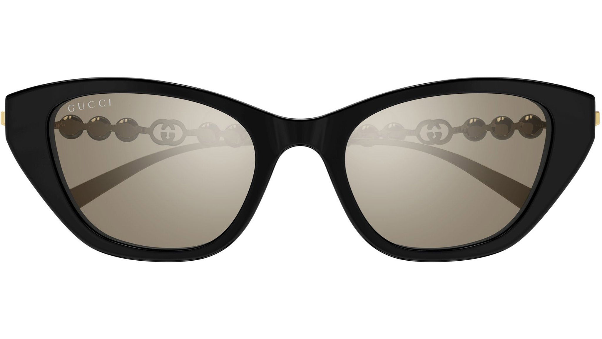 Occhiali da sole Gucci GG1968S 004 donna con montatura cat eye in acetato riciclato nero lucido tinta unita e lenti beige chiaro solido + flash elettrico in bio nylon. Linea: Emblem. Codice modello: GG1968S. Codice colore: 004. Made in Japan. Rivenditore autorizzato Gucci online. Gli occhiali vengono consegnati con custodia e accessori originali e sono coperti dalla garanzia ufficiale di 12 mesi del produttore.