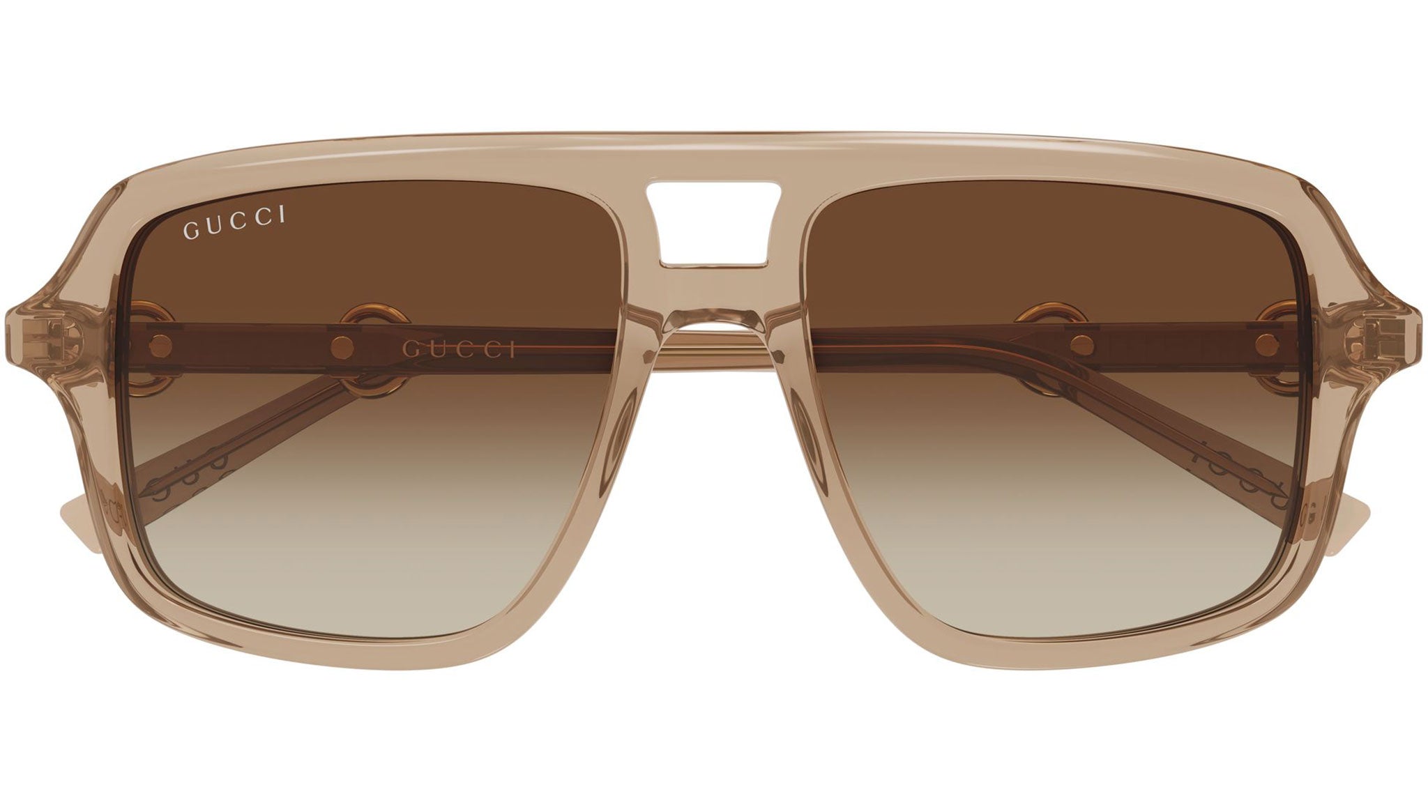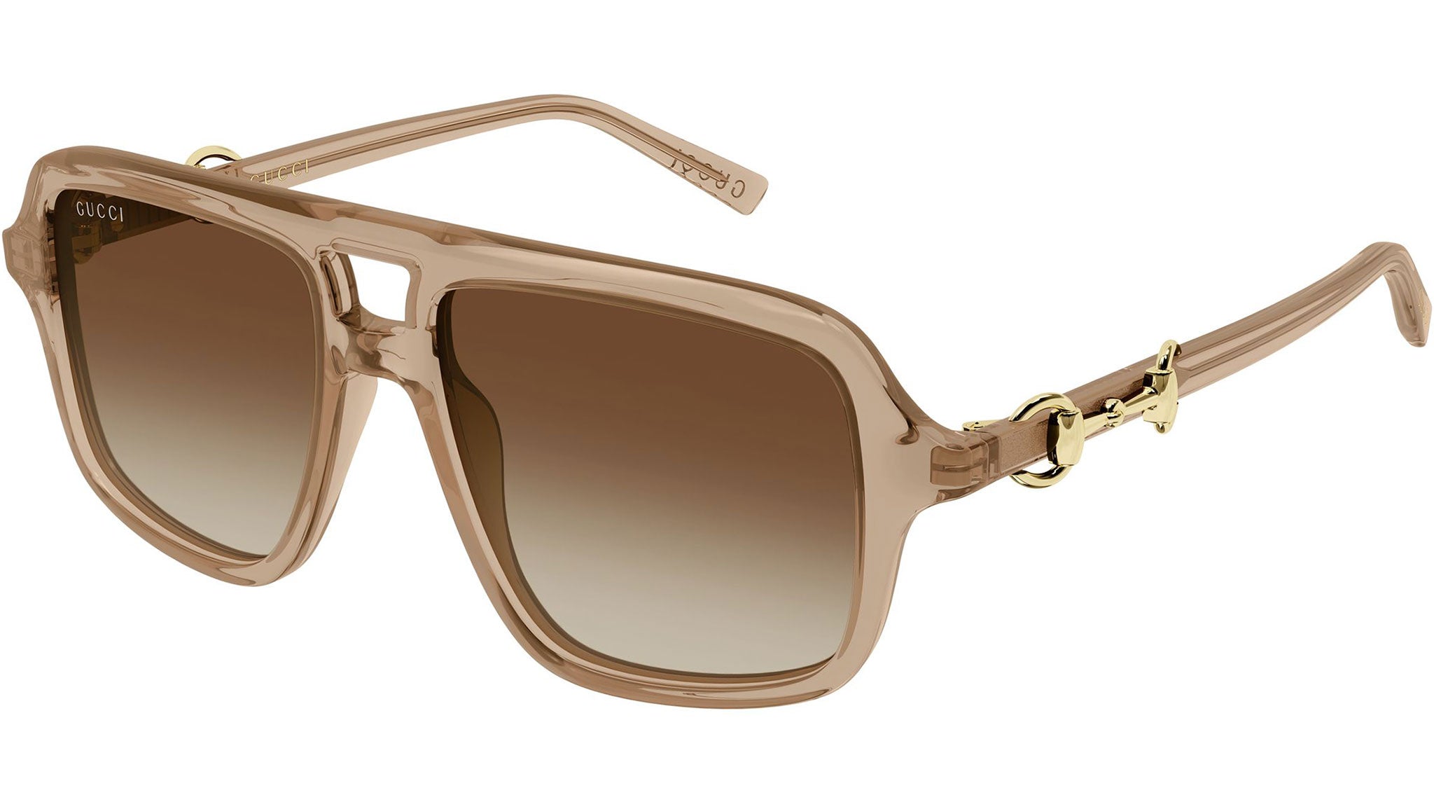 Occhiali da sole Gucci GG2052S donna con montatura aviatore in acetato riciclato marrone chiaro trasparente lucido e lenti marrone sfumato. Linea: Sign. Codice modello: GG2052S. Codice colore calibro 55: 010. Calibro 58: 001. Made in Japan. Rivenditore autorizzato Gucci online. Gli occhiali vengono consegnati con custodia e accessori originali e sono coperti dalla garanzia ufficiale di 12 mesi del produttore.