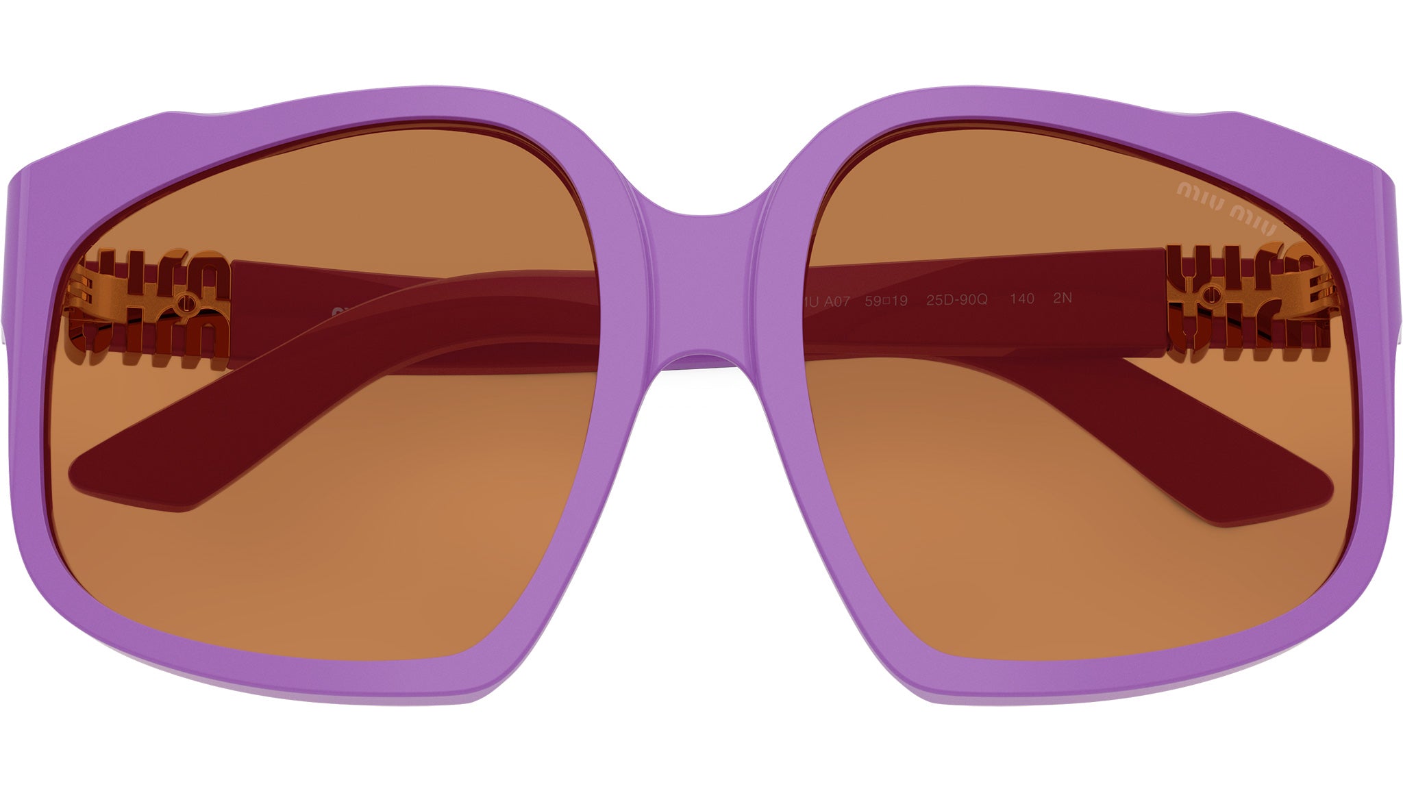 Occhiali da sole Miu Miu MU A07S 25D90Q donna con montatura geometrica in acetato viola e lenti in bio poliammide color marrone. Vestibilità a ponte alto. Linea: Fashion Show. Codice modello: 0MU A07S. Codice colore: 25D90Q. Made in Italy. Rivenditore autorizzato Miu Miu online. Gli occhiali vengono consegnati con custodia e accessori originali e sono coperti dalla garanzia ufficiale di 12 mesi del produttore.