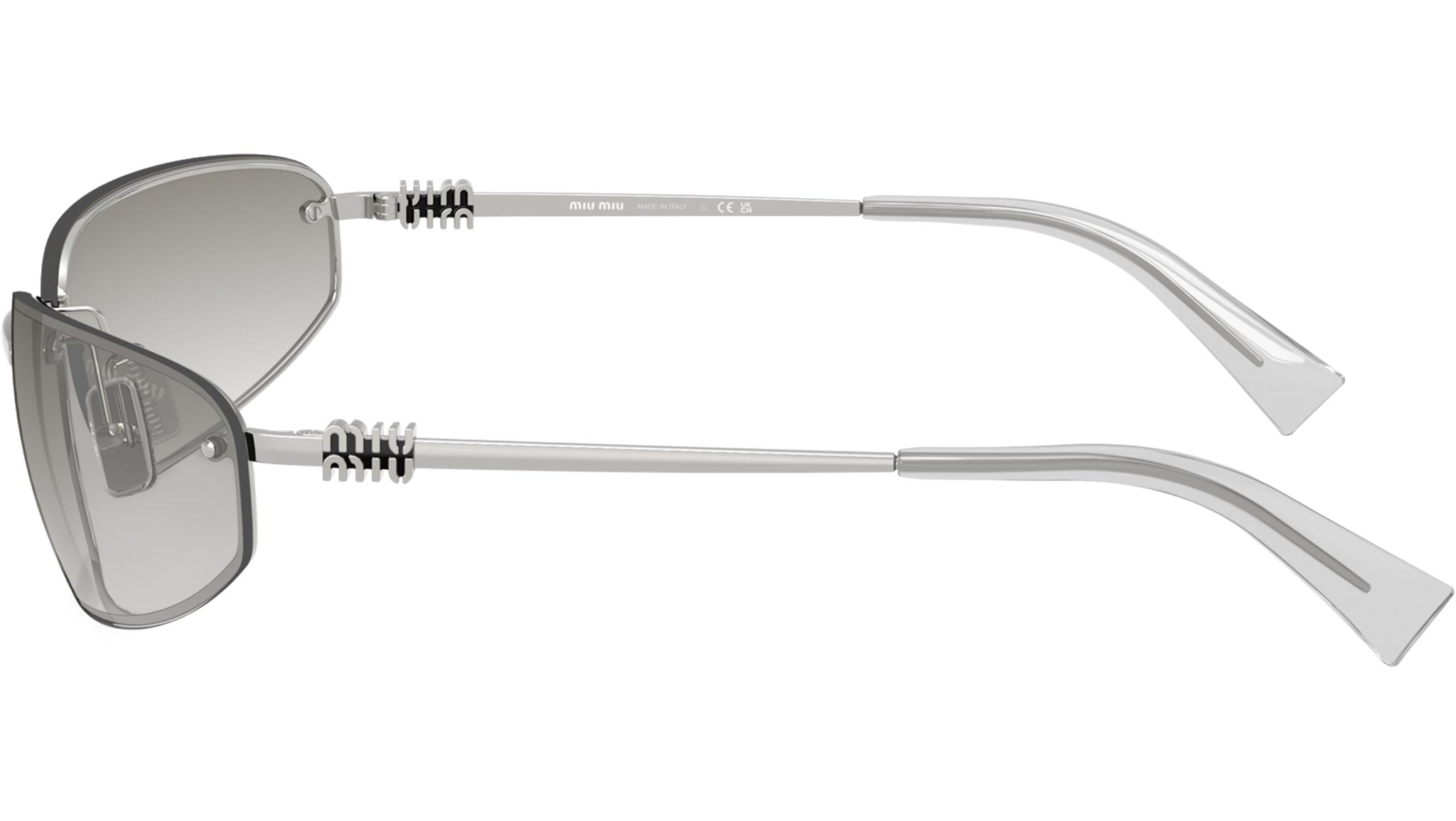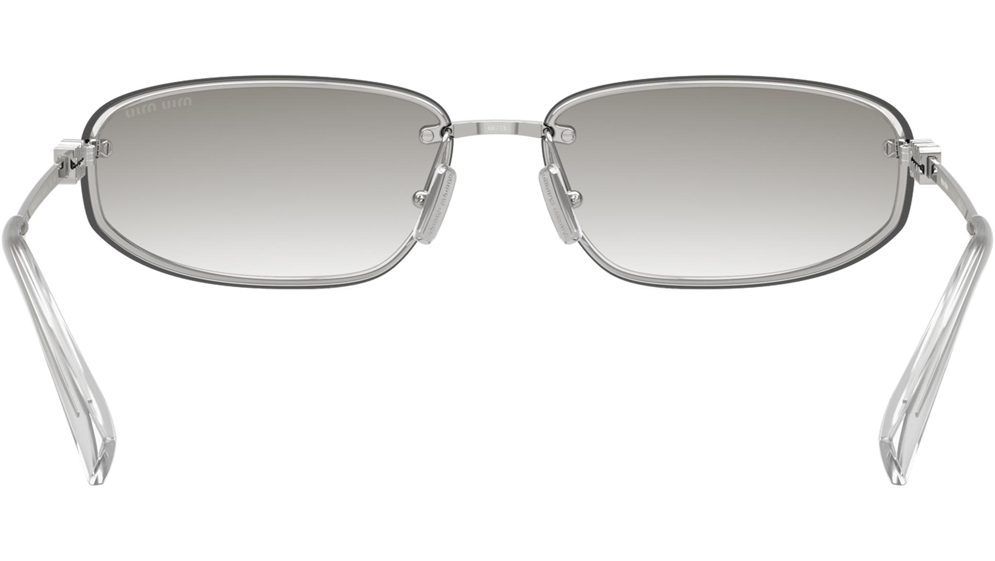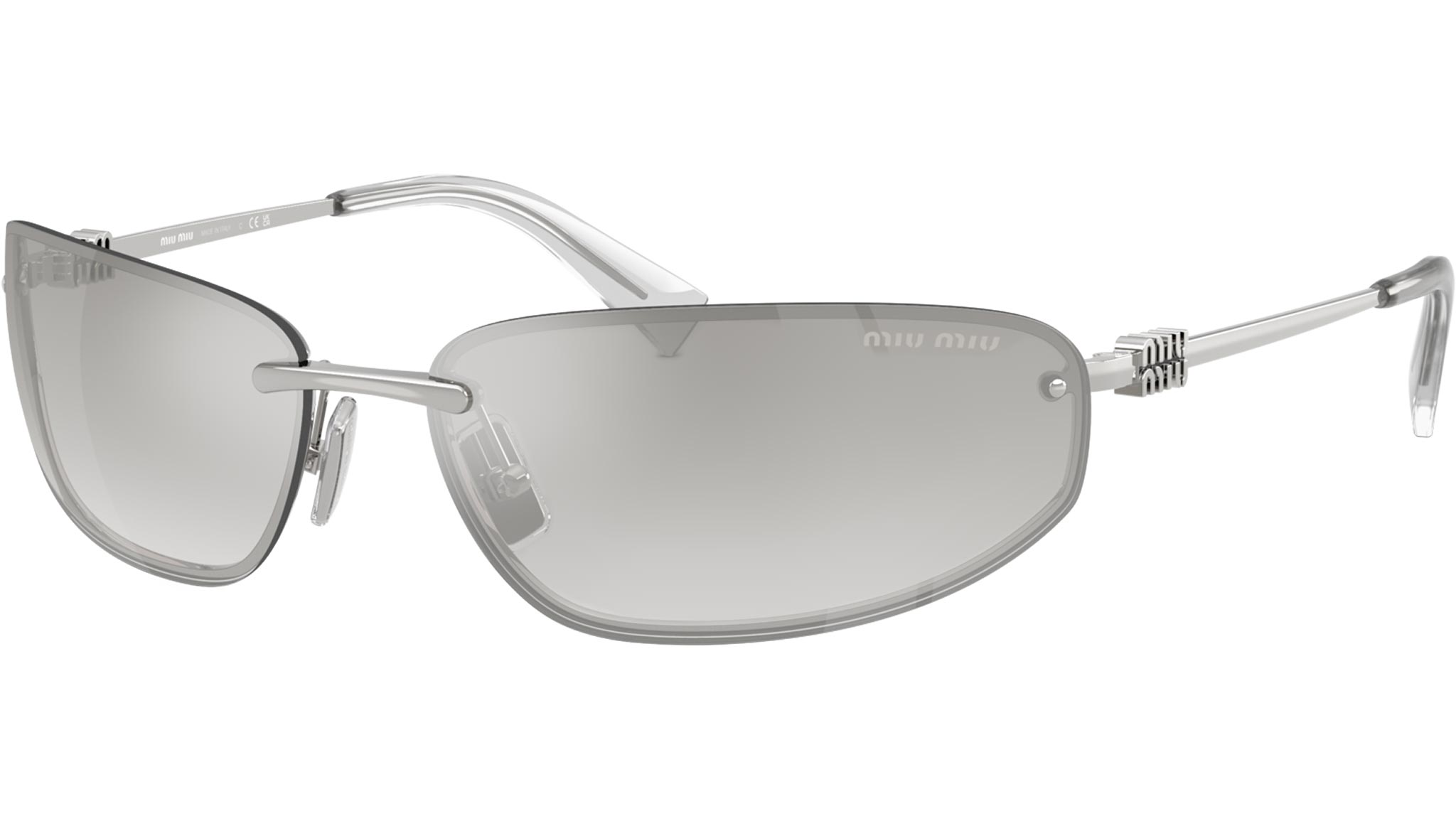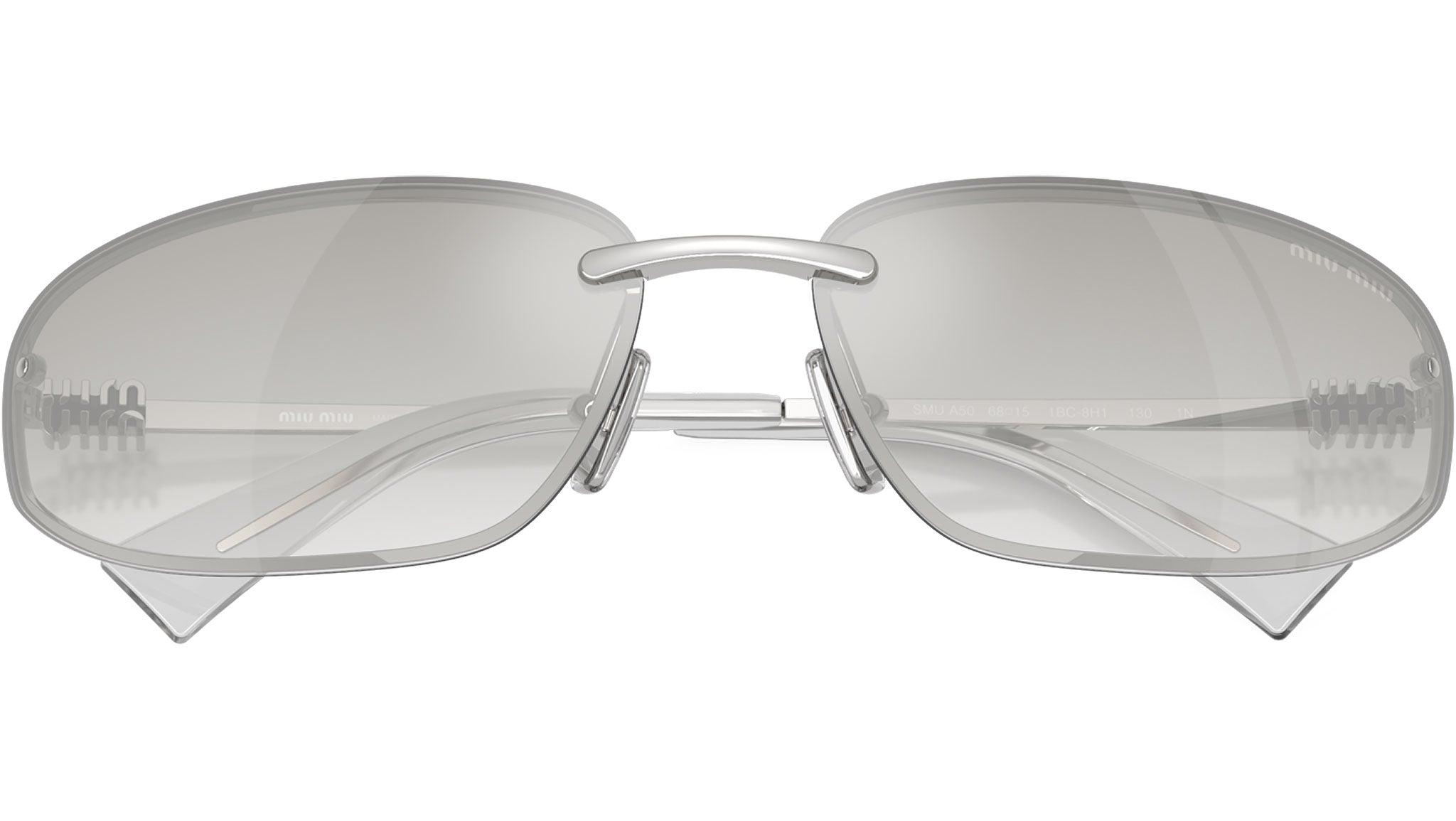 Occhiali da sole Miu Miu MU A50S 1BC8H1 donna con montatura ovale in metallo argento e lenti in poliammide color argento sfumato trasparente. Naselli regolabili. Linea: Fashion Show. Codice modello: 0MU A50S. Codice colore: 1BC8H1. Made in Italy. Rivenditore autorizzato Miu Miu online. Gli occhiali vengono consegnati con custodia e accessori originali e sono coperti dalla garanzia ufficiale di 12 mesi del produttore.