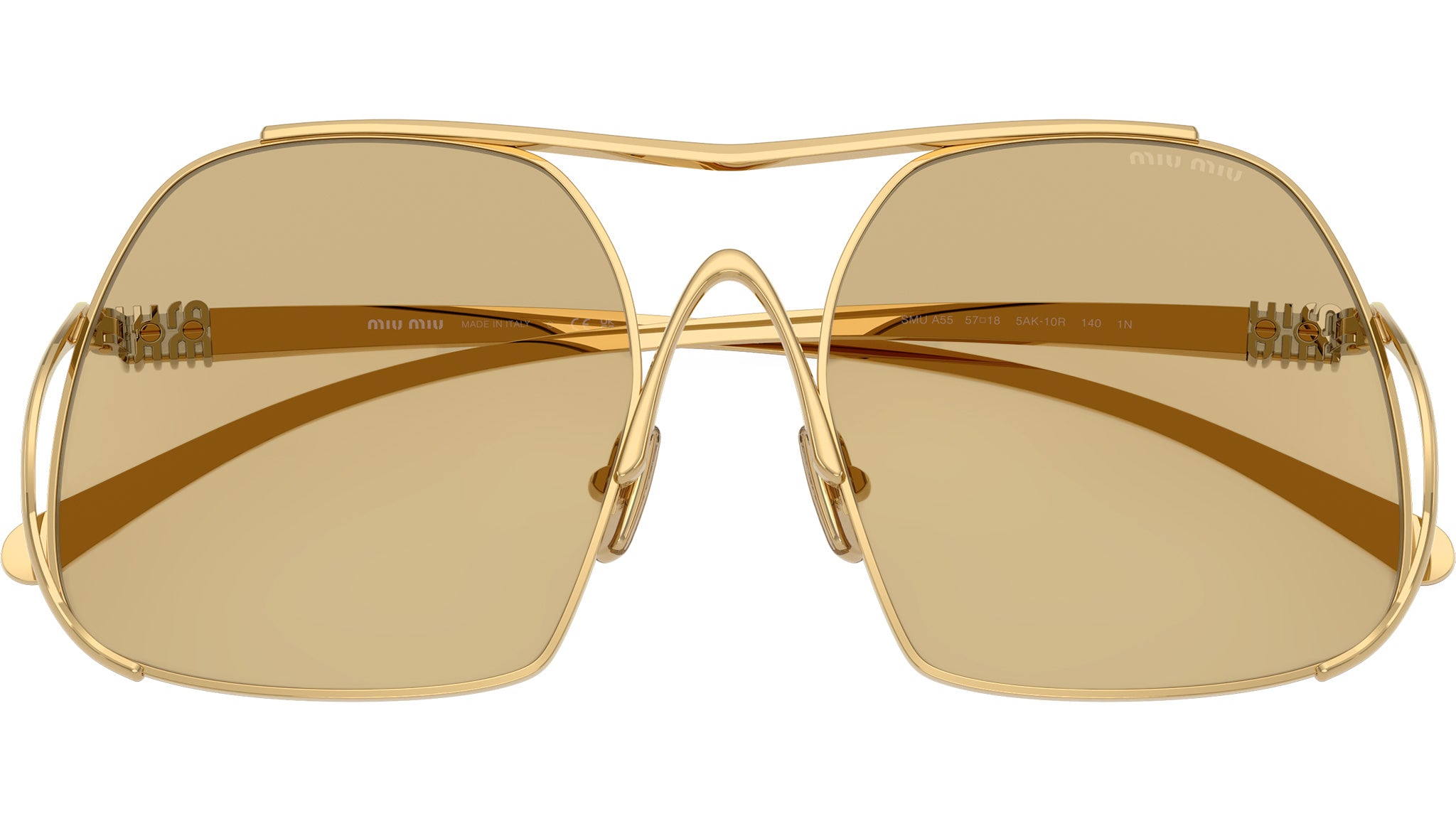 Occhiali da sole Miu Miu MU A55S 5AK10R donna con montatura quadrata in acciaio oro e lenti in bio poliammide color giallo. Naselli regolabili. Linea: Fashion Show. Codice modello: 0MU A55S. Codice colore: 5AK10R. Made in Italy. Rivenditore autorizzato Miu Miu online. Gli occhiali vengono consegnati con custodia e accessori originali e sono coperti dalla garanzia ufficiale di 12 mesi del produttore.