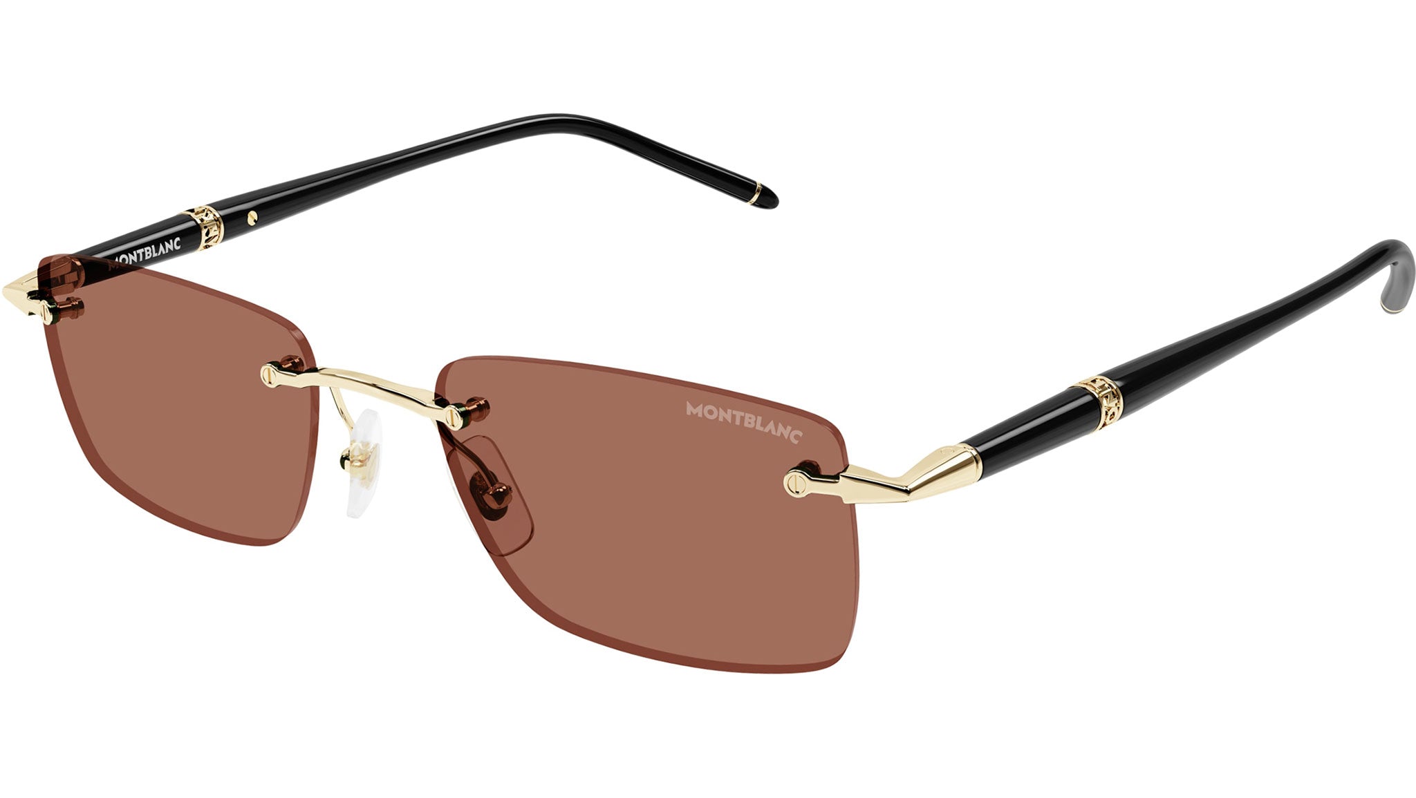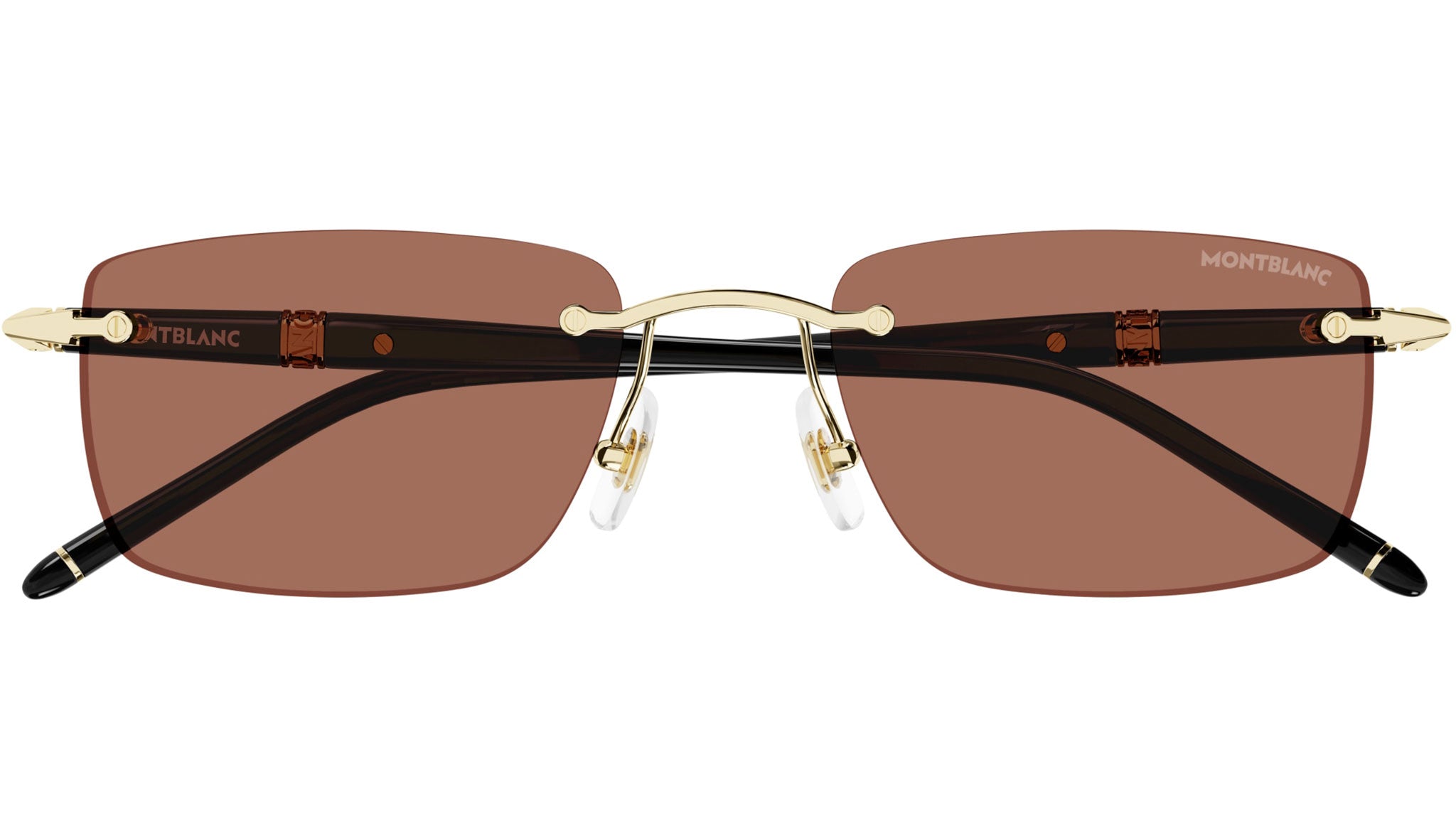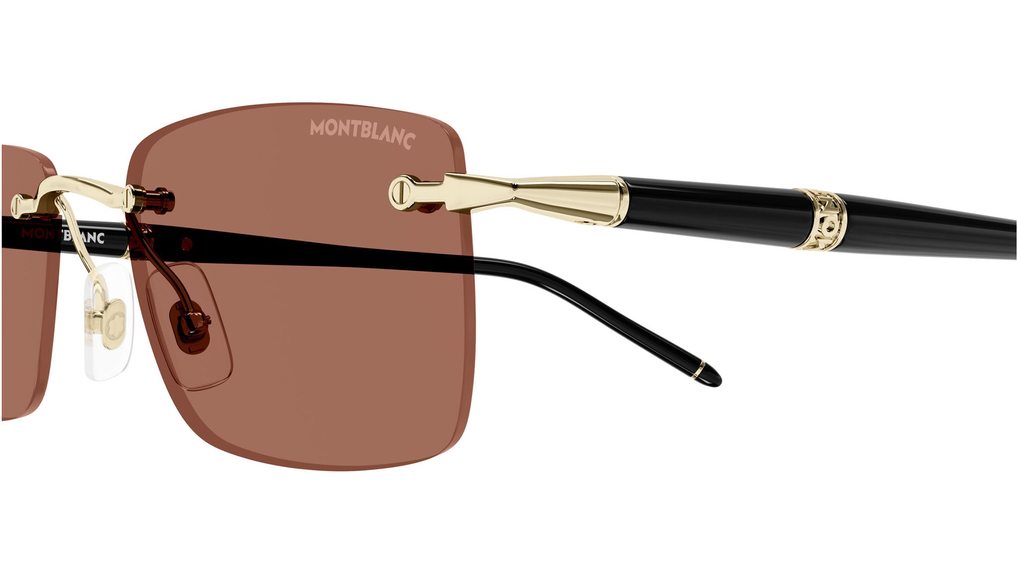Occhiali da sole Montblanc MB0344S 007 uomo con montatura rettangolare in metallo oro chiaro lucido e lenti arancione scuro tinta unita. Linea: Meisterstück. Codice modello: MB0344S. Codice colore: 007. Made in Japan. Rivenditore autorizzato Montblanc online. Gli occhiali vengono consegnati con custodia e accessori originali e sono coperti dalla garanzia ufficiale di 12 mesi del produttore.