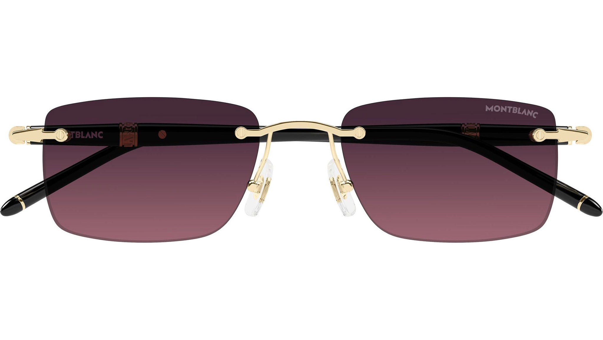 Occhiali da sole Montblanc MB0344S 009 uomo con montatura rettangolare in metallo oro chiaro lucido e lenti grigio / rosso sfumato doppio. Linea: Meisterstück. Codice modello: MB0344S. Codice colore: 009. Made in Japan. Rivenditore autorizzato Montblanc online. Gli occhiali vengono consegnati con custodia e accessori originali e sono coperti dalla garanzia ufficiale di 12 mesi del produttore.