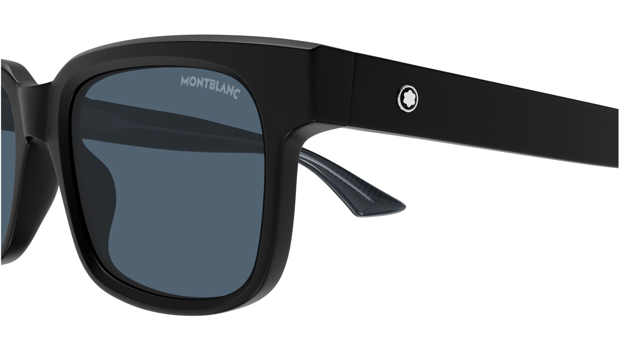 Occhiali da sole Montblanc MB0383S 003 uomo con montatura rettangolare in acetato riciclato nero opaco e lenti blu marine tinta unita. Linea: Snowcap. Codice modello: MB0383S. Codice colore: 003. Made in Italy. Rivenditore autorizzato Montblanc online. Gli occhiali vengono consegnati con custodia e accessori originali e sono coperti dalla garanzia ufficiale di 12 mesi del produttore.