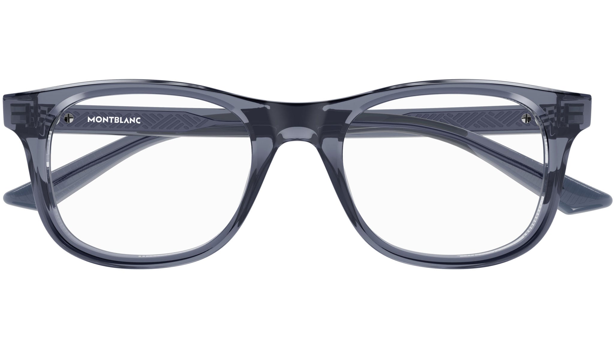 Occhiali da vista Montblanc MB0385O uomo con montatura rettangolare in acetato riciclato grigio trasparente lucido / blu lucido e lenti demo. Linea: Snowcap. Codice modello: MB0385O. Codice colore 54 mm: 010. 52 mm: 001. Made in Italy. Rivenditore autorizzato Montblanc online. Gli occhiali vengono consegnati con custodia e accessori originali e sono coperti dalla garanzia ufficiale di 12 mesi del produttore.