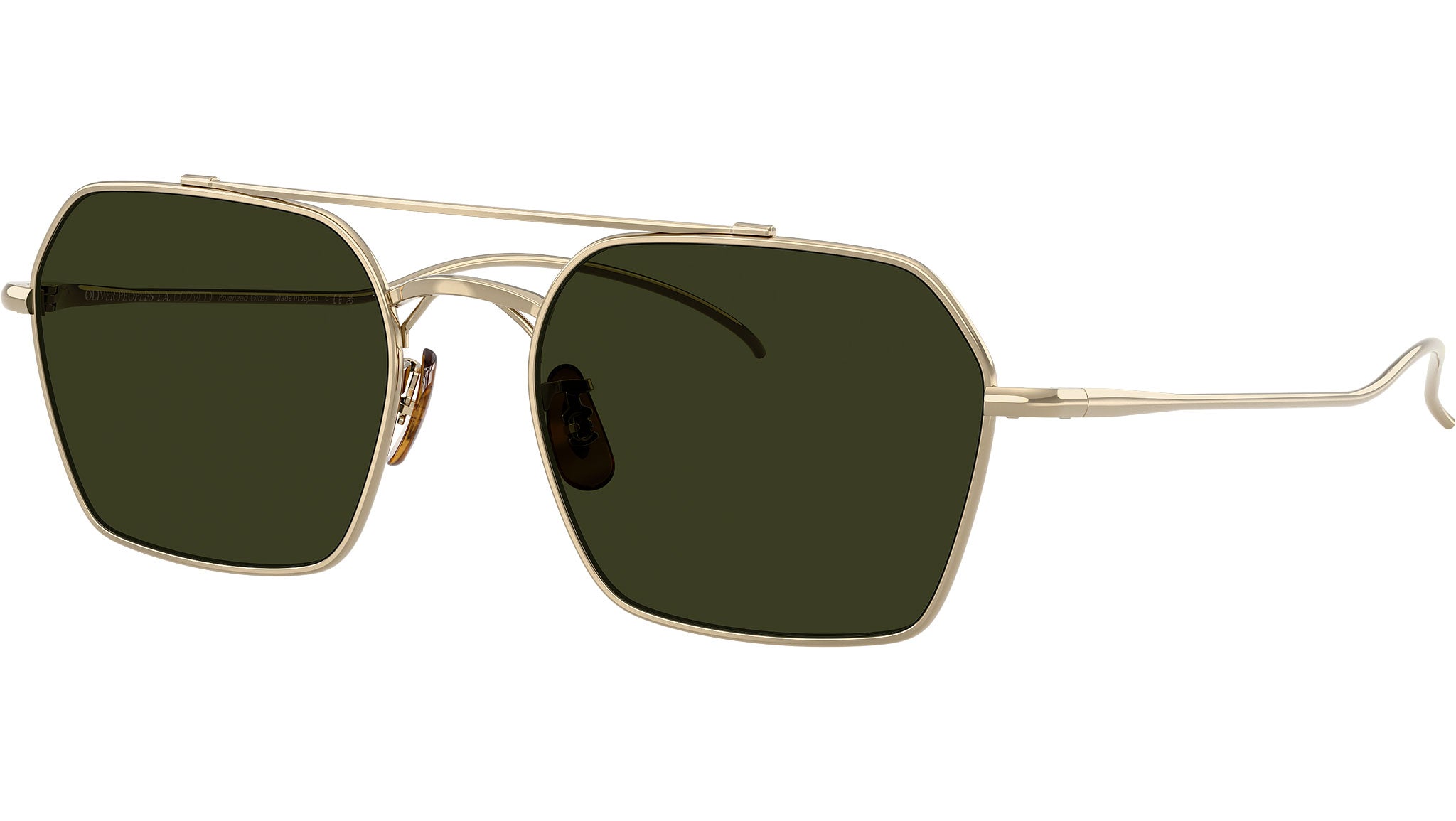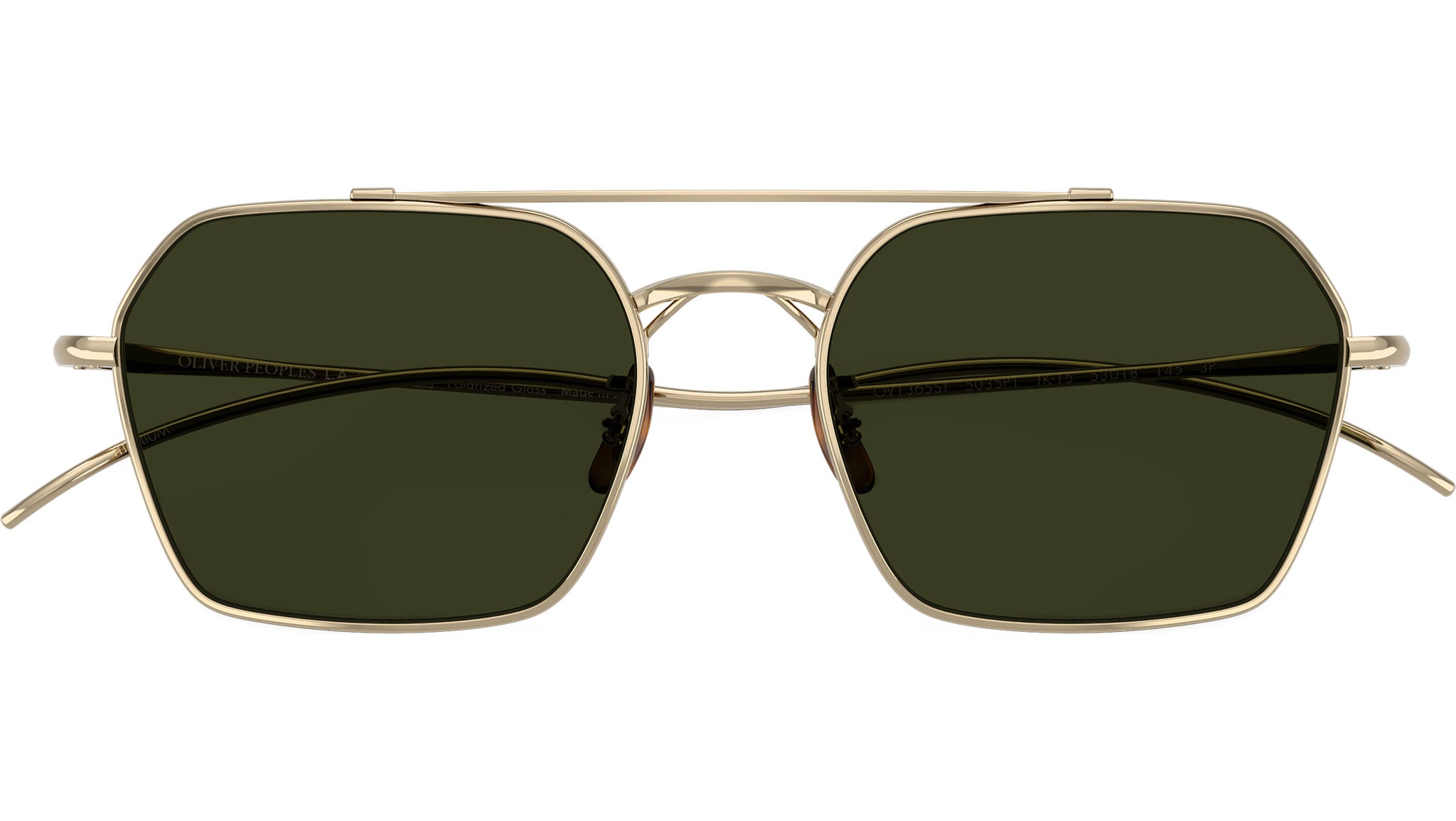 Occhiali da sole Oliver Peoples TK-15 OV1365ST 5035P1 unisex con montatura geometrica in titanio oro e lenti in cristallo color verde G-15 polarizzato. Naselli regolabili. Linea: Essentials. Codice modello: 0OV1365ST. Codice colore: 5035P1. Made in Italy. Rivenditore autorizzato Oliver Peoples online. Gli occhiali vengono consegnati con custodia e accessori originali e sono coperti dalla garanzia ufficiale di 12 mesi del produttore.