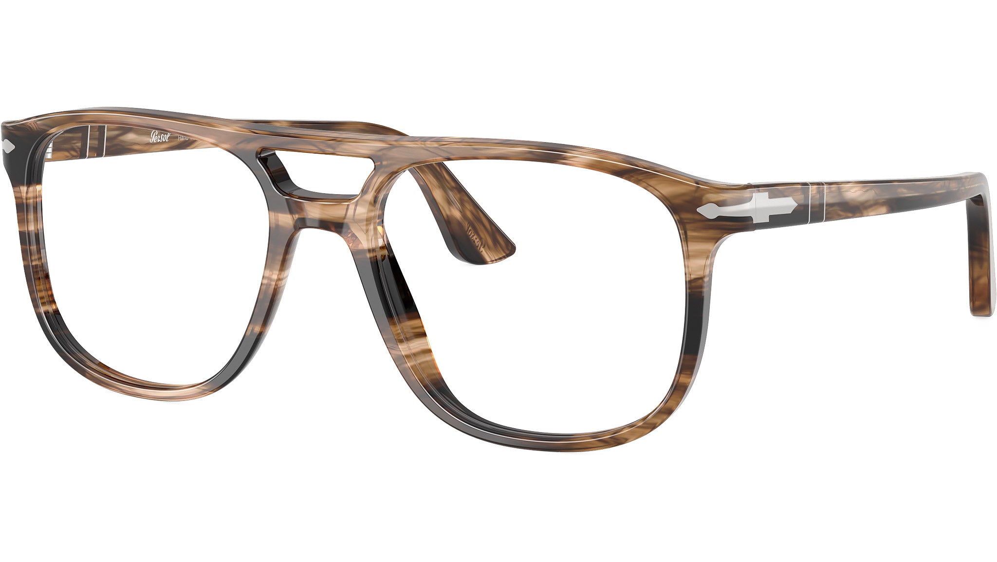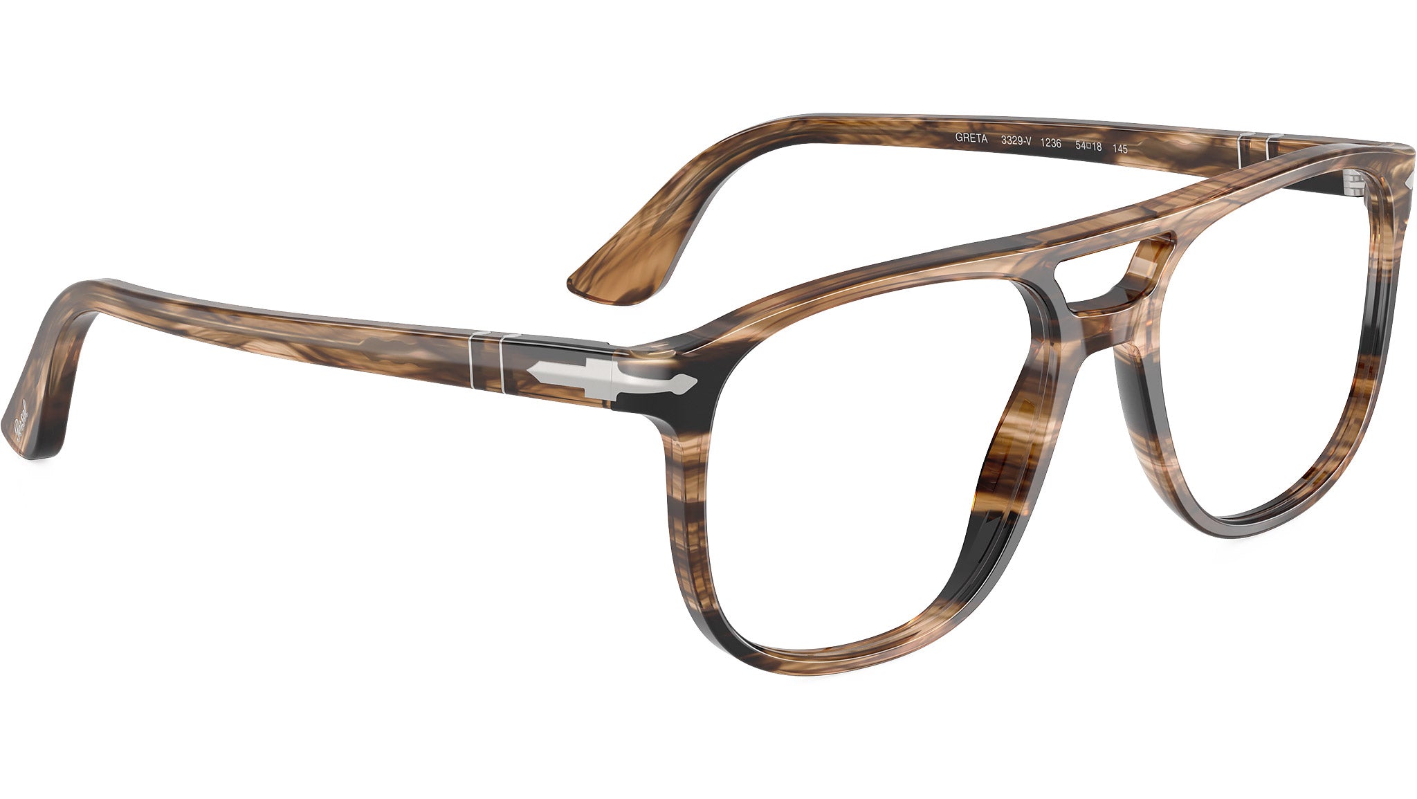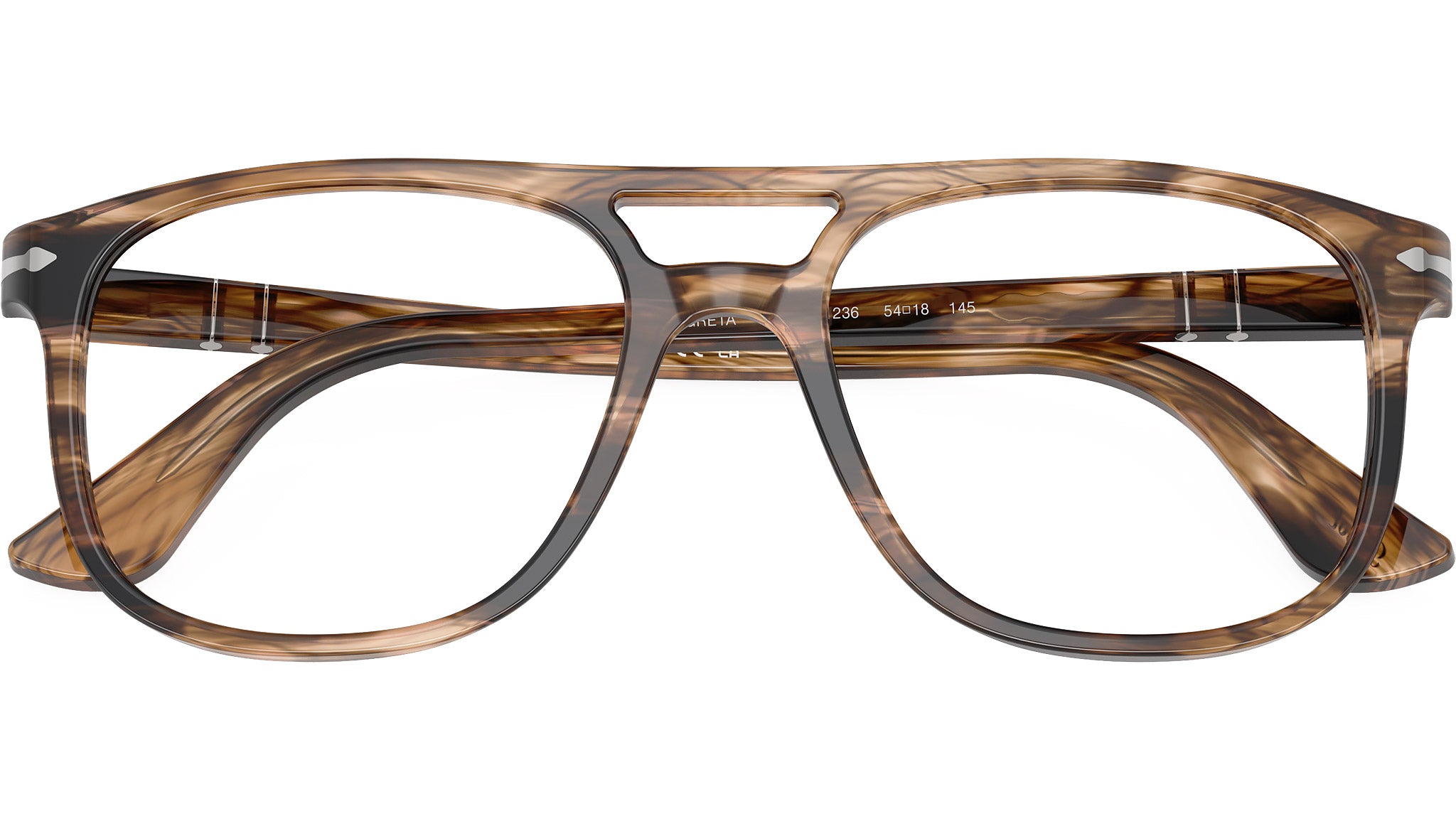 Montatura per occhiali da vista Persol unisex modello PO3329V 1236 con montatura navigator in acetato nero striato e marrone grigiastro e lenti demo. Linea: Icona Officina. Codice Brand: 0PO3329V. Codice colore: 1236. Rivenditore autorizzato online Persol Eyewear. Ogni prodotto Persol viene consegnato con astuccio originale e accessori ed è coperto da garanzia del produttore di 12 mesi.