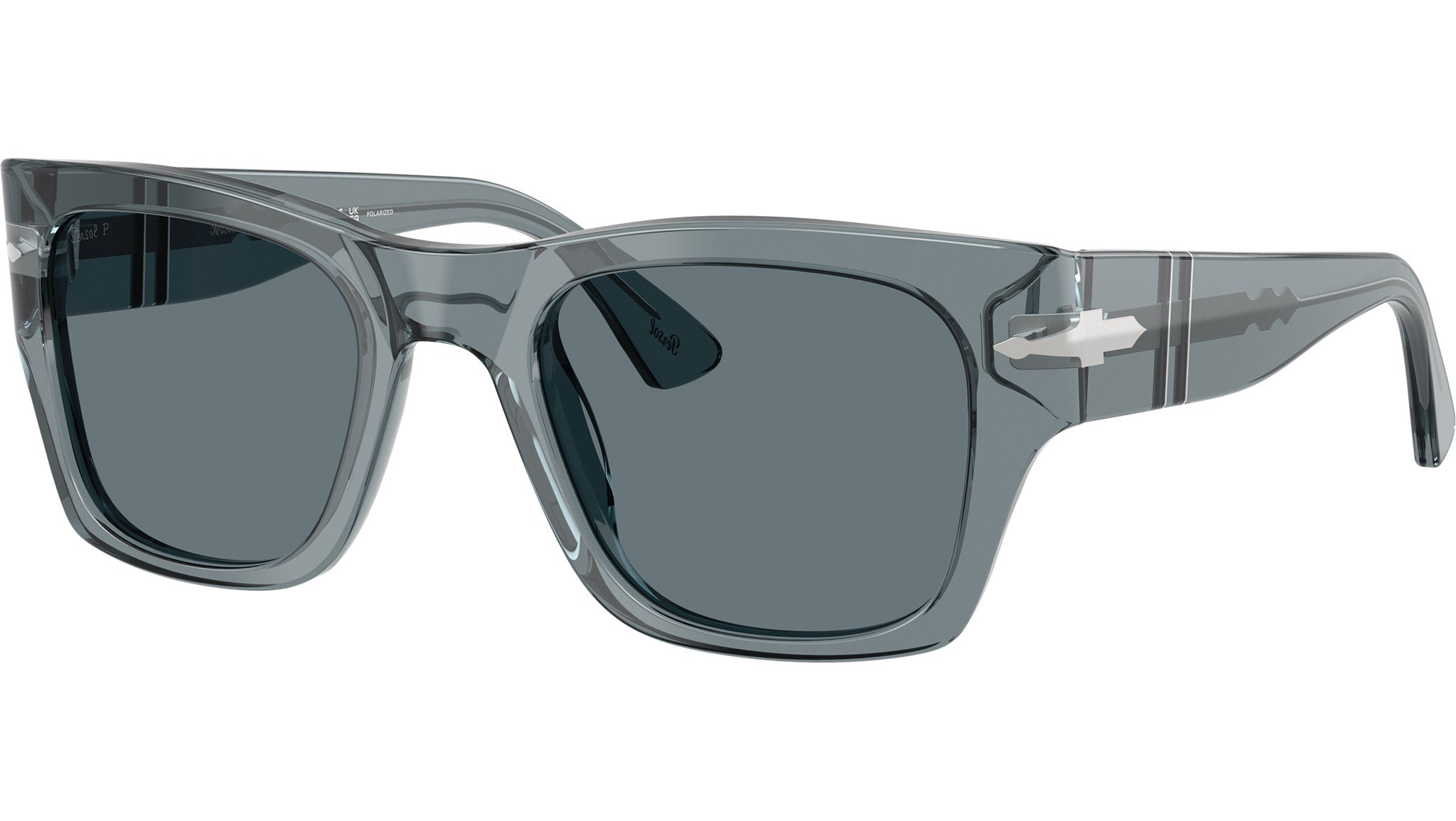 Occhiali da sole Persol unisex modello PO3384S 12273R con montatura squadrata in acetato blu oceano trasparente e lenti in cristallo polare blu scuro base 6. Vestibilità a ponte alto. Linea: Officina. Codice Brand: 0PO3384S. Codice colore: 12273R. Rivenditore autorizzato online Persol Eyewear. Ogni prodotto Persol viene consegnato con astuccio originale e accessori ed è coperto da garanzia del produttore di 12 mesi.