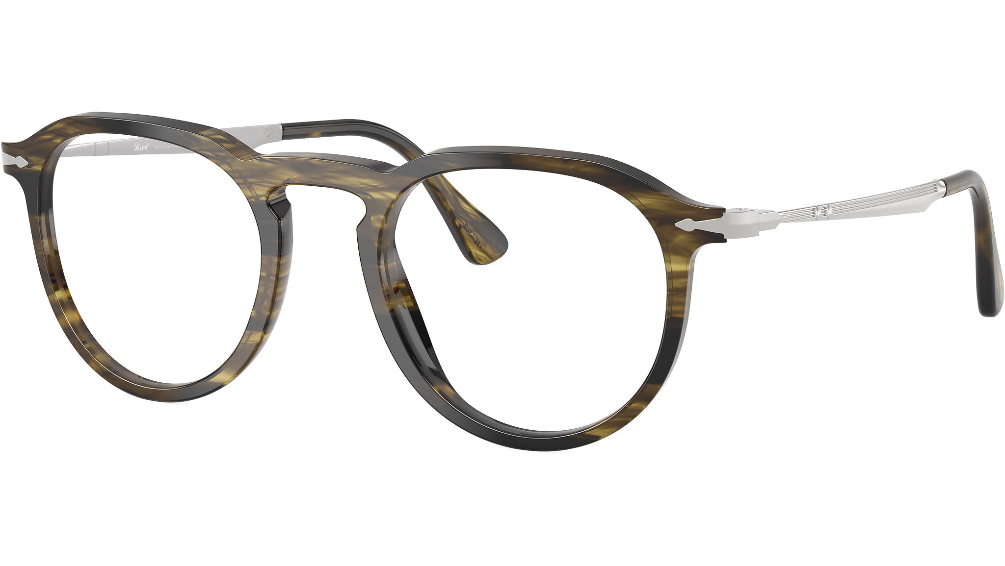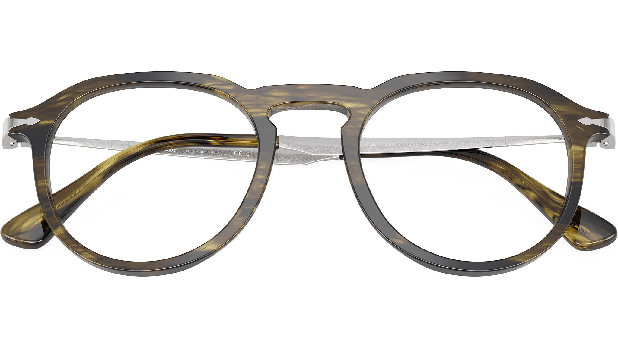 Montatura per occhiali da vista Persol unisex modello PO3387V 1237 con montatura d-frame in acetato nero striato e verde oliva e lenti demo. Linea: Icona Galleria. Codice Brand: 0PO3387V. Codice colore: 1237. Rivenditore autorizzato online Persol Eyewear. Ogni prodotto Persol viene consegnato con astuccio originale e accessori ed è coperto da garanzia del produttore di 12 mesi.