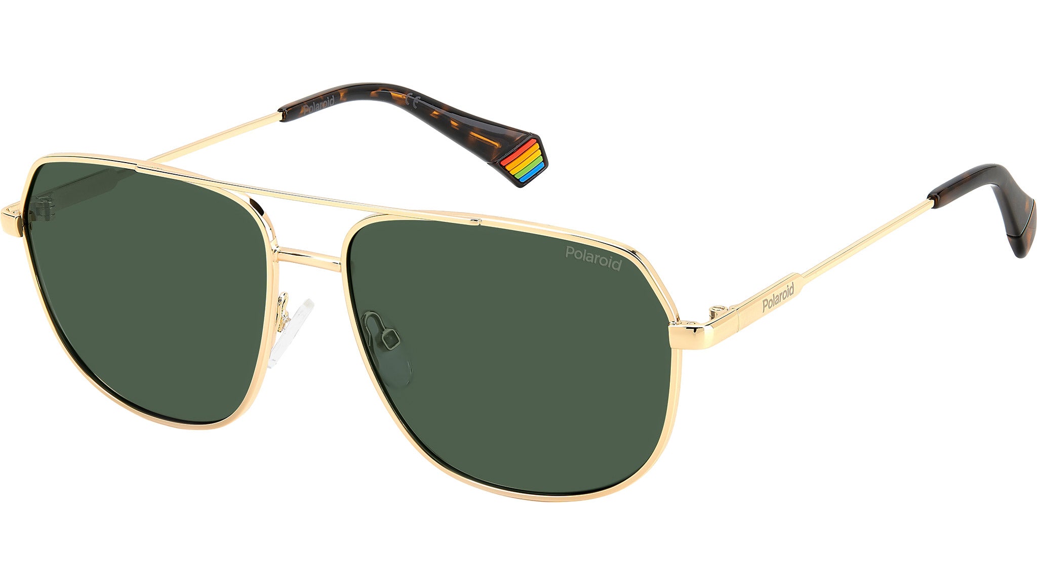 Occhiali da sole Polaroid PLD 6195/S/X J5G UC unisex con montatura in metallo oro e lenti verde polarizzate. Questi occhiali da sole unisex hanno montatura in metallo sottile e confortevole, che Polaroid propone in versione galvanica oppure colorata. I comodi naselli regolabili garantiscono una perfetta calzata, il frontale geometrico è con doppio ponte, le aste sono firmate dal logo laserato e i terminali iniettati sono personalizzati dall’inserto Rainbow gommato, tratto distintivo Polaroid. Linea: Cool. Codice modello: 205697. Codice colore: J5G UC. Rivenditore autorizzato Polaroid online. Gli occhiali vengono consegnati con custodia e accessori originali e sono coperti dalla garanzia ufficiale di 12 mesi del produttore.