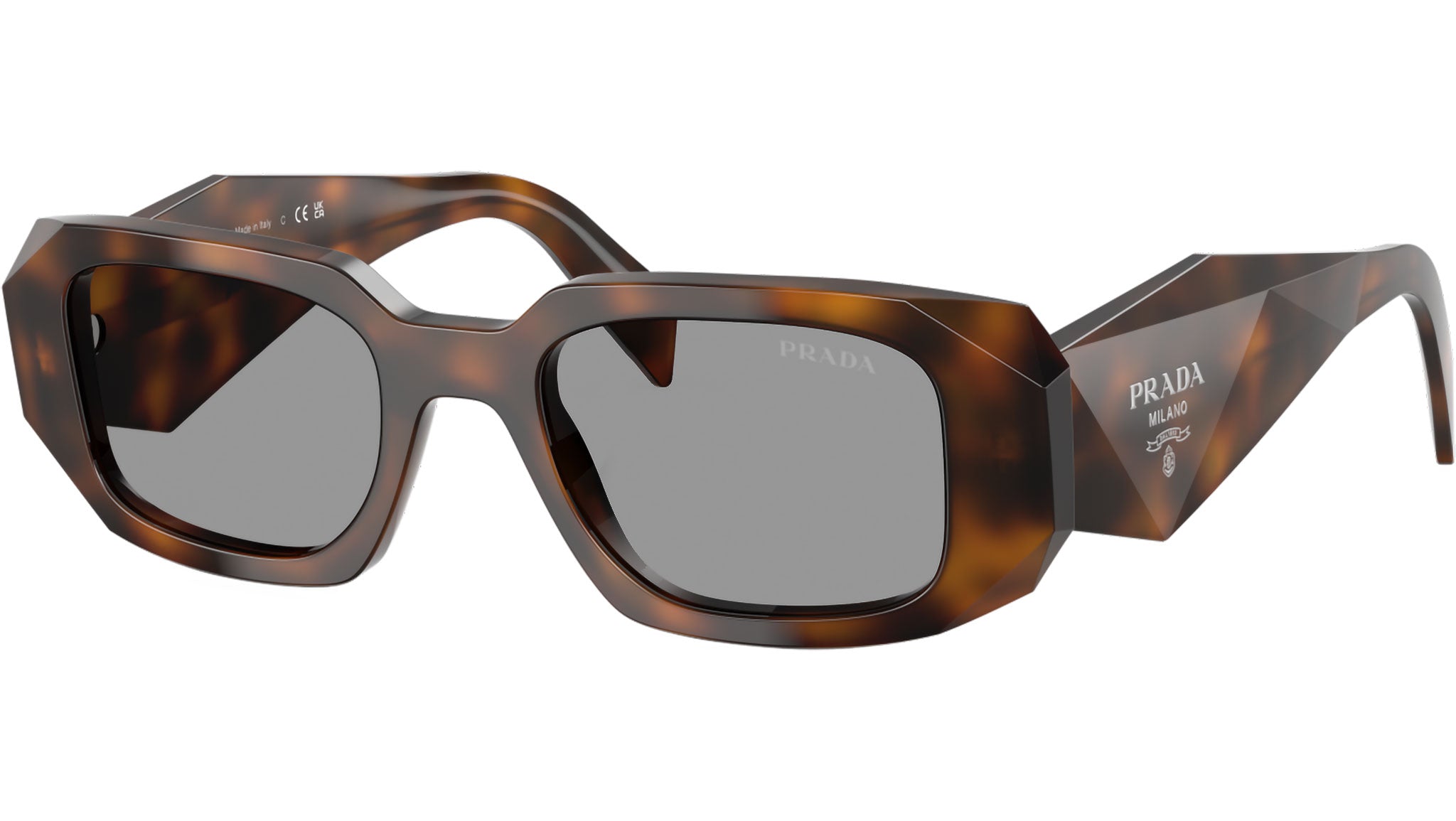 Occhiali da sole Prada PR 17WS 20D50Q donna con montatura rettangolare in acetato tartaruga ginepro e lenti in bio poliammide color grigio. Fit universale. Linea: Catwalk. Codice modello: PR17WS. Codice colore: 20D50Q. Made in Italy. Rivenditore autorizzato Prada online. Gli occhiali vengono consegnati con custodia e accessori originali e sono coperti dalla garanzia ufficiale di 12 mesi del produttore.