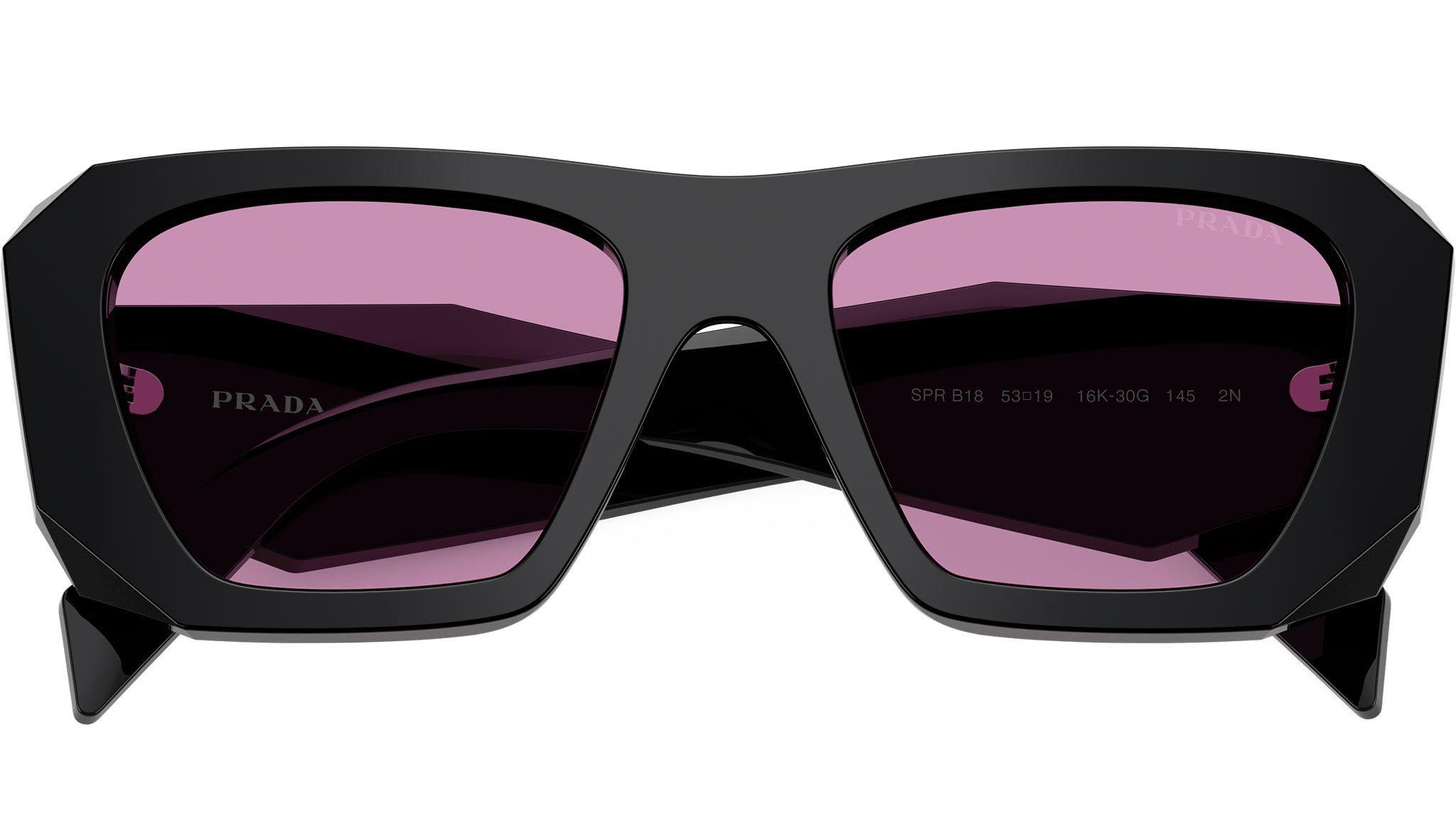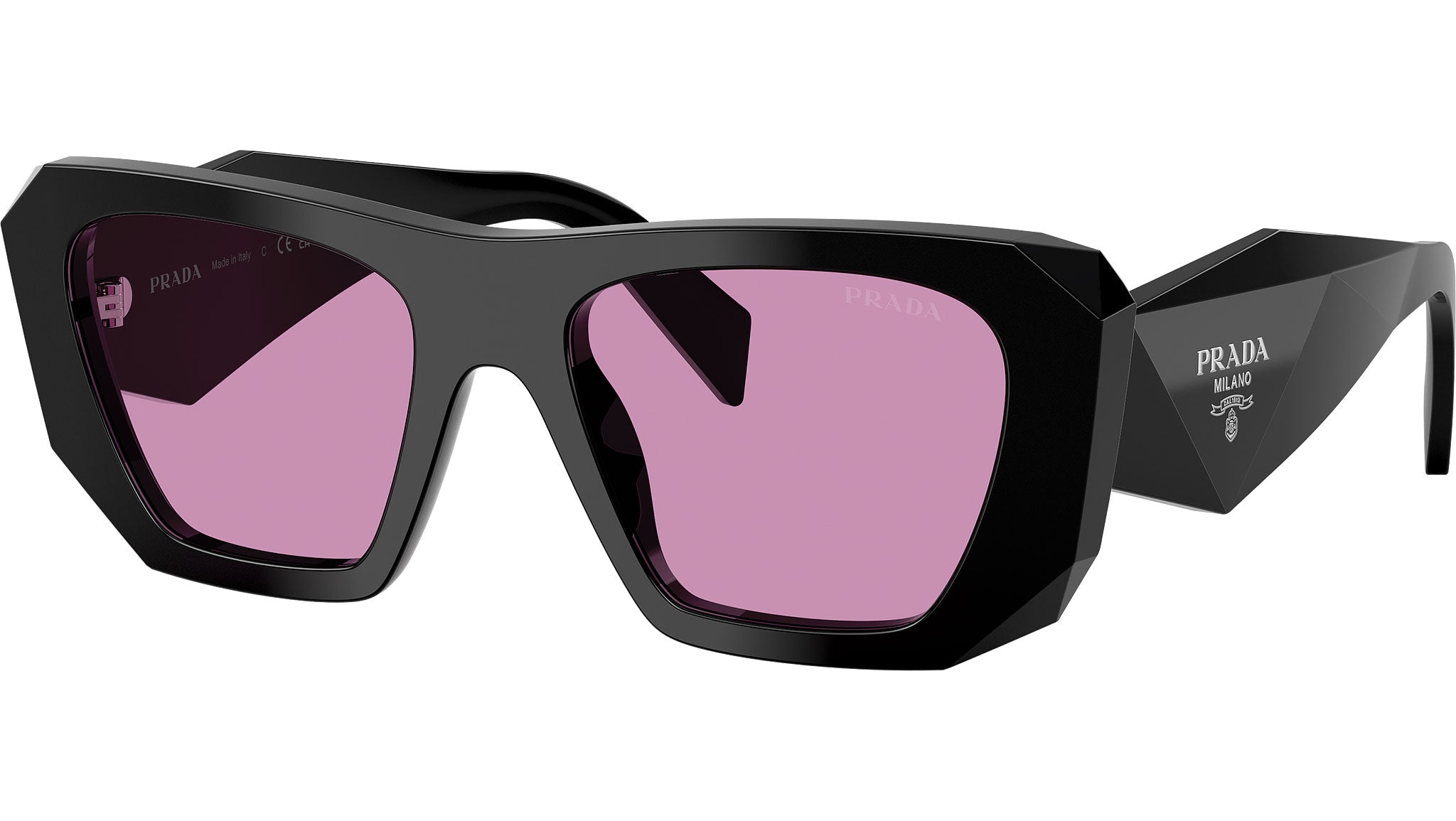 Occhiali da sole Prada PR B18S 16K30G donna con montatura squadrata in acetato nero e lenti in bio poliammide color viola. Vestibilità a ponte alto. Linea: Design. Codice modello: PRB18S. Codice colore: 16K30G. Made in Italy. Rivenditore autorizzato Prada online. Gli occhiali vengono consegnati con custodia e accessori originali e sono coperti dalla garanzia ufficiale di 12 mesi del produttore.
