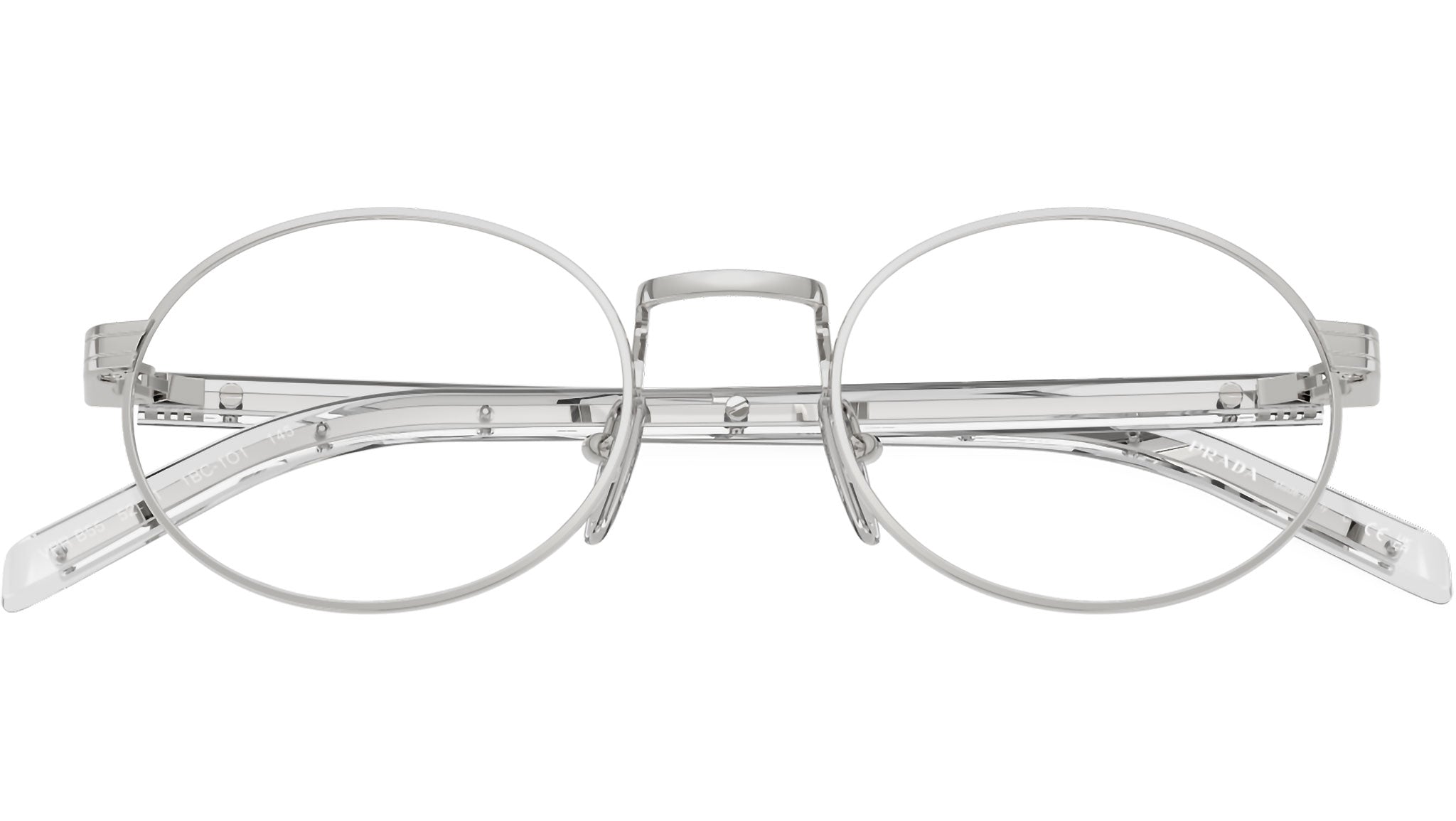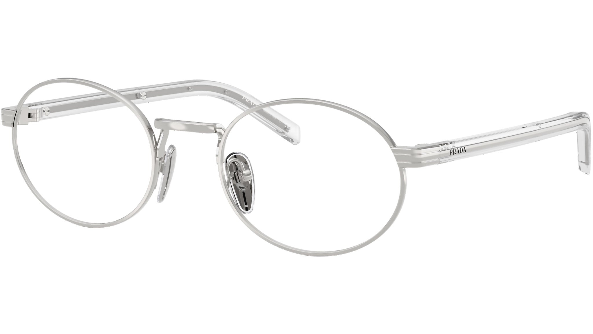 Occhiali da vista Prada PR B55V 1BC1O1 donna con montatura ovale in metallo argento e lenti demo. Naselli regolabili. Linea: Signature. Codice modello: PRB55V. Codice colore: 1BC1O1. Made in Italy. Rivenditore autorizzato Prada online. Gli occhiali vengono consegnati con custodia e accessori originali e sono coperti dalla garanzia ufficiale di 12 mesi del produttore.