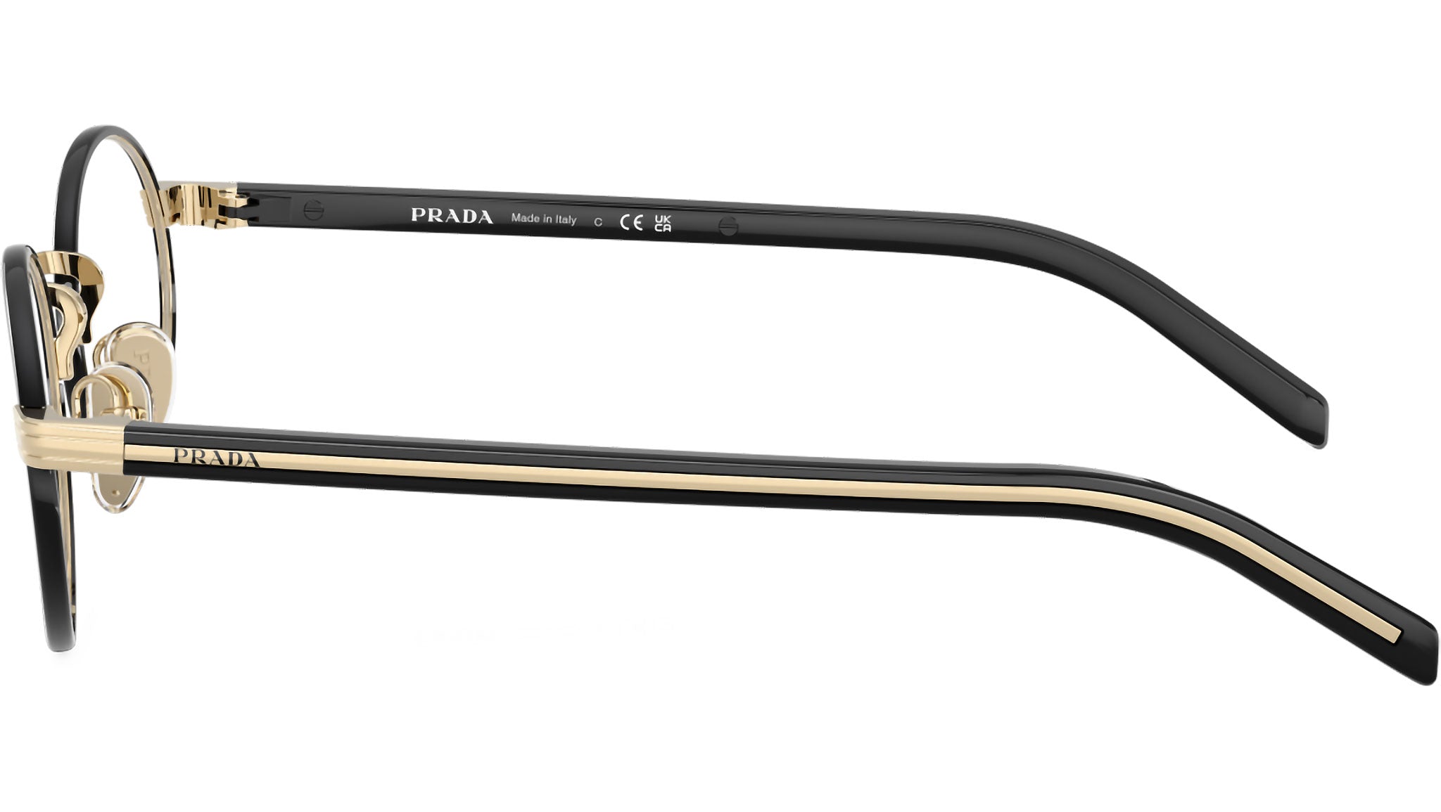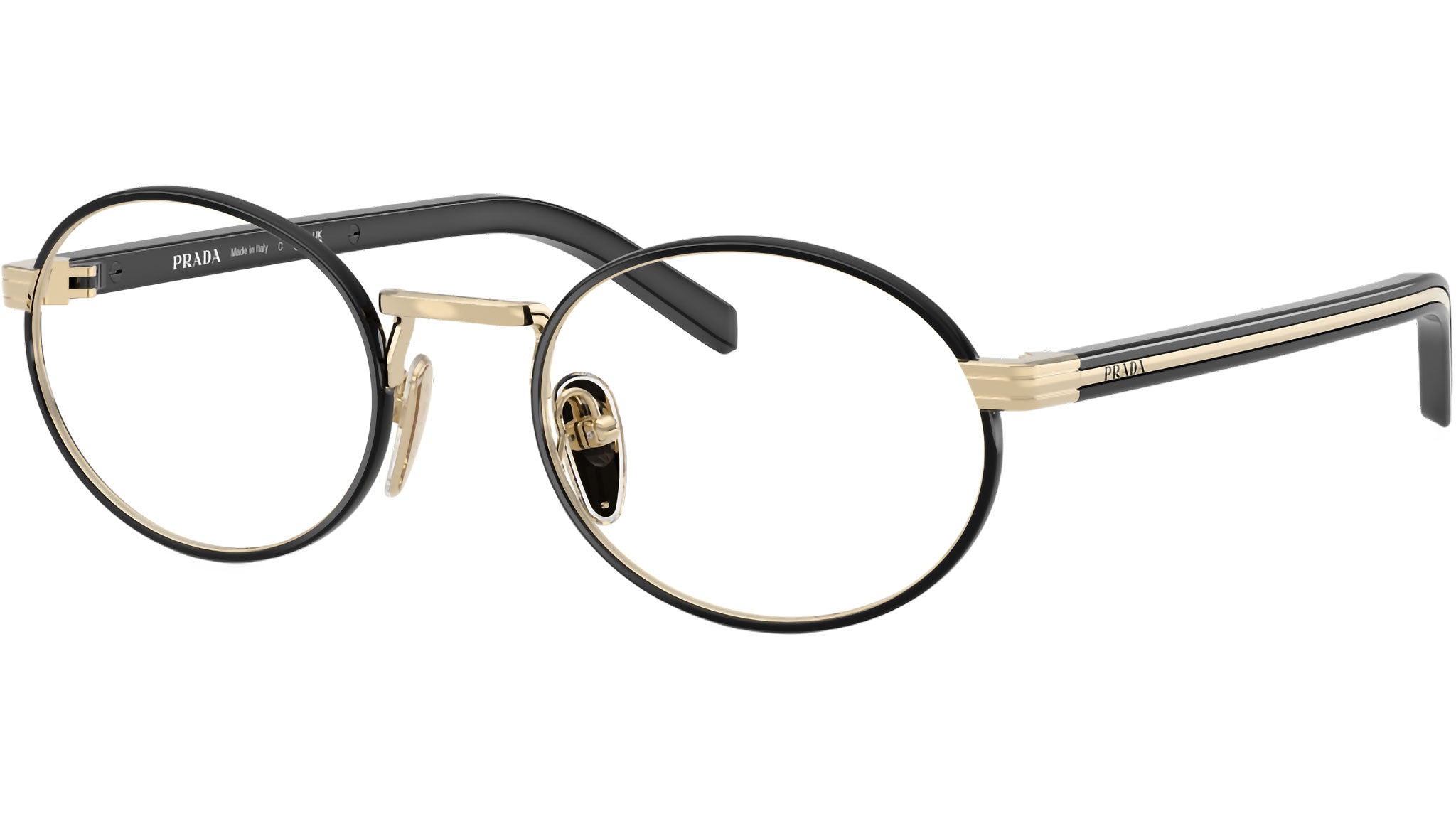 Occhiali da vista Prada PR B55V AAV1O1 donna con montatura ovale in metallo oro chiaro / nero e lenti demo. Naselli regolabili. Linea: Signature. Codice modello: PRB55V. Codice colore: AAV1O1. Made in Italy. Rivenditore autorizzato Prada online. Gli occhiali vengono consegnati con custodia e accessori originali e sono coperti dalla garanzia ufficiale di 12 mesi del produttore.