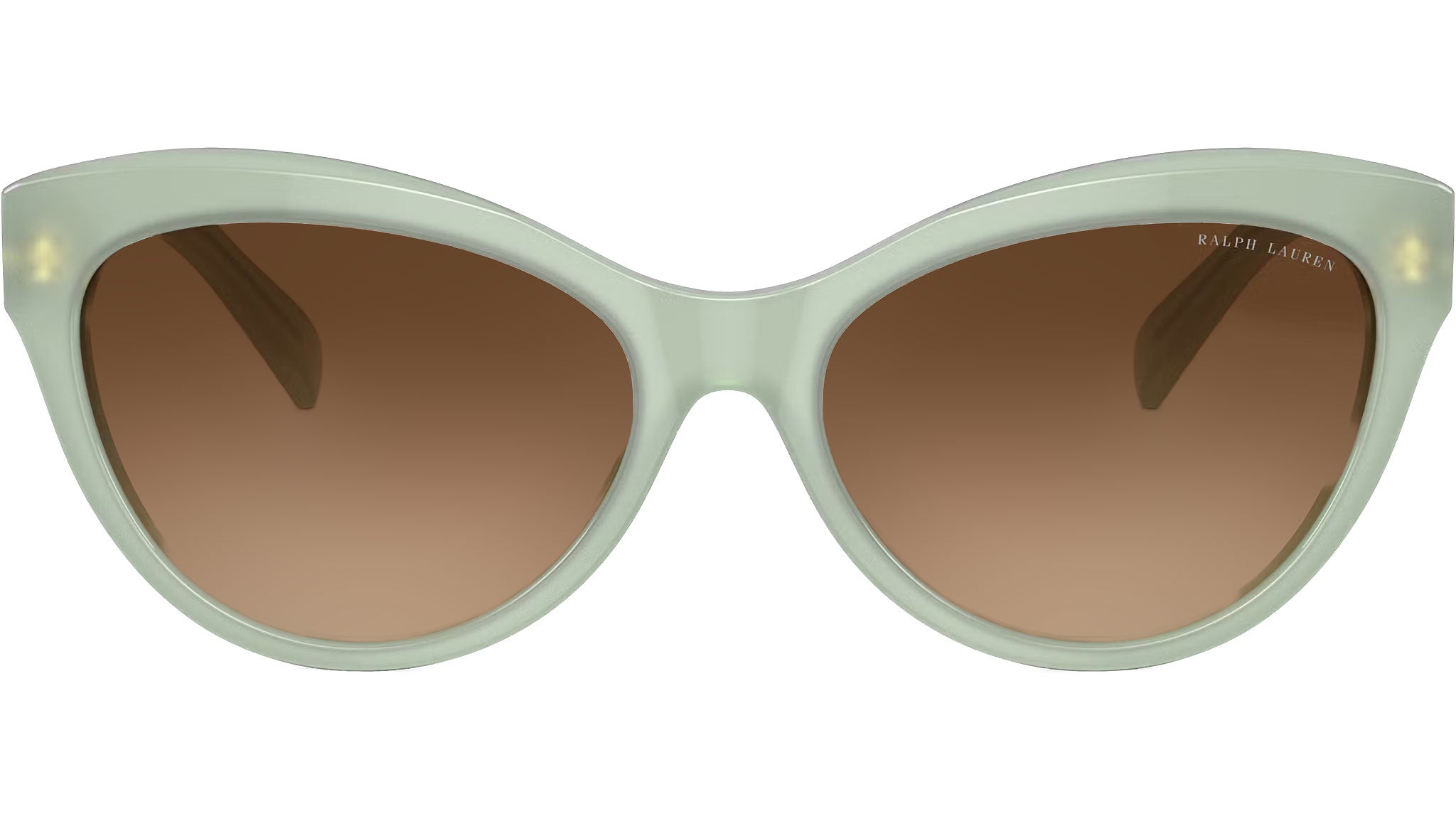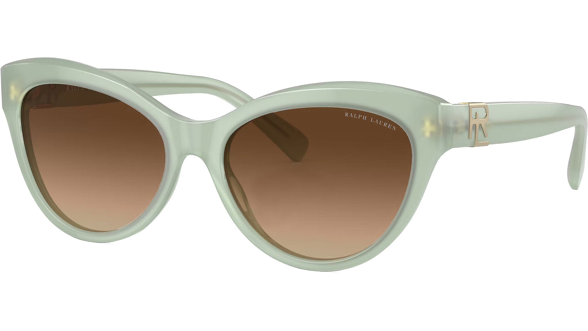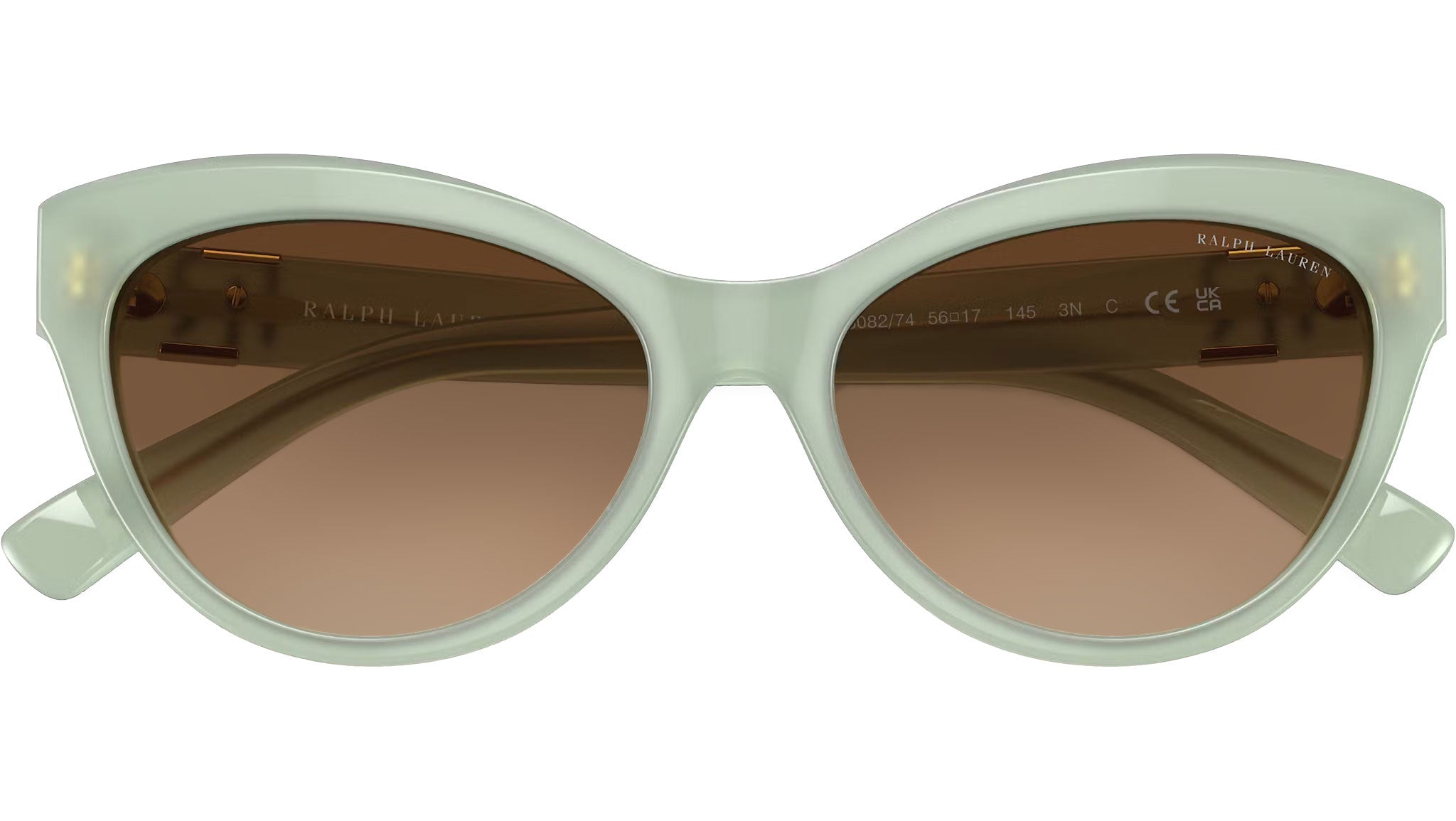 Occhiali da sole Ralph Lauren RL8213 608274 con montatura cat eye in acetato verde menta opalino e lenti in poliammide color marrone sfumato. Vestibilità a ponte alto. Linea: Signatures. Codice modello: 0RL8213. Codice colore: 608274. Rivenditore autorizzato Ralph Lauren online. Gli occhiali vengono consegnati con custodia e accessori originali e sono coperti dalla garanzia ufficiale di 12 mesi del produttore.