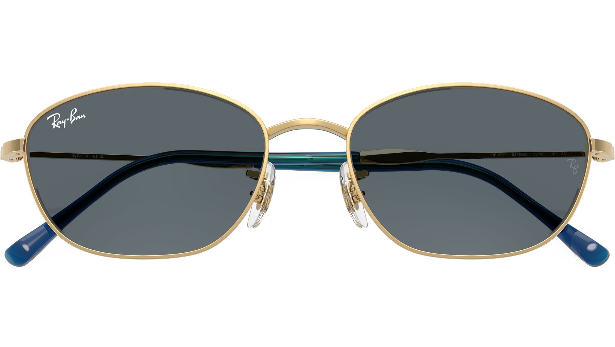 Occhiali da sole Ray-Ban RB3749 9278R5 donna con montatura geometrica in metallo arista oro e lenti in cristallo color blu. Naselli regolabili. Linea: Evolution. Codice modello: 0RB3749. Codice colore: 9278R5. Rivenditore autorizzato Ray-Ban online. Gli occhiali vengono consegnati con custodia e accessori originali e sono coperti dalla garanzia ufficiale di 12 mesi del produttore.