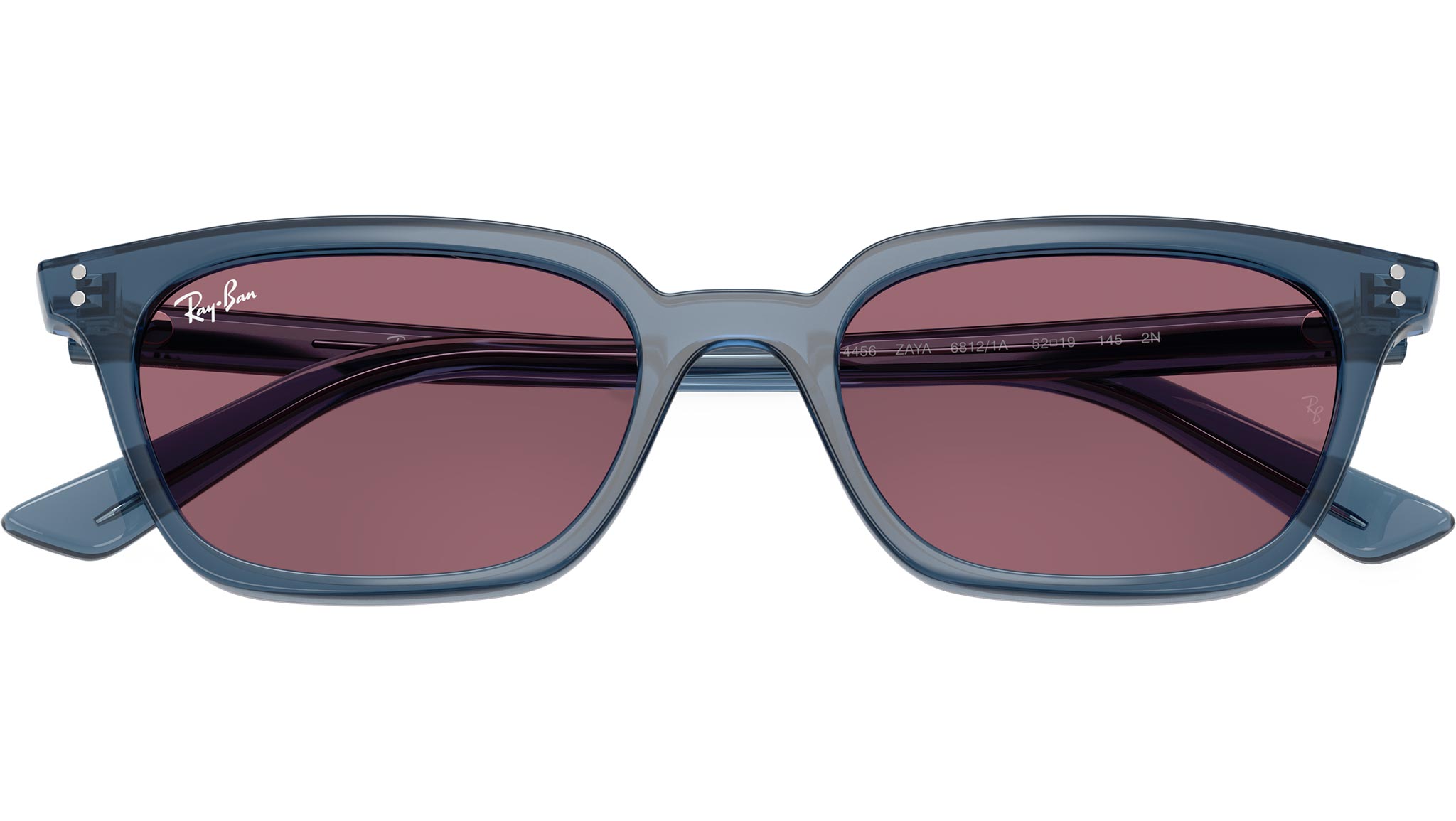 Occhiali da sole Ray-Ban Zaya RB4456 68121A unisex con montatura d-frame in iniettato azzurro e lenti in bio poliammide color viola. Naselli regolabili. Linea: Nowness. Codice modello: 0RB4456. Codice colore: 68121A. Rivenditore autorizzato Ray-Ban online. Gli occhiali vengono consegnati con custodia e accessori originali e sono coperti dalla garanzia ufficiale di 12 mesi del produttore.