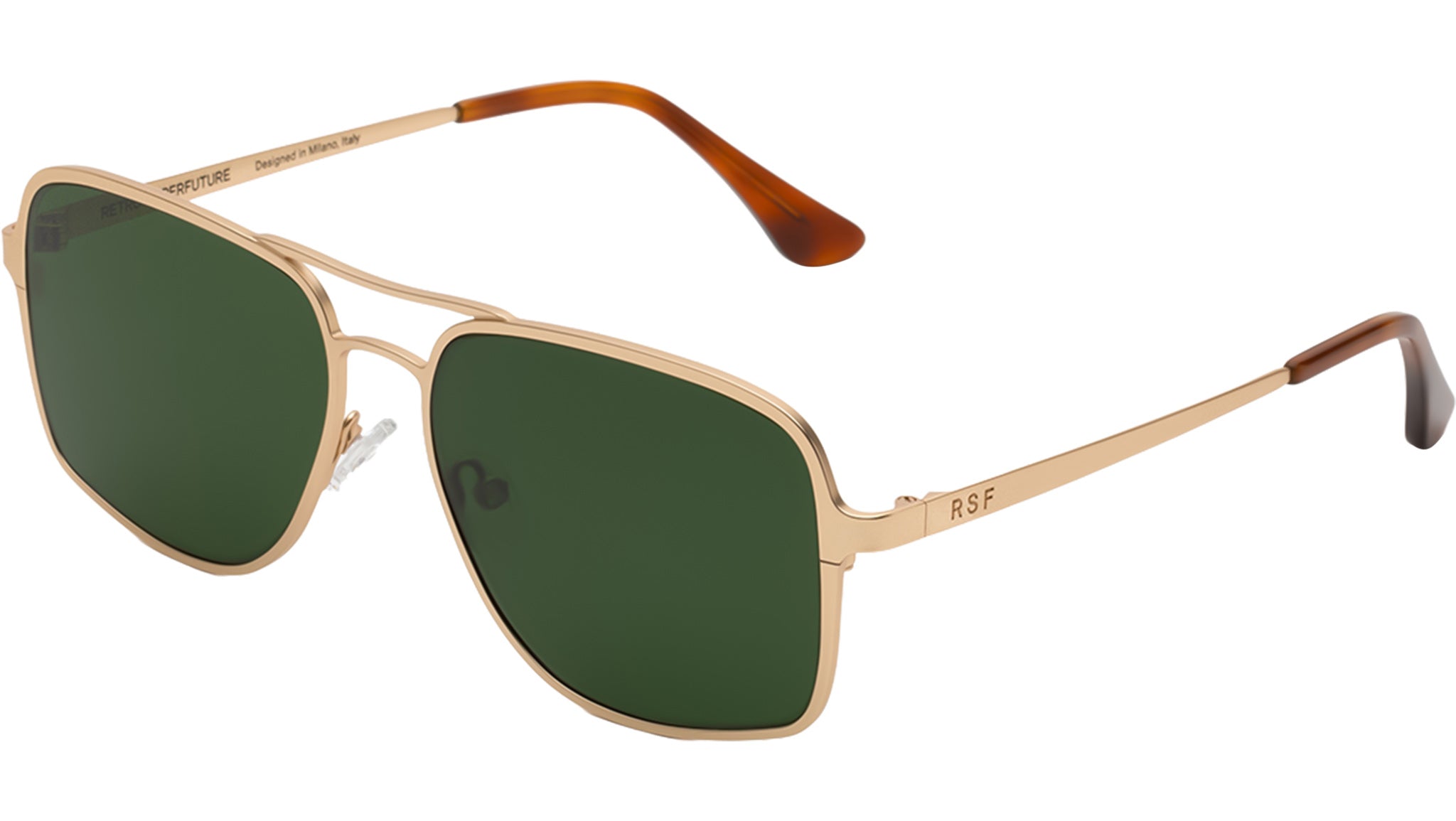Occhiali da sole Retrosuperfuture Spliff Classiccs con montatura in acetato oro e lenti color verde. Codice modello: V3L. Made in Italy. Rivenditore autorizzato RSF online. Gli occhiali vengono consegnati con custodia e accessori originali e sono coperti dalla garanzia ufficiale di 12 mesi del produttore.