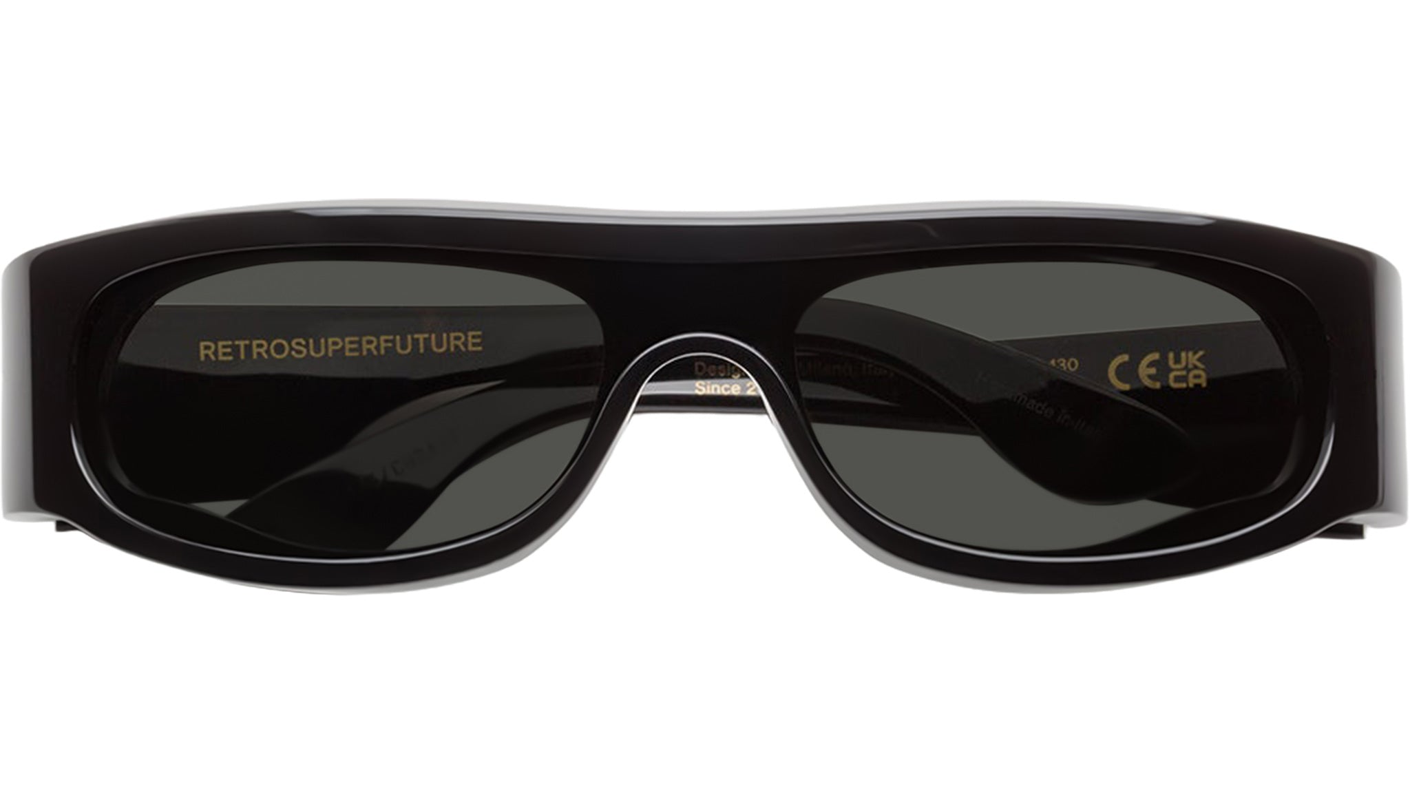 Occhiali da sole Retrosuperfuture Pharoah Black con montatura in acetato nero e lenti color nero. Codice modello: X11. Made in Italy. Rivenditore autorizzato RSF online. Gli occhiali vengono consegnati con custodia e accessori originali e sono coperti dalla garanzia ufficiale di 12 mesi del produttore.