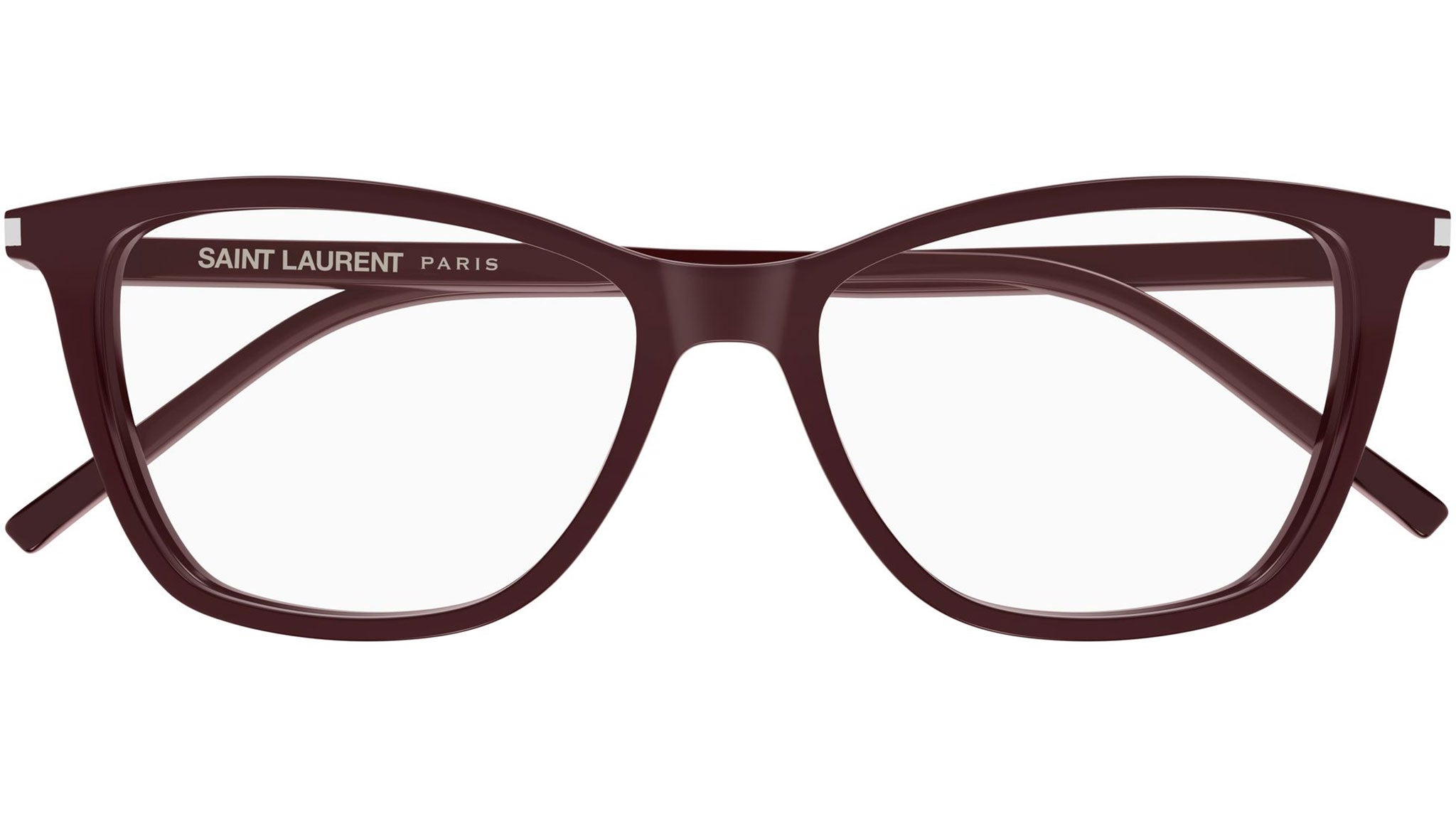 Occhiali da vista Saint Laurent SL 259 018 donna con montatura cat eye in acetato bordeaux tinta unita lucido e lenti demo. Linea: Corner Angle. Codice modello: SL 259. Codice colore: 018. Made in Italy. Rivenditore autorizzato Saint Laurent online. Gli occhiali vengono consegnati con custodia e accessori originali e sono coperti dalla garanzia ufficiale di 12 mesi del produttore.