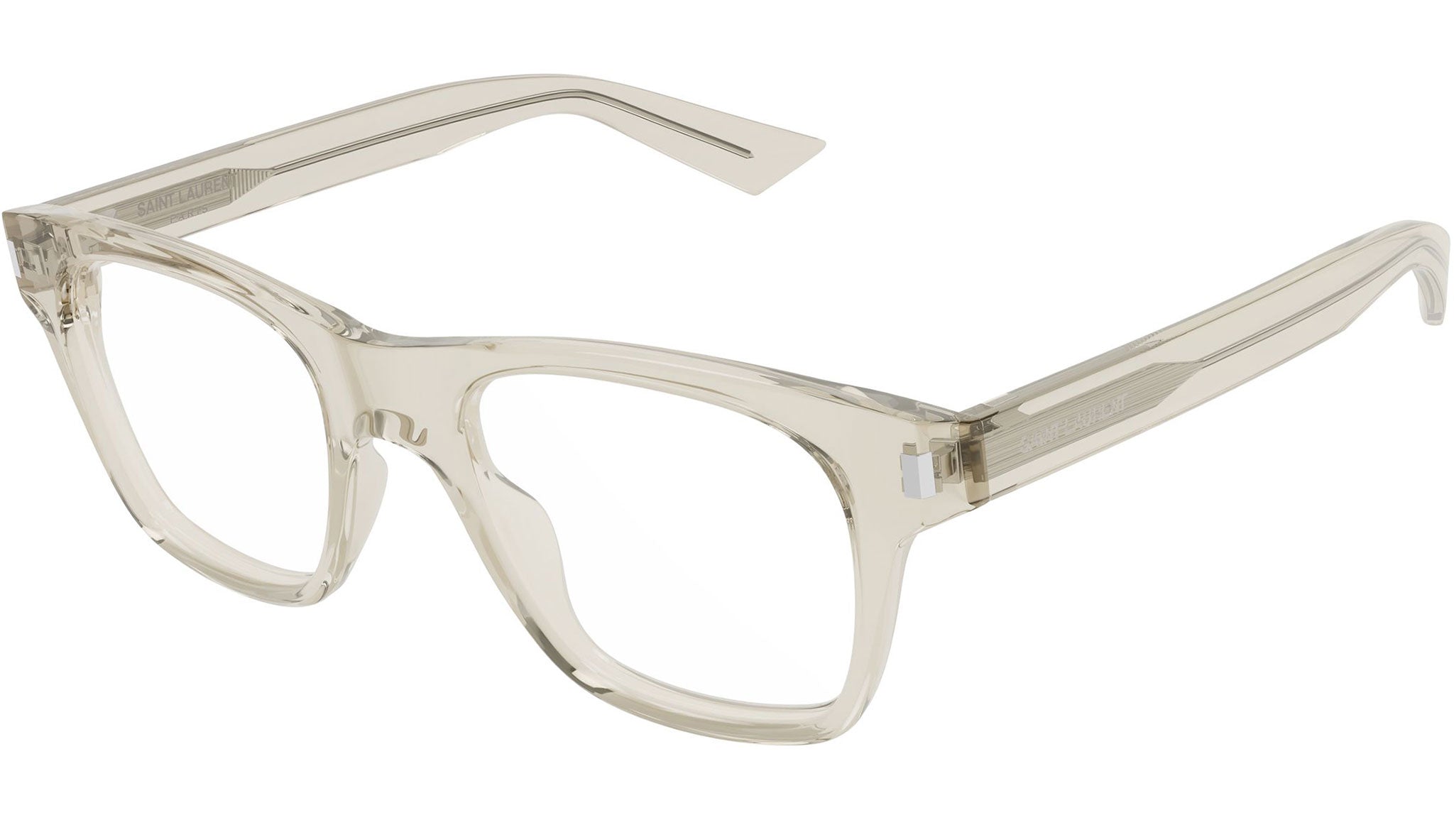 Occhiali da vista Saint Laurent SL 875 OPT uomo con montatura rettangolare in acetato riciclato crema trasparente lucido e lenti demo. Linea: Corner Angle. Codice modello: SL 875 OPT. Codice colore 52 mm: 010. 50 mm: 006. Made in Italy. Rivenditore autorizzato Saint Laurent online. Gli occhiali vengono consegnati con custodia e accessori originali e sono coperti dalla garanzia ufficiale di 12 mesi del produttore.