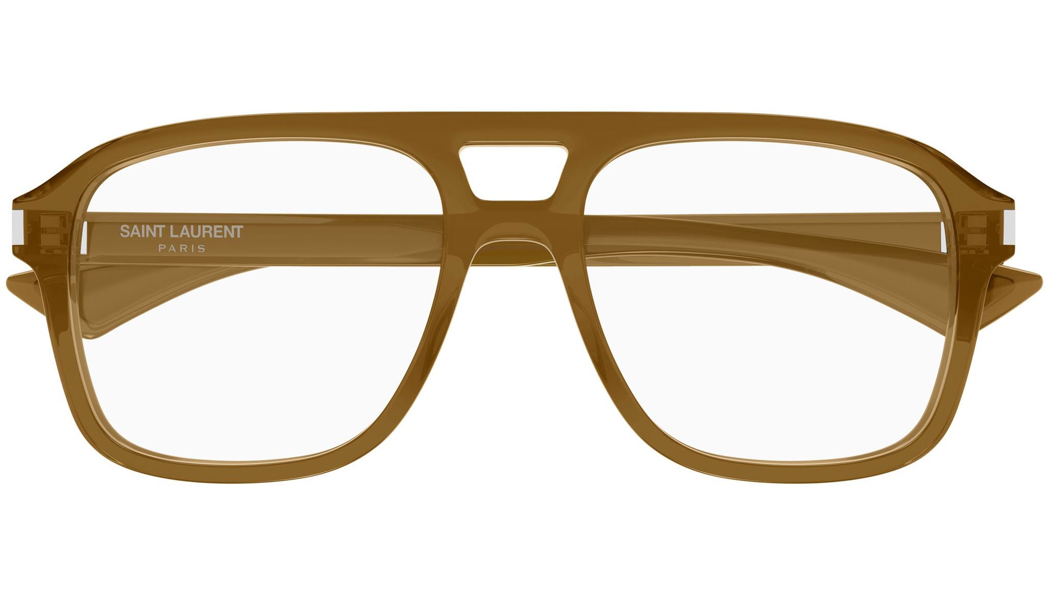 Occhiali da vista Saint Laurent SL 881 OPT 005 uomo con montatura aviatore in acetato riciclato marrone cognac trasparente e lenti demo. Linea: Corner Angle. Codice modello: SL 881 OPT. Codice colore: 005. Made in Japan. Rivenditore autorizzato Saint Laurent online. Gli occhiali vengono consegnati con custodia e accessori originali e sono coperti dalla garanzia ufficiale di 12 mesi del produttore.