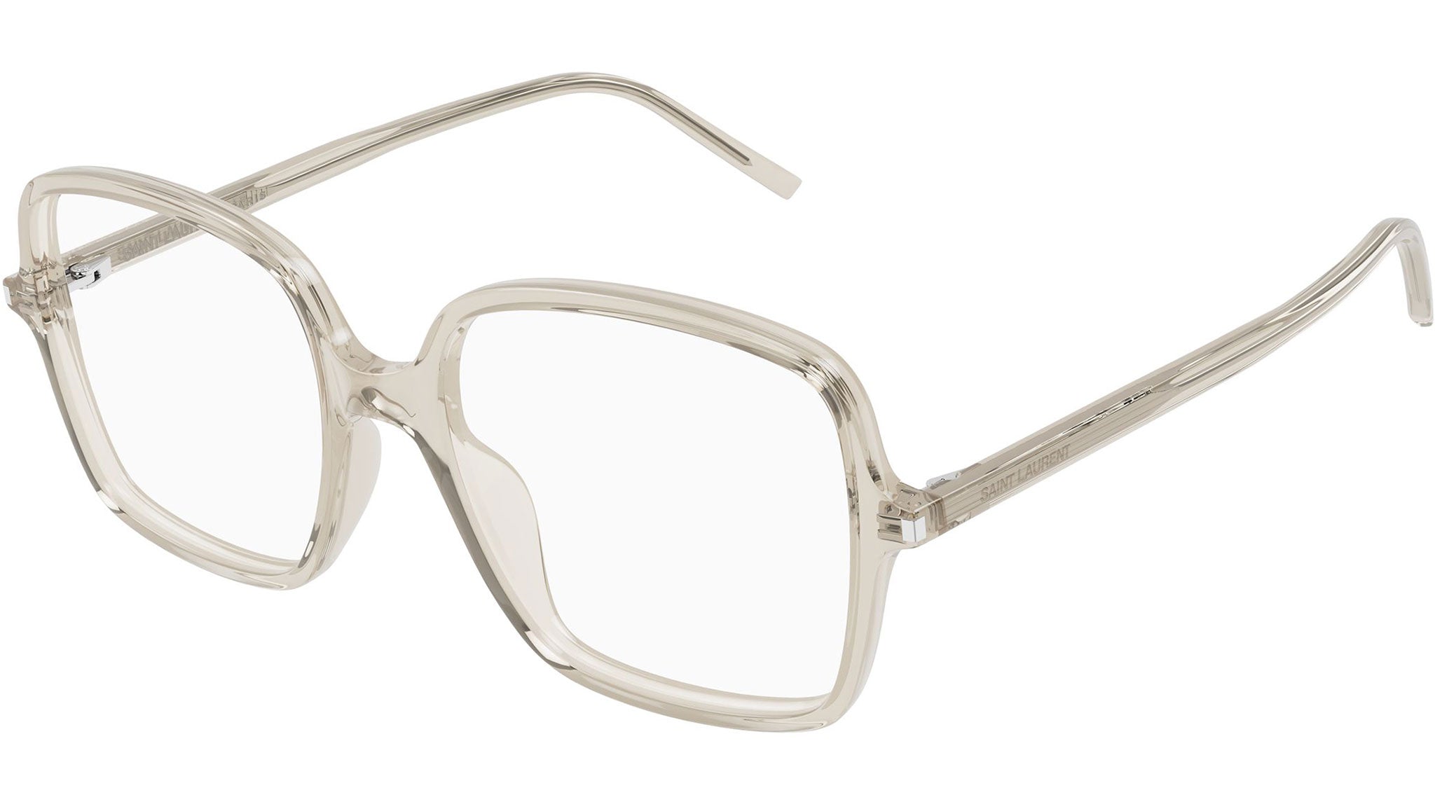 Occhiali da vista Saint Laurent SL 892 004 donna con montatura rettangolare in acetato riciclato crema trasparente lucido e lenti demo. Linea: Corner Angle. Codice modello: SL 892. Codice colore: 004. Made in Italy. Rivenditore autorizzato Saint Laurent online. Gli occhiali vengono consegnati con custodia e accessori originali e sono coperti dalla garanzia ufficiale di 12 mesi del produttore.