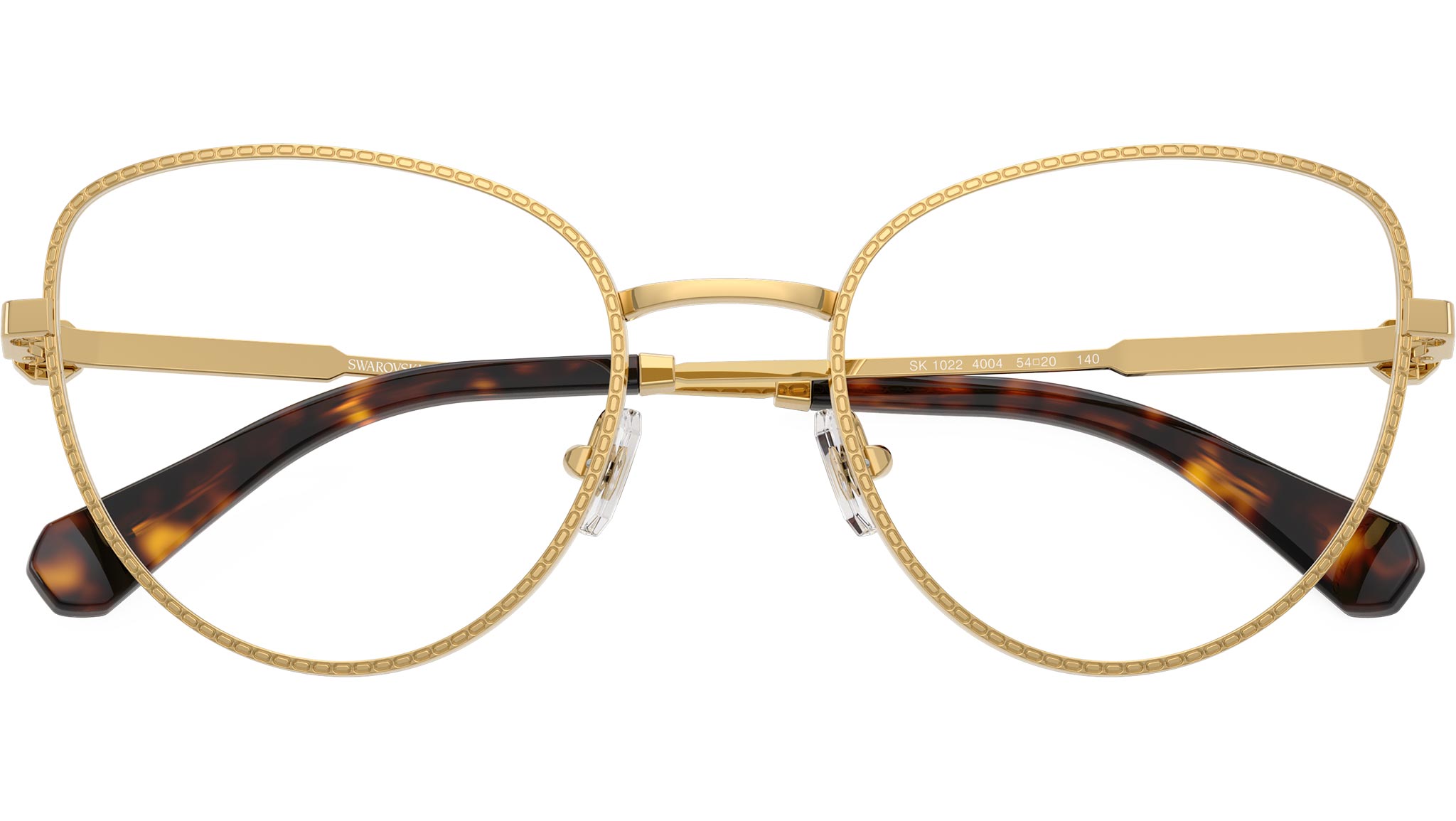 Occhiali da vista Swarovski SK1022 4004 donna, con montatura cat eye in metallo color oro e lenti demo. Naselli regolabili. Linea: Science of Facets. Codice modello: SK1022. Codice colore: 4004. Rivenditore autorizzato Swarovski Eyewear online. Ogni prodotto Swarovski viene consegnato con astuccio originale e accessori ed è coperto da garanzia del produttore di 12 mesi.