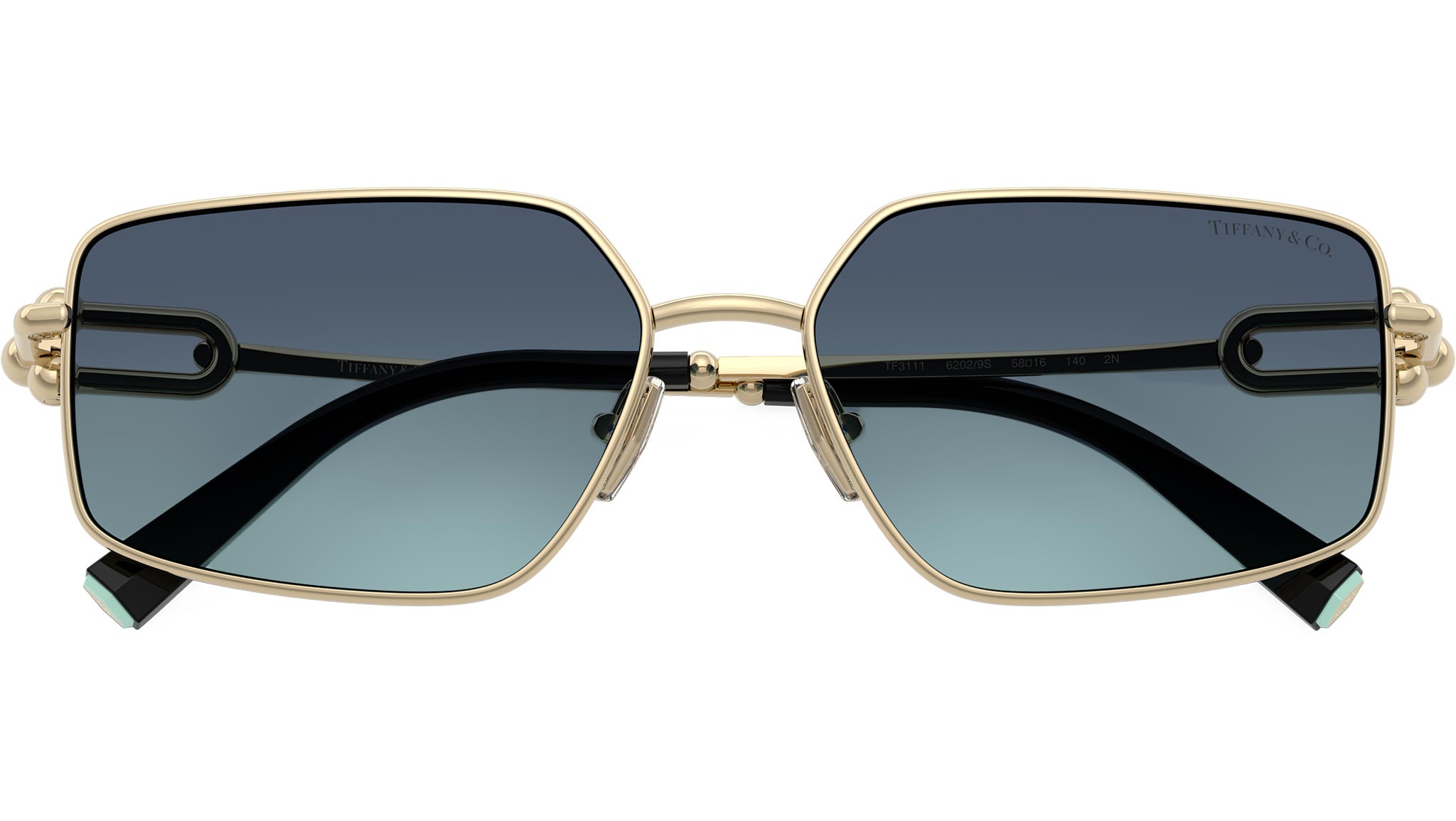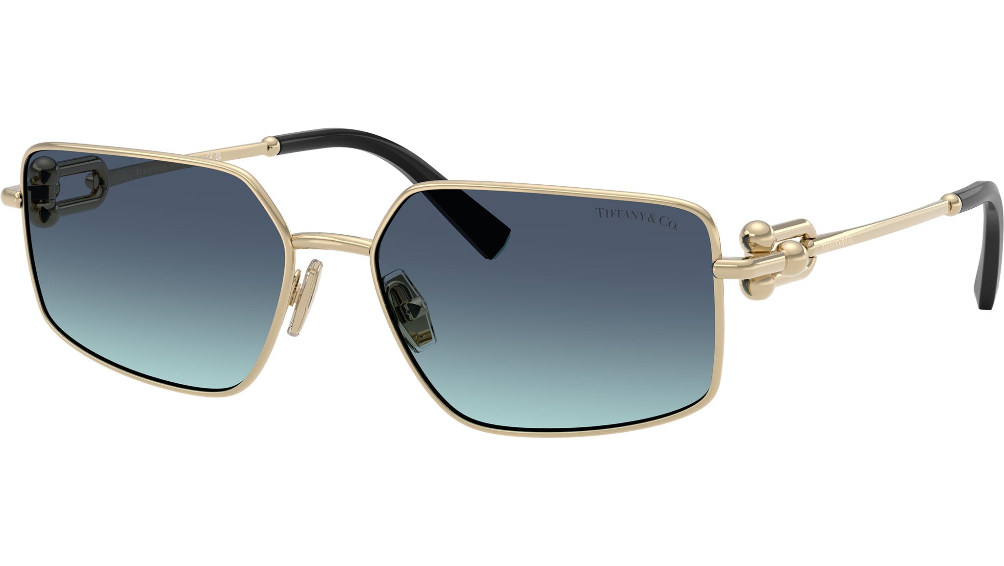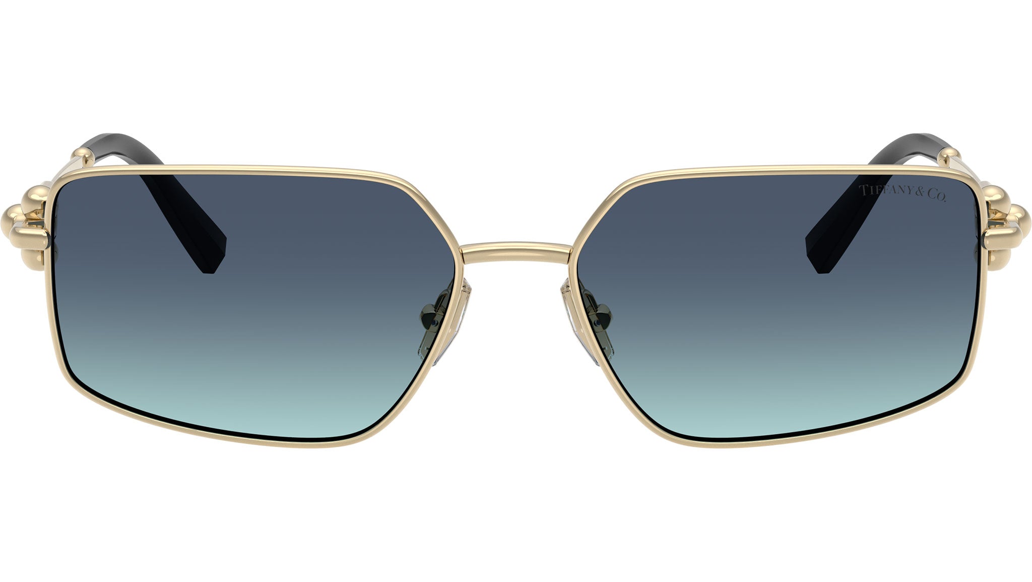 Occhiali da sole Tiffany unisex modello TF3111 62029S con montatura rettangolare in metallo oro chiaro e lenti in bio poliammide blu azzurro sfumato base 4. Naselli regolabili. Linea: Icons. Codice Brand: 0TF3111. Codice colore: 62029S. Rivenditore autorizzato online Tiffany Eyewear. Ogni prodotto Tiffany viene consegnato con astuccio originale e accessori ed è coperto da garanzia del produttore di 12 mesi.