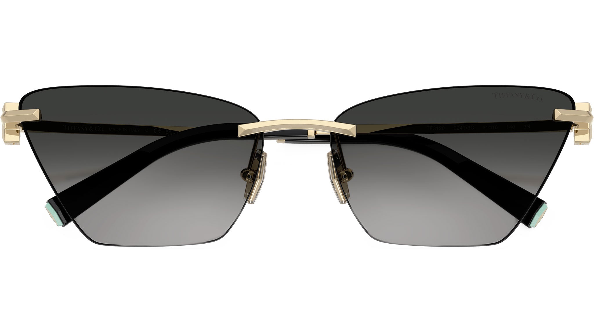 Occhiali da sole Tiffany donna modello TF3120 62413C con montatura a farfalla in metallo oro chiaro e lenti in bio poliammide grigio sfumato base 4. Naselli regolabili. Linea: Icons. Codice Brand: 0TF3120. Codice colore: 62413C. Rivenditore autorizzato online Tiffany Eyewear. Ogni prodotto Tiffany viene consegnato con astuccio originale e accessori ed è coperto da garanzia del produttore di 12 mesi.