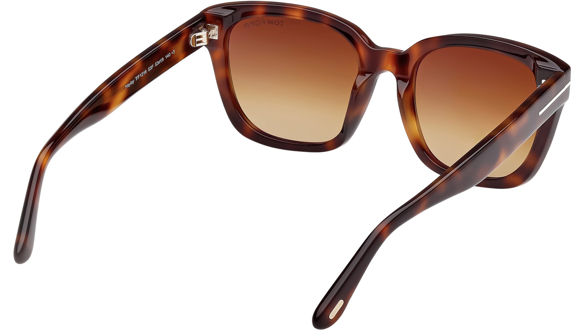 Occhiali da sole Tom Ford donna modello FT1216 con montatura avana chiaro full-rim in acetato e lenti color marrone sfumato. Codice Brand: 1216. Codice colore: 53F. Rivenditore autorizzato Tom Ford online. Gli occhiali vengono consegnati con custodia e accessori originali e sono coperti da garanzia standard di 12 mesi del produttore.
