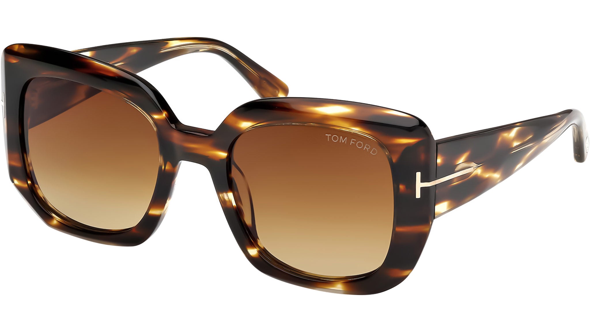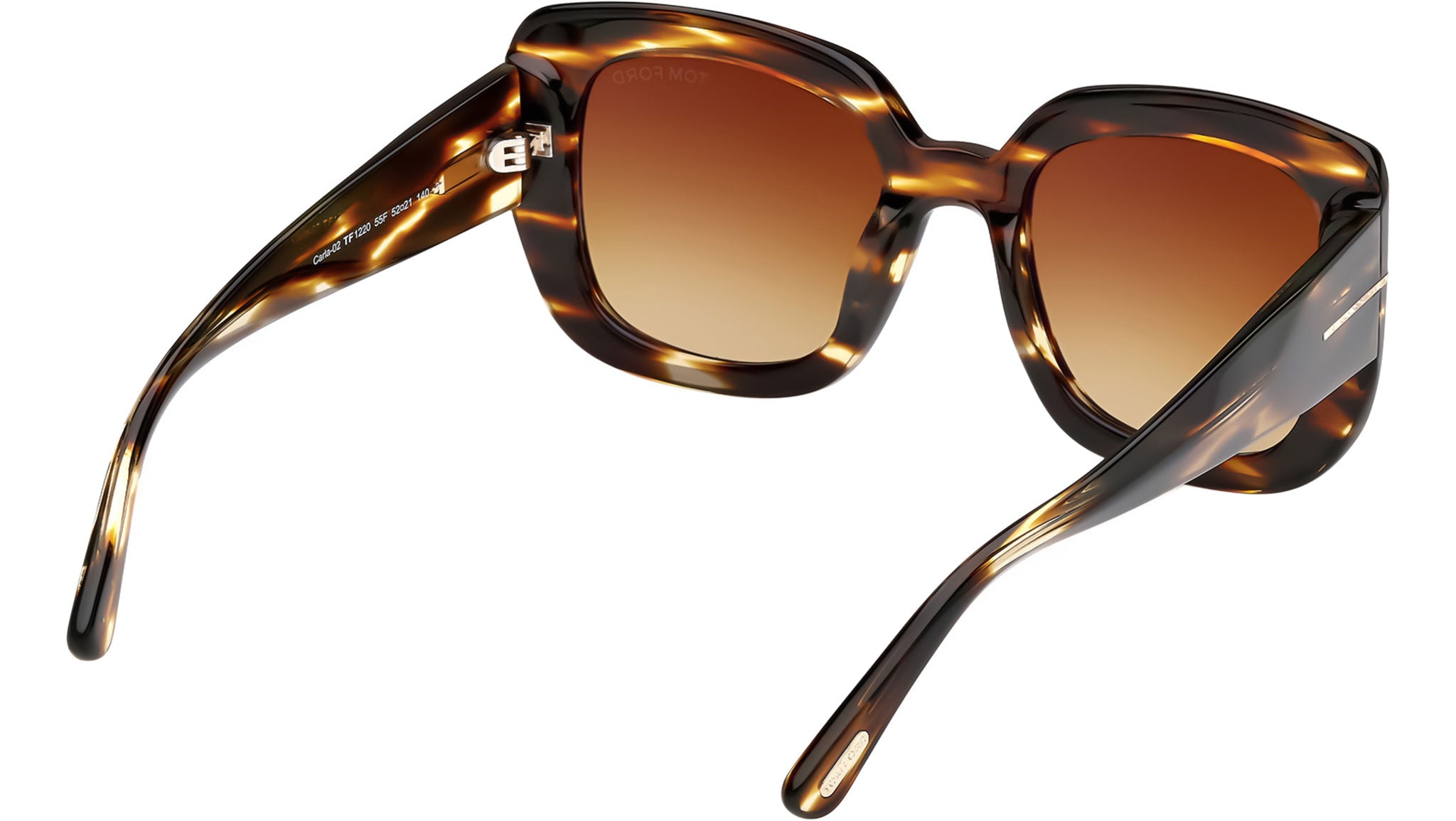 Occhiali da sole Tom Ford donna modello FT1220 con montatura avana scuro full-rim in acetato e lenti color marrone sfumato. Codice Brand: 1220. Codice colore: 55F. Rivenditore autorizzato Tom Ford online. Gli occhiali vengono consegnati con custodia e accessori originali e sono coperti da garanzia standard di 12 mesi del produttore.