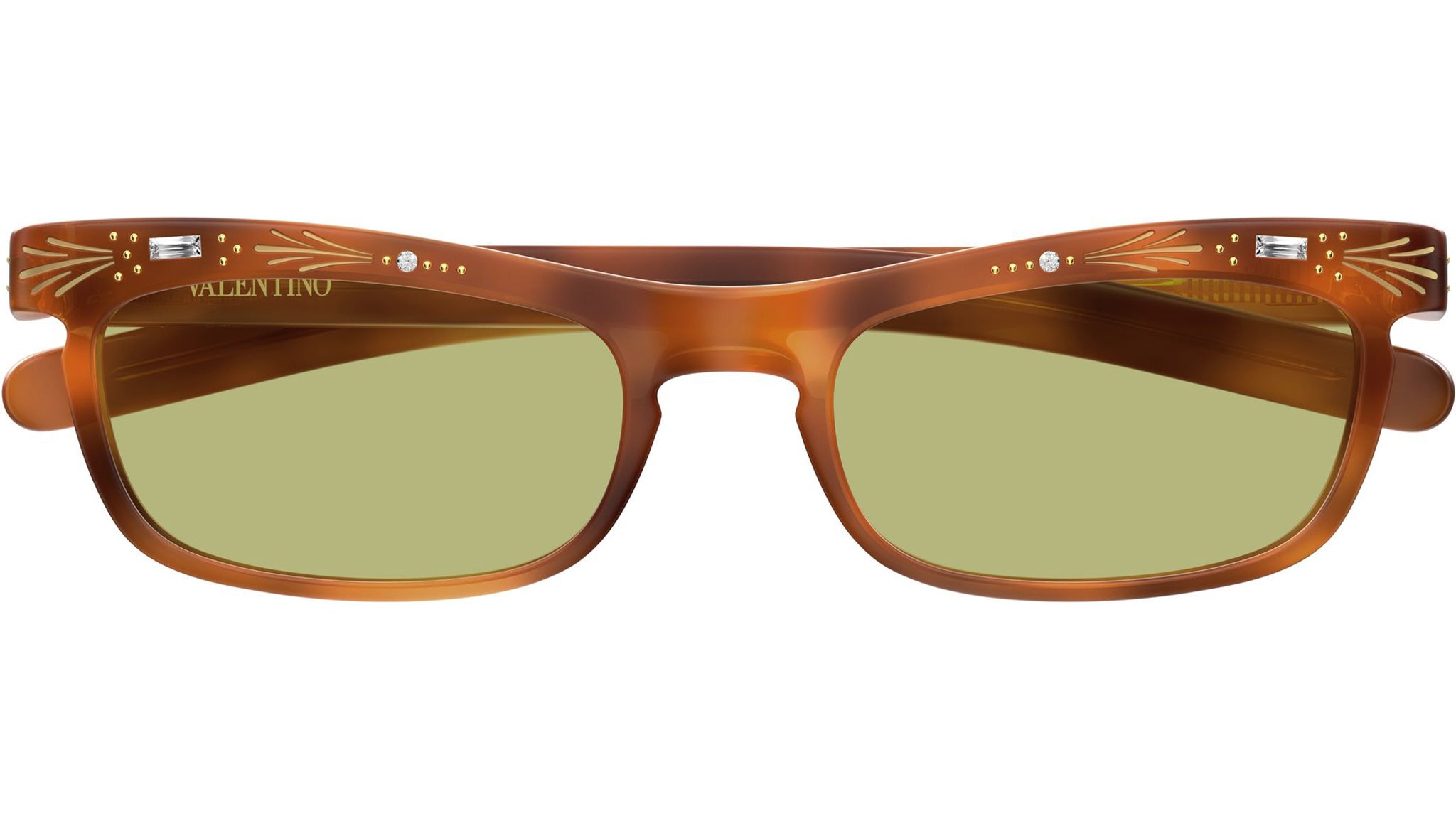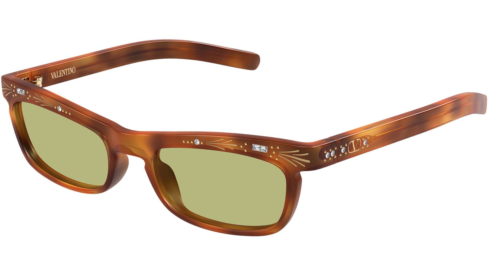 Occhiali da sole Valentino VG0044S 005 unisex con montatura rettangolare in acetato riciclato avana biondo lucido e lenti verde tinta unita. Linea: V Logo. Codice modello: VG0044S. Codice colore: 005. Made in Italy. Rivenditore autorizzato Valentino Eyewear online. Gli occhiali vengono consegnati con custodia e accessori originali e sono coperti dalla garanzia ufficiale di 12 mesi del produttore.