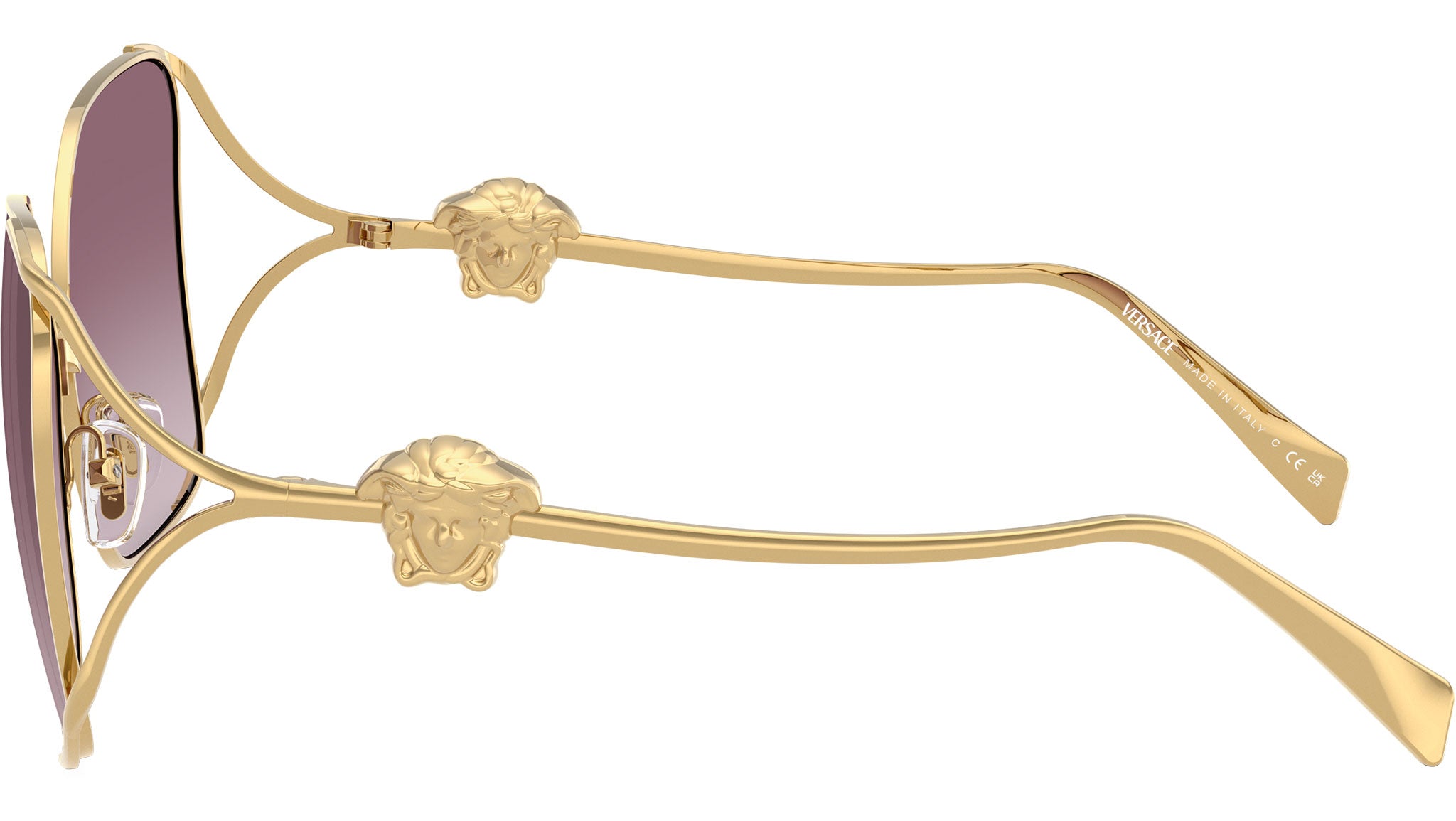 Occhiali da sole Versace donna modello VE2288 10026X con montatura squadrata in acciaio oro e lenti base 4 in policarbonato viola sfumato a specchio argento. Naselli regolabili. Linea: Fashion Id. Codice Brand: 0VE2288. Codice colore: 10026X. Rivenditore autorizzato online Versace Eyewear. Ogni prodotto Versace viene consegnato con astuccio originale e accessori ed è coperto da garanzia del produttore di 12 mesi.