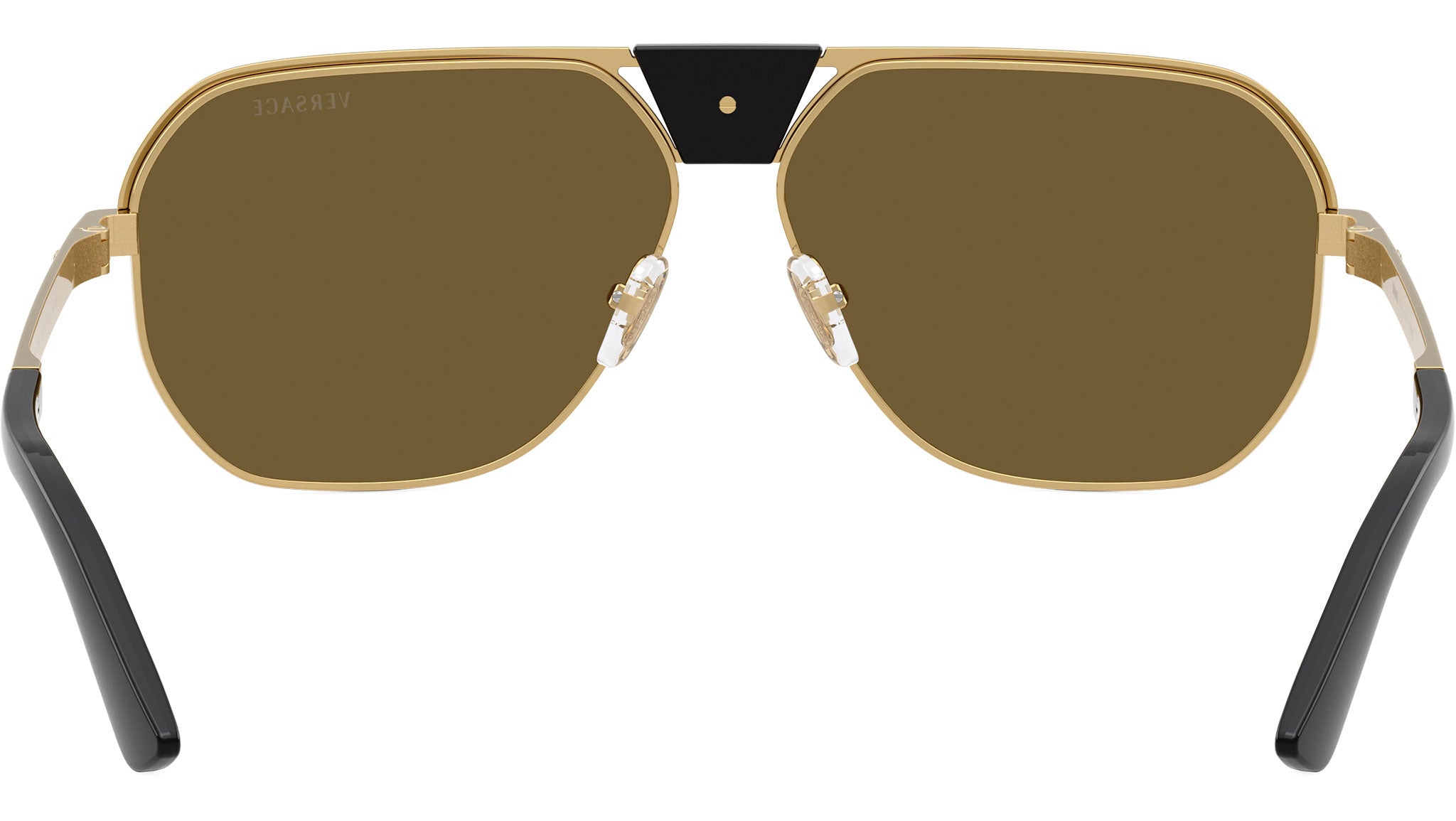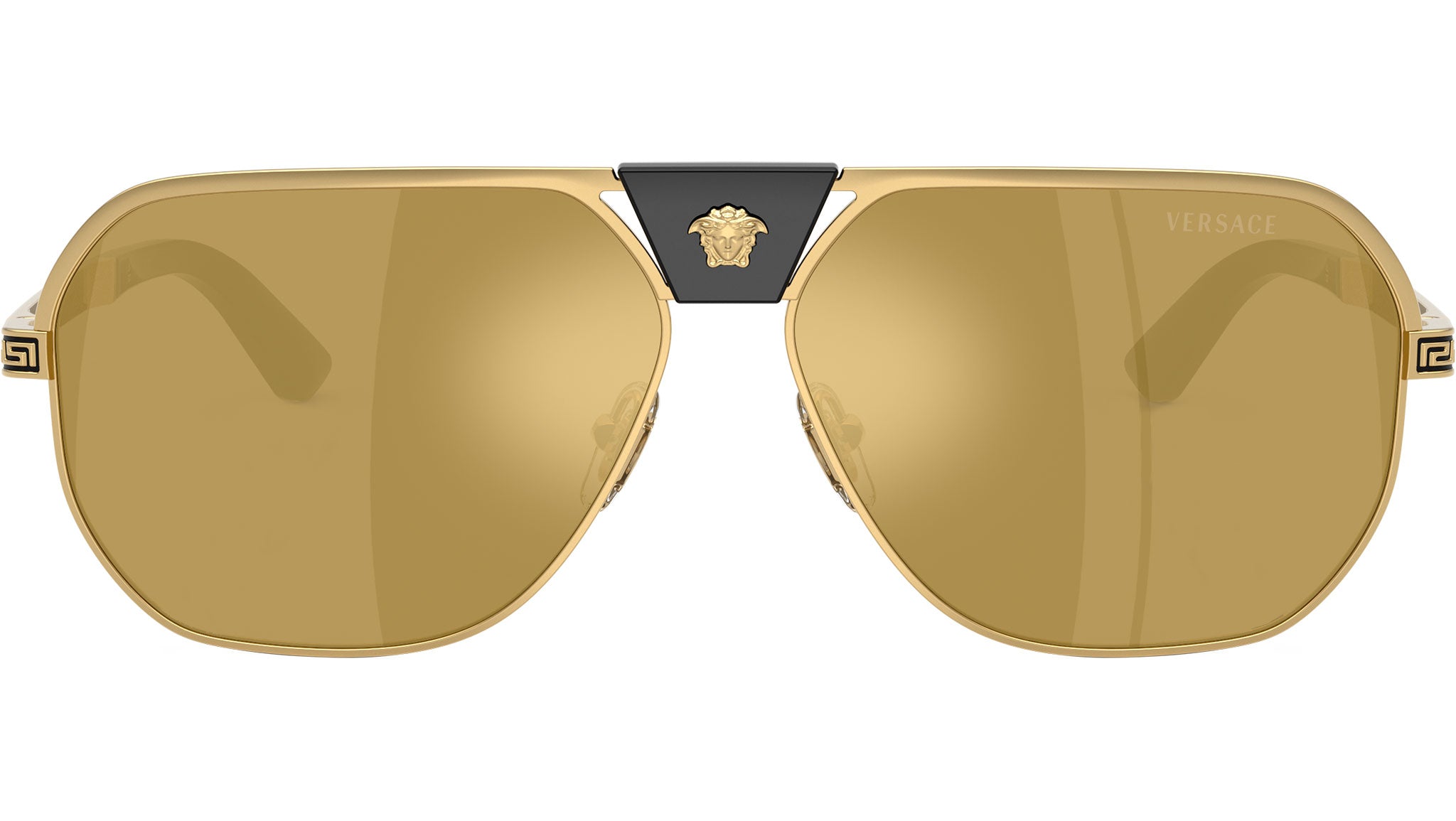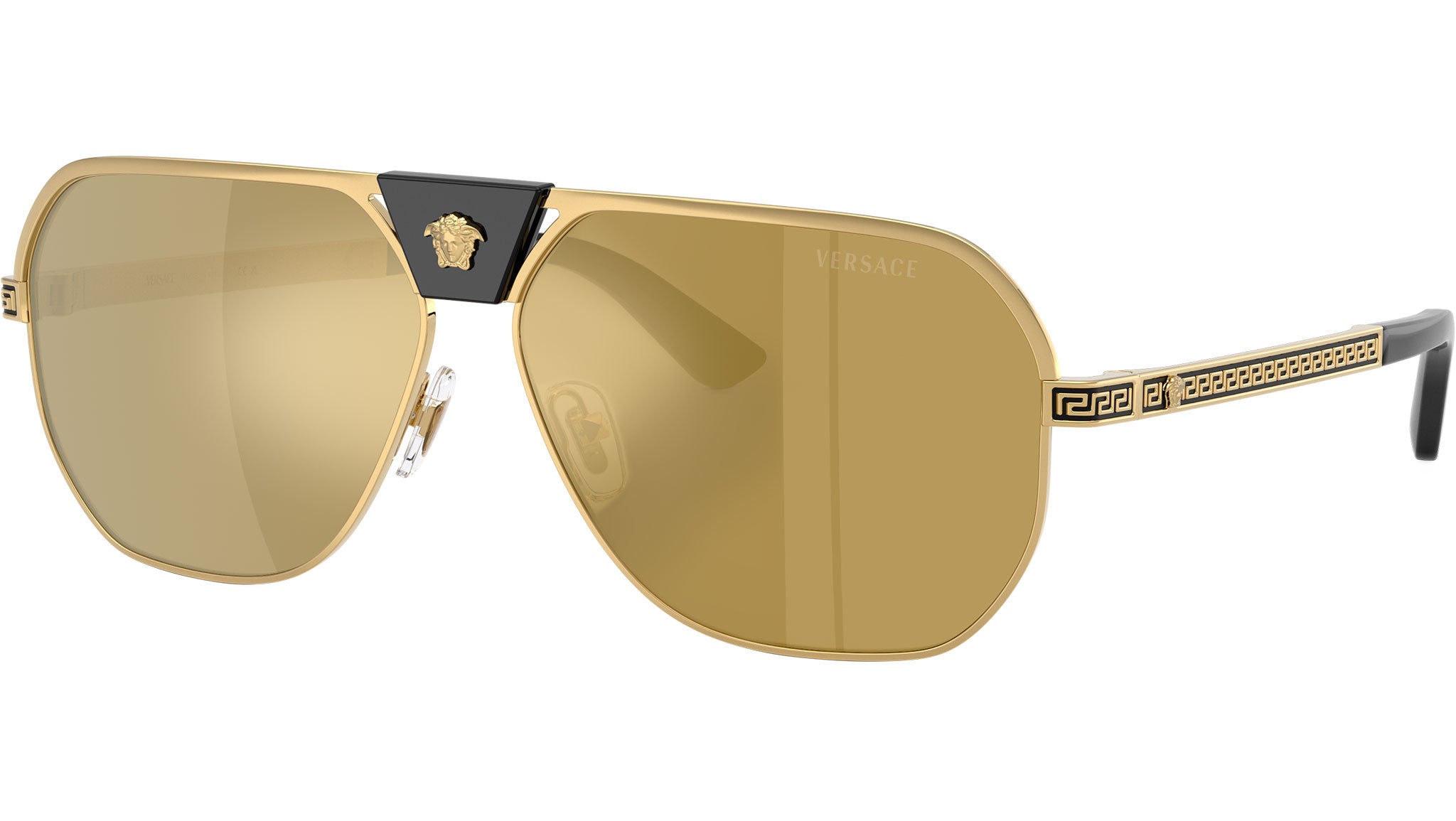 Occhiali da sole Versace uomo modello VE2294 10025A con montatura squadrata in metallo oro e lenti base 4 in policarbonato marrone oro a specchio. Naselli regolabili. Linea: Fashion Id. Codice Brand: 0VE2294. Codice colore: 10025A. Rivenditore autorizzato online Versace Eyewear. Ogni prodotto Versace viene consegnato con astuccio originale e accessori ed è coperto da garanzia del produttore di 12 mesi.