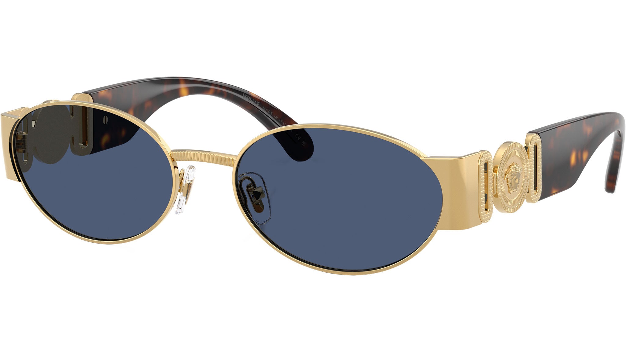 Occhiali da sole Versace uomo modello VE2299 100280 con montatura ovale in metallo oro e lenti base 4 in policarbonato blu scuro. Naselli regolabili. Linea: Iconic. Codice Brand: 0VE2299. Codice colore: 100280. Rivenditore autorizzato online Versace Eyewear. Ogni prodotto Versace viene consegnato con astuccio originale e accessori ed è coperto da garanzia del produttore di 12 mesi.