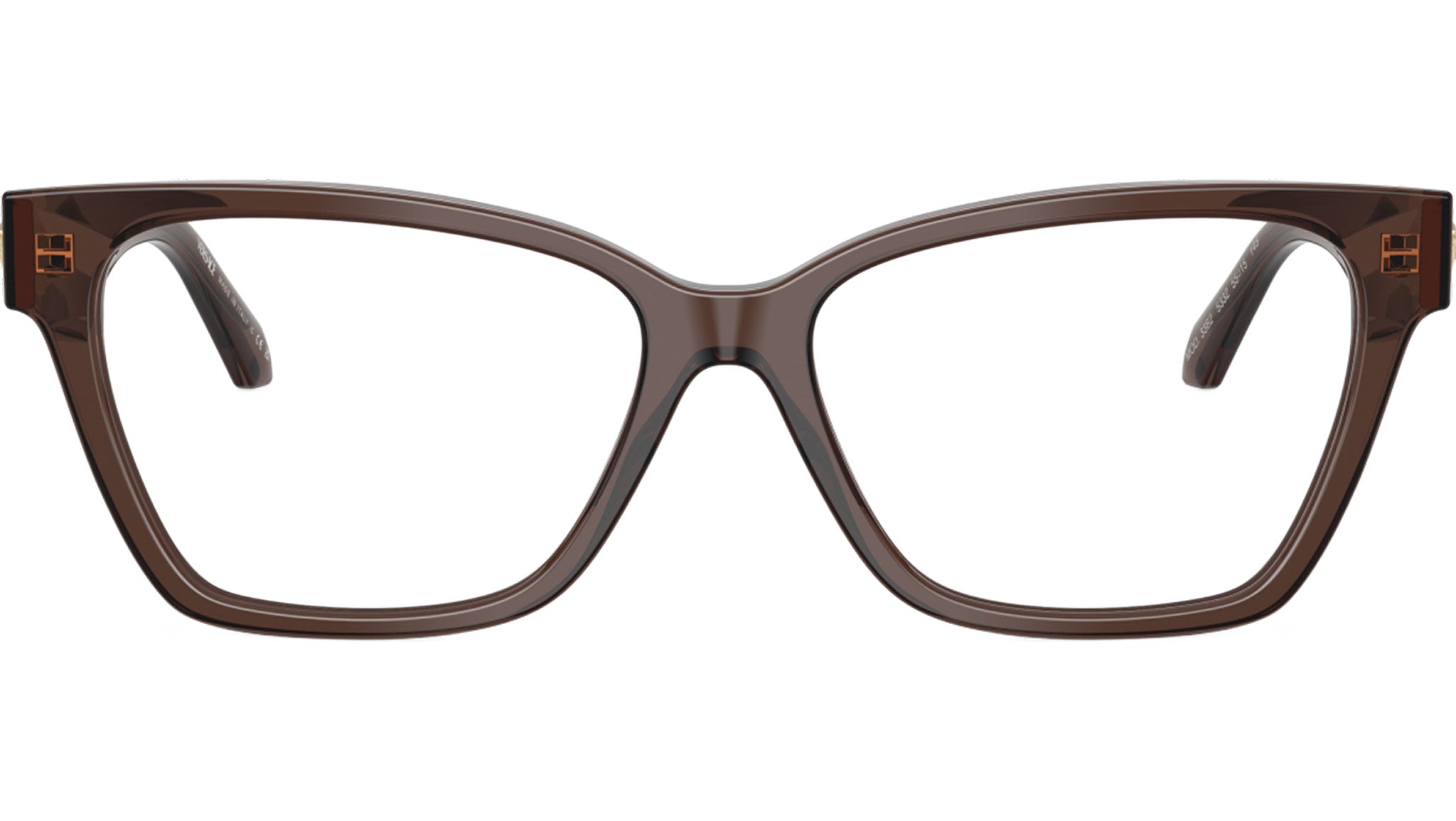 Montatura per occhiali da vista Versace donna modello VE3382 5332 con montatura cat eye in acetato marrone trasparente e lenti demo base 4. Vestibilità a ponte alto. Linea: Daily Heritage. Codice Brand: 0VE3382. Codice colore: 5332. Rivenditore autorizzato online Versace Eyewear. Ogni prodotto Versace viene consegnato con astuccio originale e accessori ed è coperto da garanzia del produttore di 12 mesi.