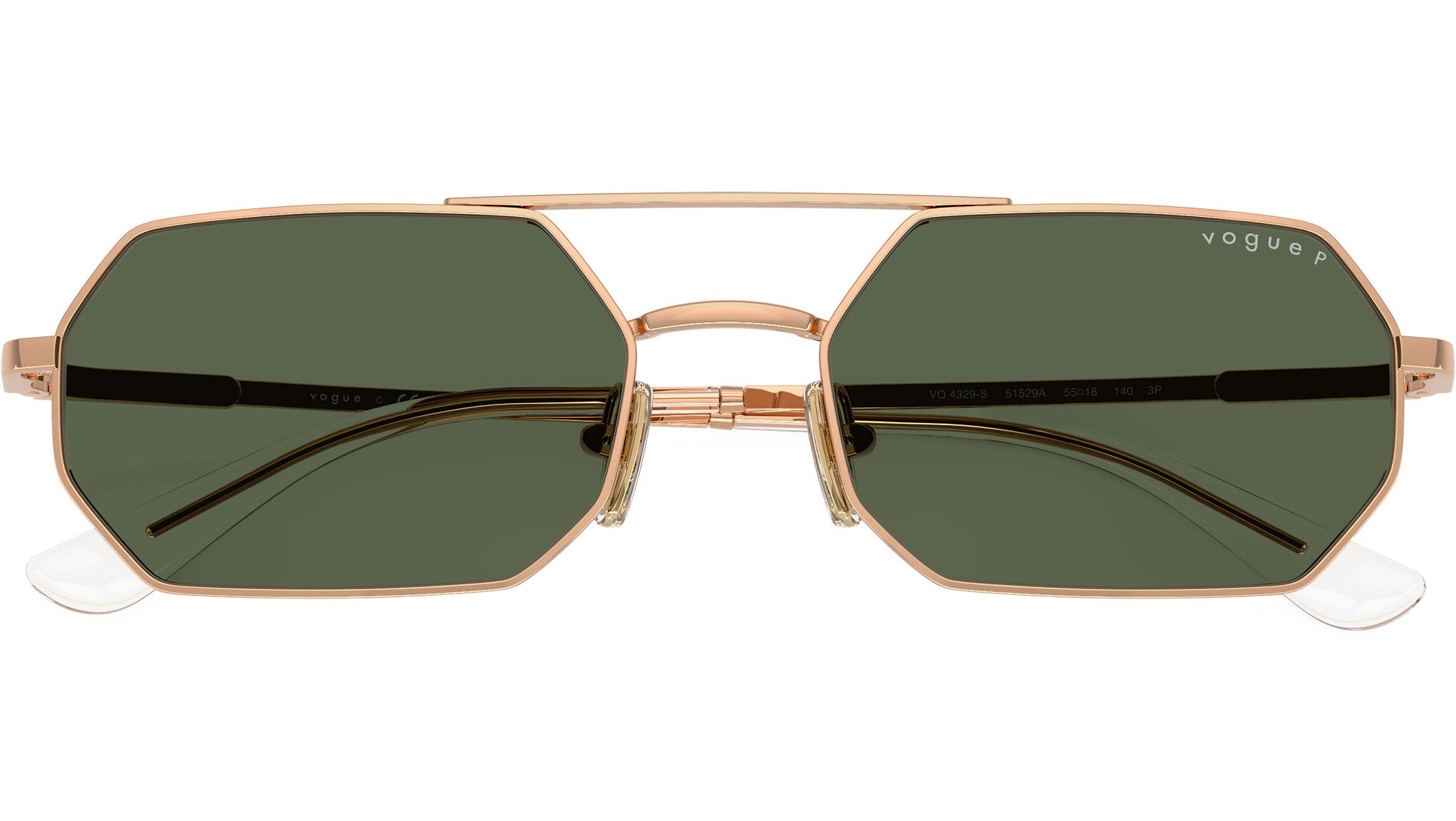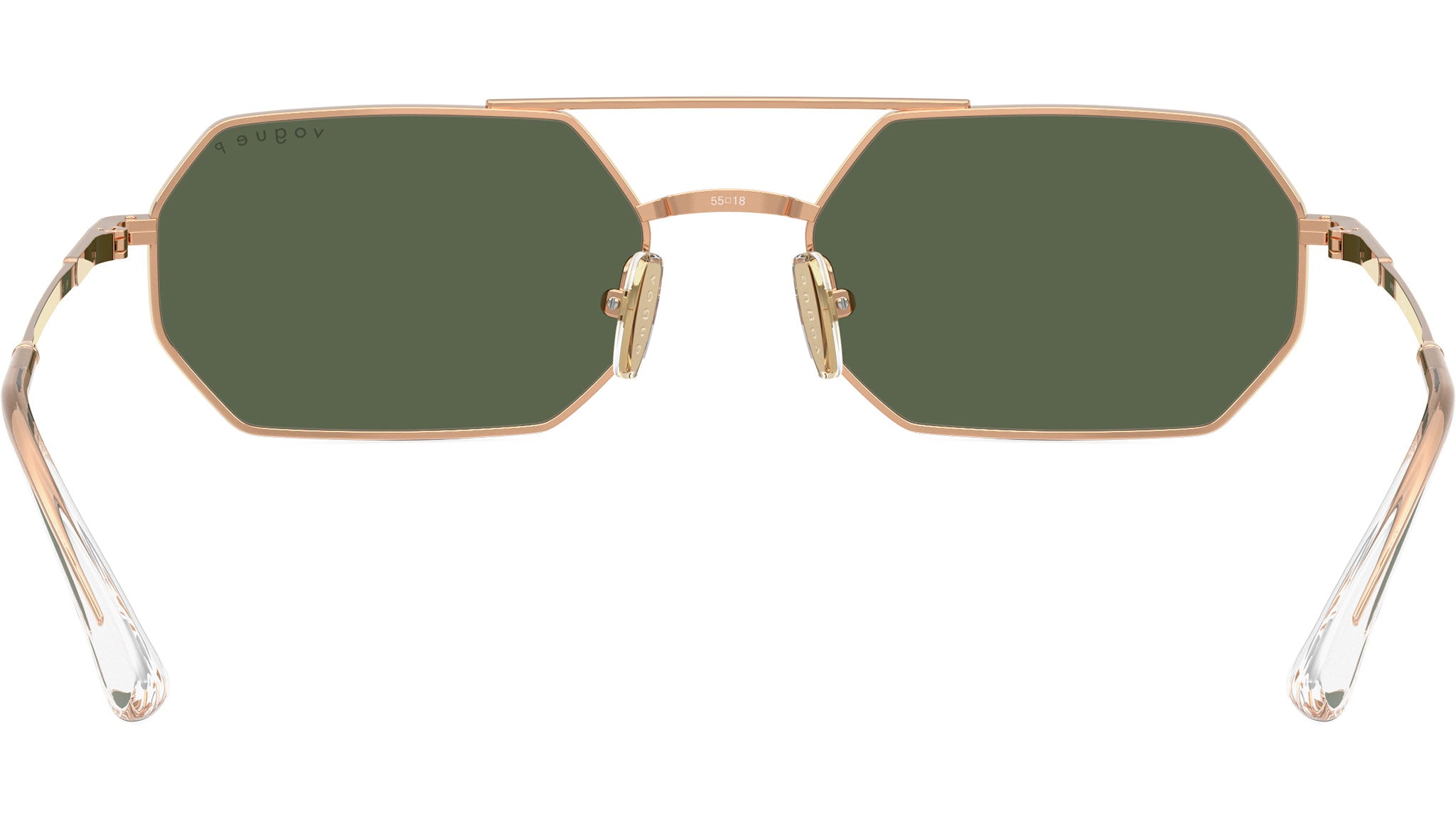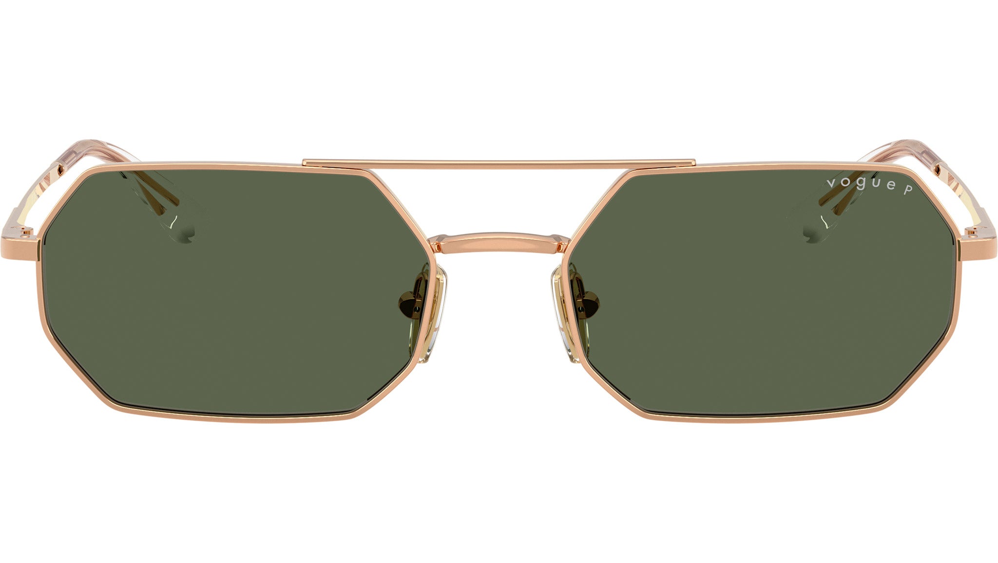 Occhiali da sole Vogue donna modello VO4329S 51529A con montatura geometrica in metallo oro rosa e lenti base 4 in policarbonato verde scuro polarizzato. Naselli regolabili. Linea: In Vogue. Codice Brand: 0VO4329S. Codice colore: 51529A. Rivenditore autorizzato online Vogue Eyewear. Ogni prodotto Vogue viene consegnato con astuccio originale e accessori ed è coperto da garanzia del produttore di 12 mesi.