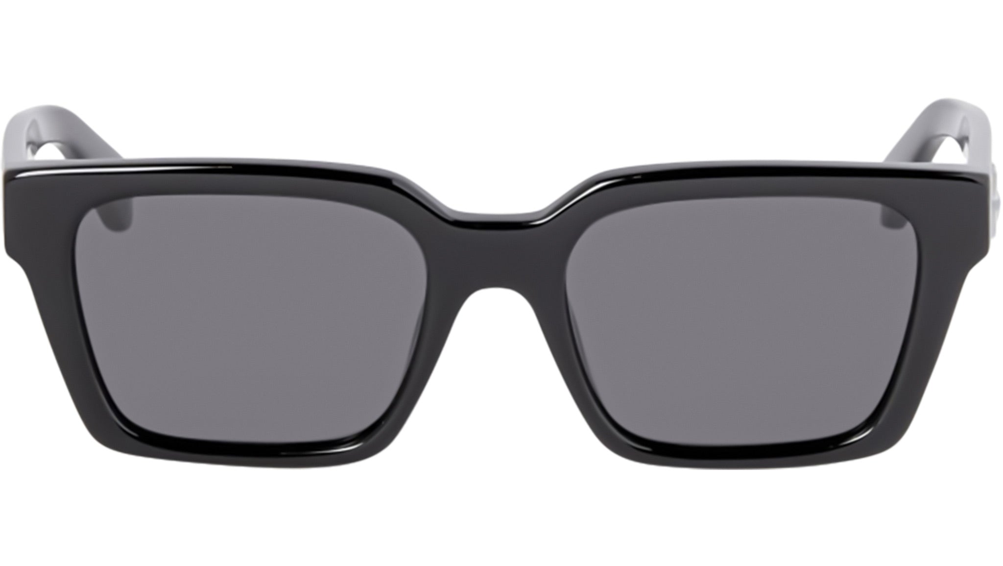 Occhiali da sole Off-White modello Branson codice colore 1007 con frontale in acetato nero tinta unita e lenti cat. 3 in polimero CR-39 grigio scuro. Rivenditore autorizzato Off-White Eyewear online. Gli occhiali vengono consegnati con custodia e accessori originali e sono coperti dalla garanzia ufficiale di 12 mesi del produttore.