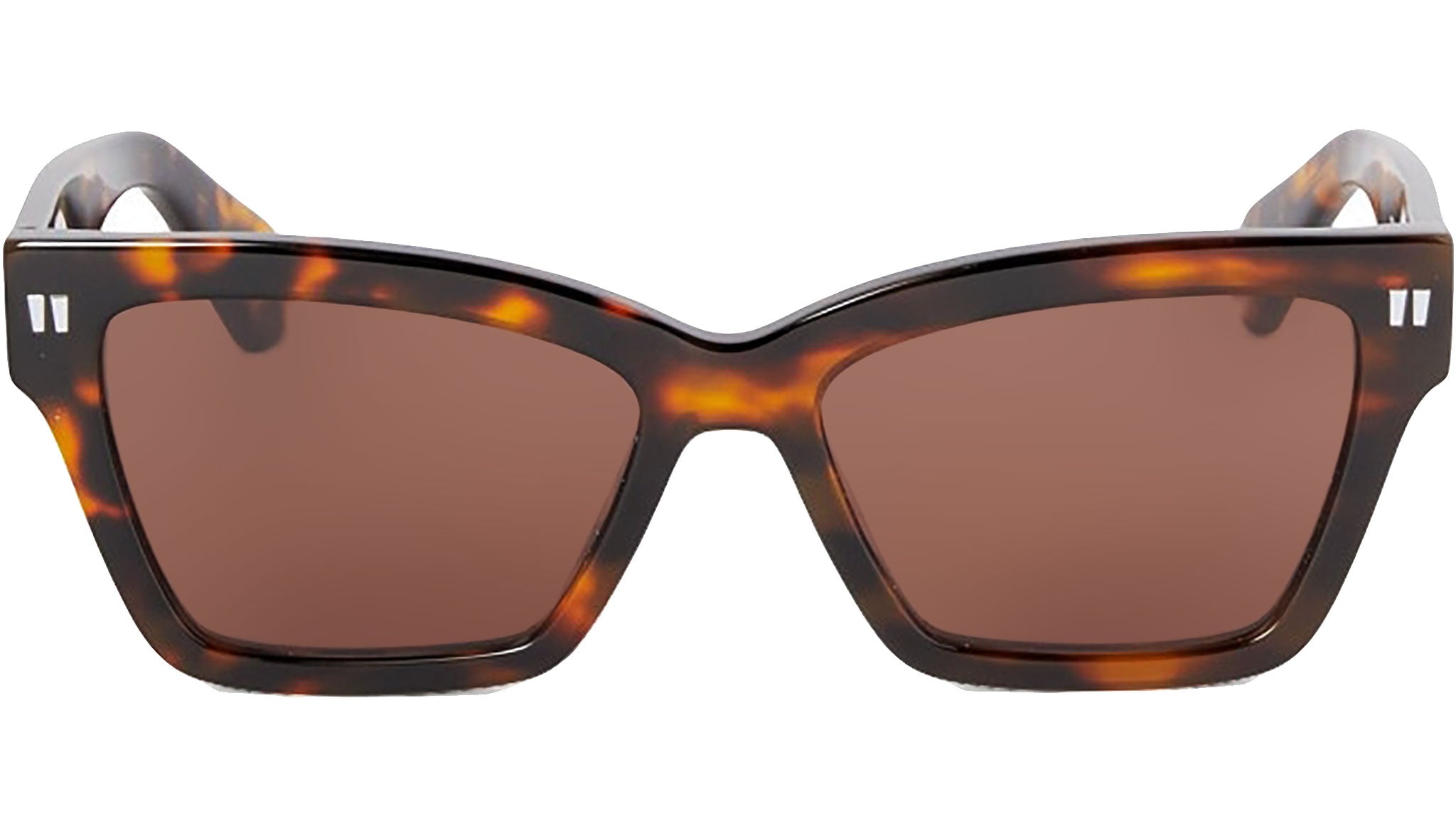Occhiali da sole Off-White modello Cincinnati codice colore 6064 con frontale in acetato avana intenso e lenti cat. 3 in polimero CR-39 marrone. Rivenditore autorizzato Off-White Eyewear online. Gli occhiali vengono consegnati con custodia e accessori originali e sono coperti dalla garanzia ufficiale di 12 mesi del produttore.