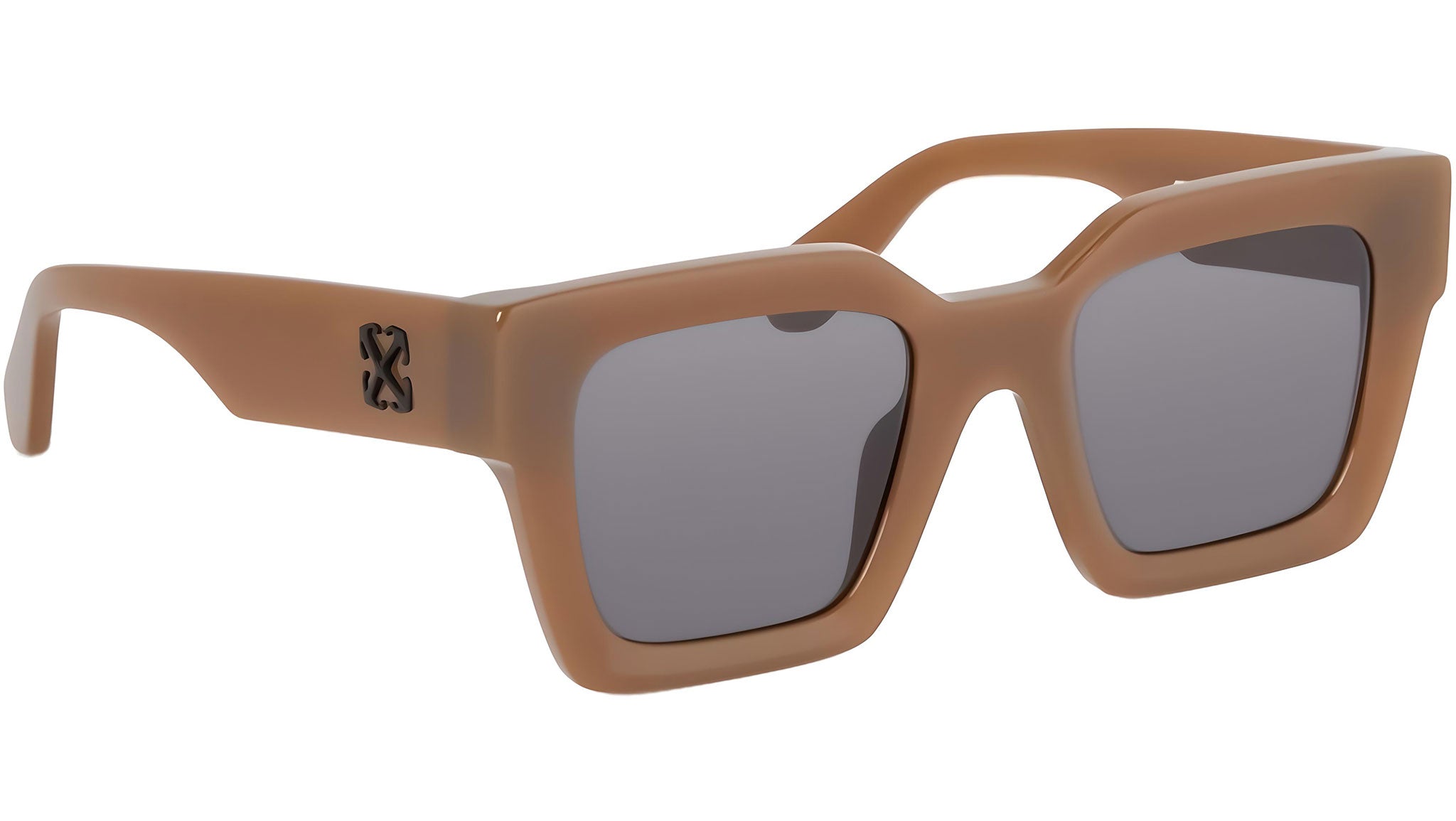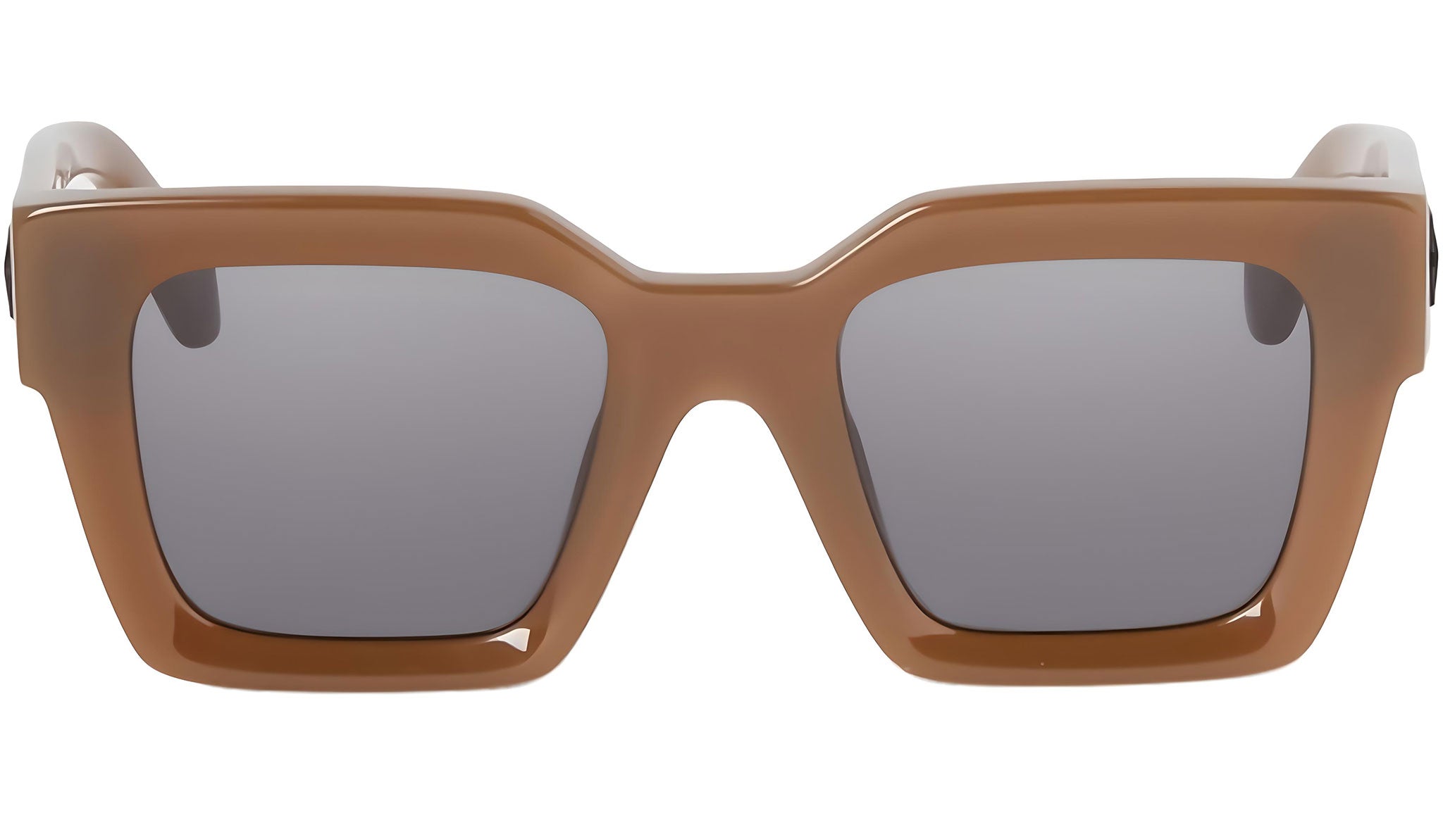 Occhiali da sole Off-White modello Jackson codice colore 7407 con frontale in acetato marrone fango lattiginoso e lenti cat. 3 in polimero CR-39 grigio scuro. Rivenditore autorizzato Off-White Eyewear online. Gli occhiali vengono consegnati con custodia e accessori originali e sono coperti dalla garanzia ufficiale di 12 mesi del produttore.