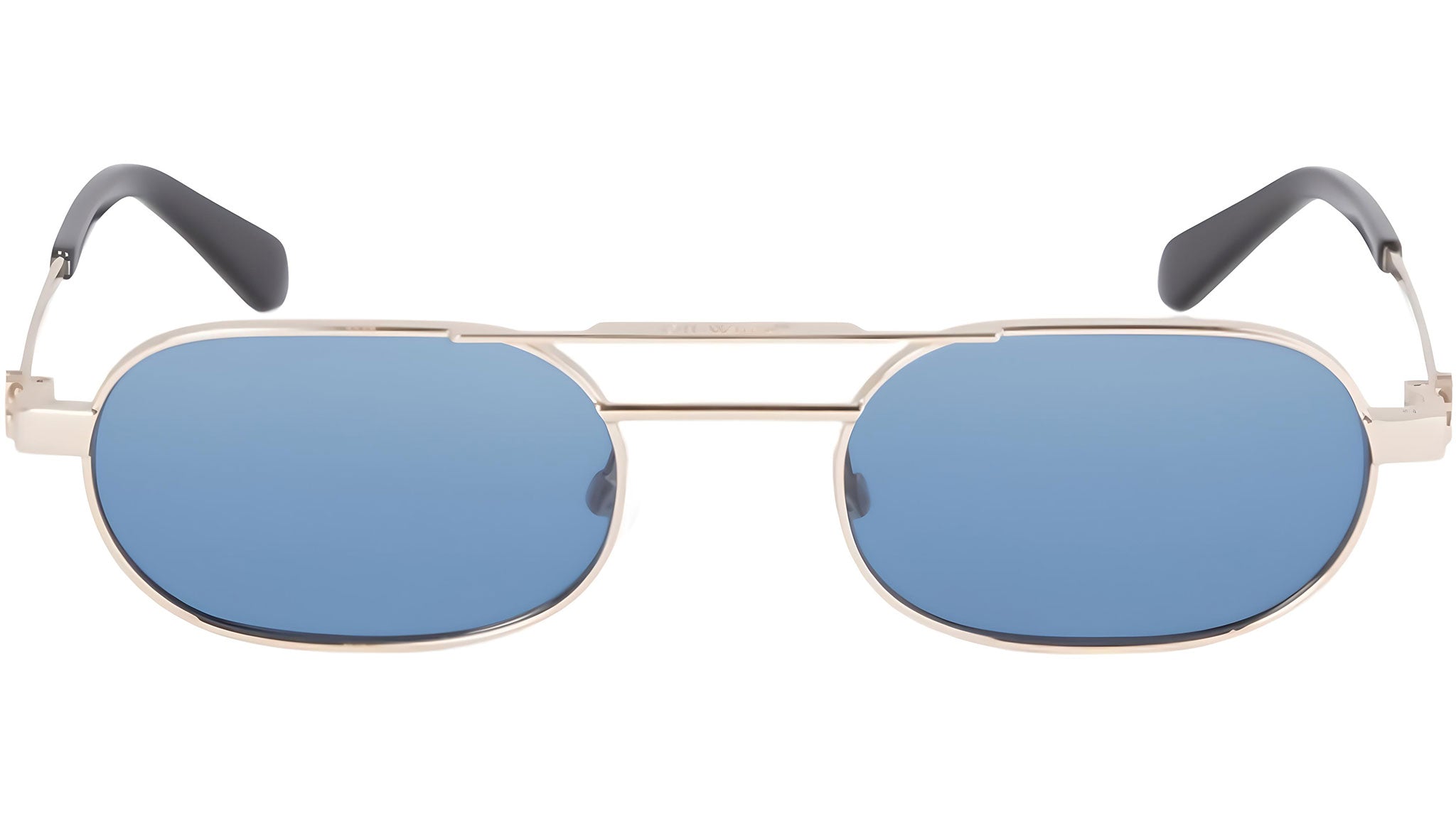 Occhiali da sole Off-White modello Vaiden codice colore 7645 con frontale in metallo metallo oro / punte nere e lenti cat. 3 in nylon blu. Rivenditore autorizzato Off-White Eyewear online. Gli occhiali vengono consegnati con custodia e accessori originali e sono coperti dalla garanzia ufficiale di 12 mesi del produttore.