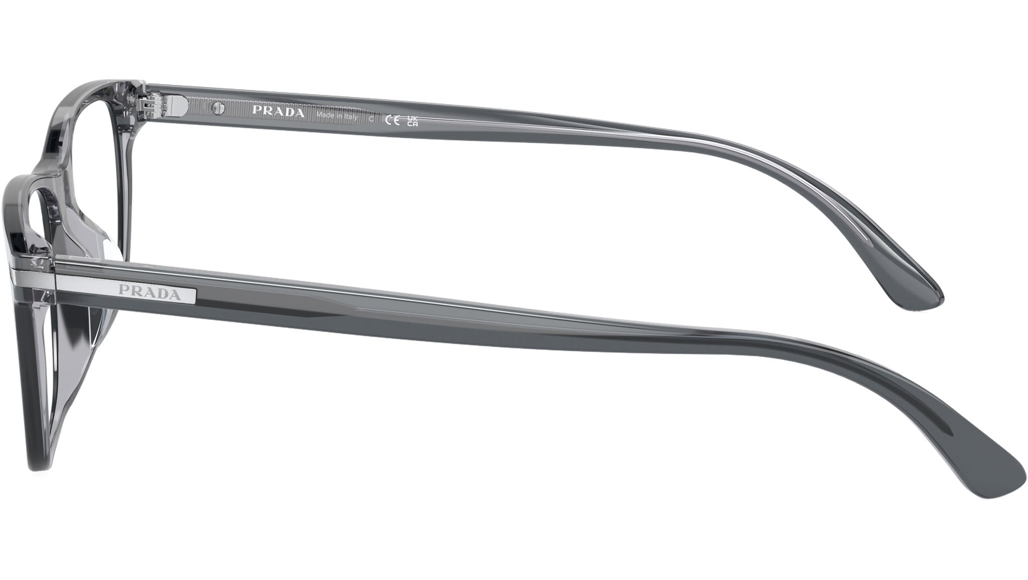 Occhiali da vista Prada PR 01ZVD 01G1O1 uomo con montatura rettangolare in acetato grigio fumo argento e lenti demo. Vestibilità a ponte basso. Linea: Signature. Codice modello: PR01ZVD. Codice colore: 01G1O1. Made in Italy. Rivenditore autorizzato Prada online. Gli occhiali vengono consegnati con custodia e accessori originali e sono coperti dalla garanzia ufficiale di 12 mesi del produttore.