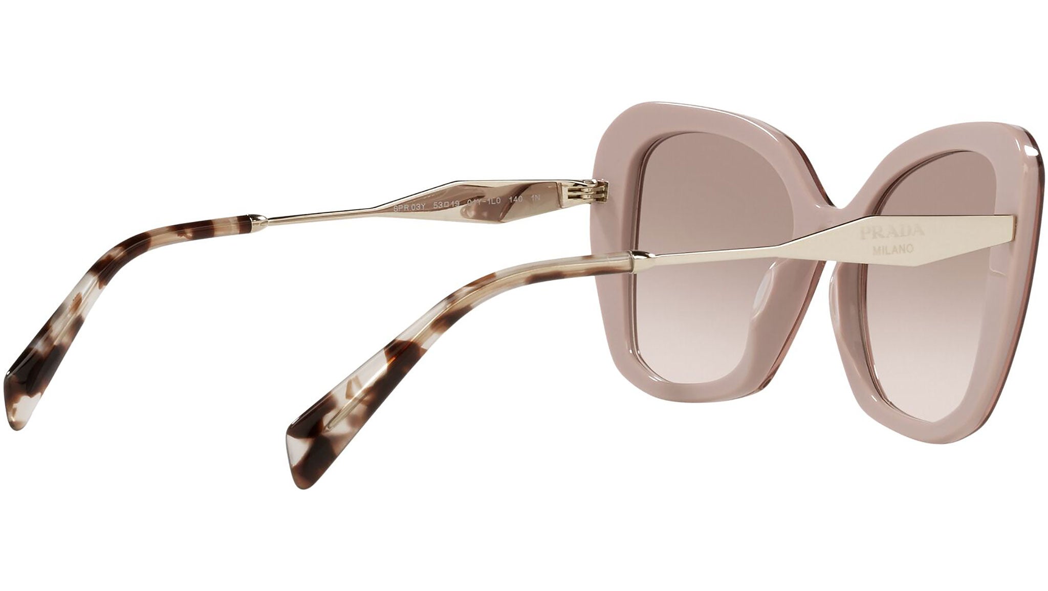 Occhiali da sole Prada modello PR 03YS nella variante colore 01Y1L0 alabastro e cristallo con lenti color marrone chiaro sfumato. Prada è uno dei marchi più rappresentativi della moda italiana, un esempio di stile, dove cultura e tradizione si fondono in uno dei brand più innovativi, prestigiosi e riconosciuti al mondo. Le collezioni di occhiali da sole Prada rispecchiano una grande attenzione ai dettagli e alle nuove tendenze, per uno stile inconfondibile, senza eguali, di raffinata eleganza e qualità assoluta.