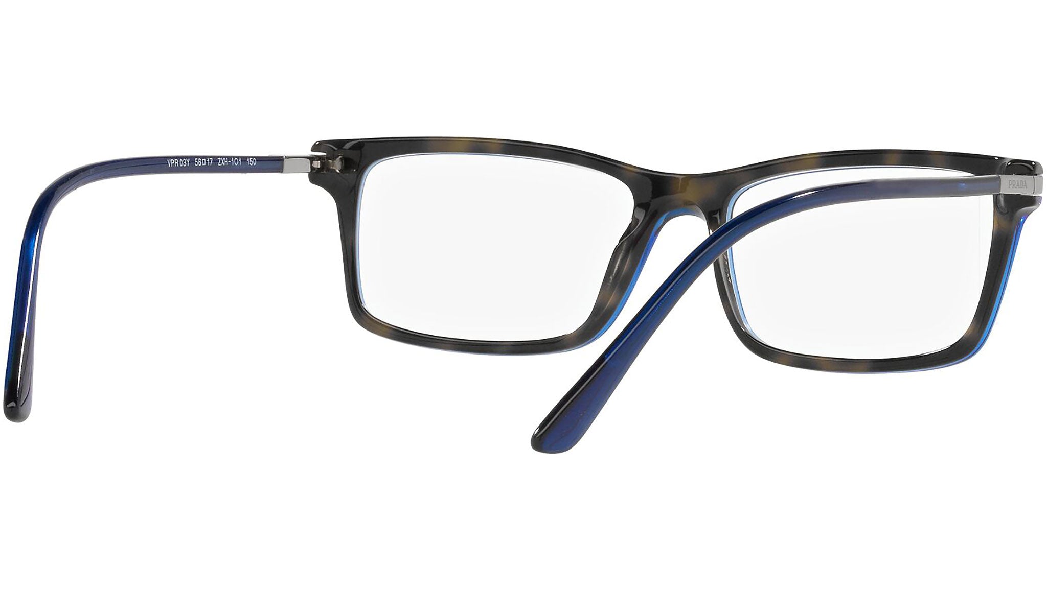 Occhiali da vista Prada modello PR 03YV variante colore denim tartaruga, codice colore ZXH1O1. Prada rappresenta il vertice della tradizione e della moda Italiana. È uno dei brand più innovativi, prestigiosi e più riconosciuti nel mondo del fashion e degli accessori di lusso, massima espressione della cura per i dettagli, emblema di stile, nella sua raffinata interpretazione dei nuovi trend della moda internazionale.