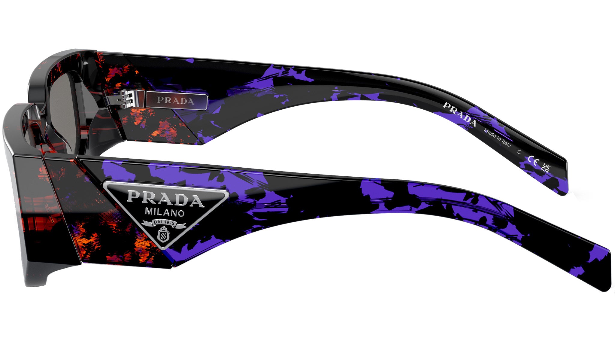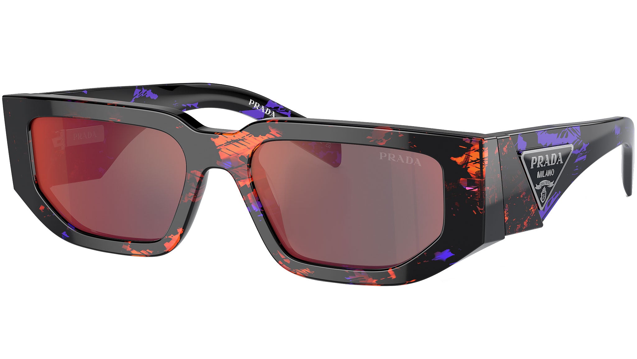 Occhiali da sole Prada uomo modello 09ZS con montatura arancione astratto full rim in acetato e lenti grigio scuro a specchio blu / rosso base 2. Fit a ponte alto. Linea: Catwalk. Brand code: PR09ZS. Codice colore: 06V40E. Rivenditore autorizzato Prada. Ogni prodotto Prada viene consegnato con astuccio originale e accessori ed è coperto da garanzia del produttore di 12 mesi.