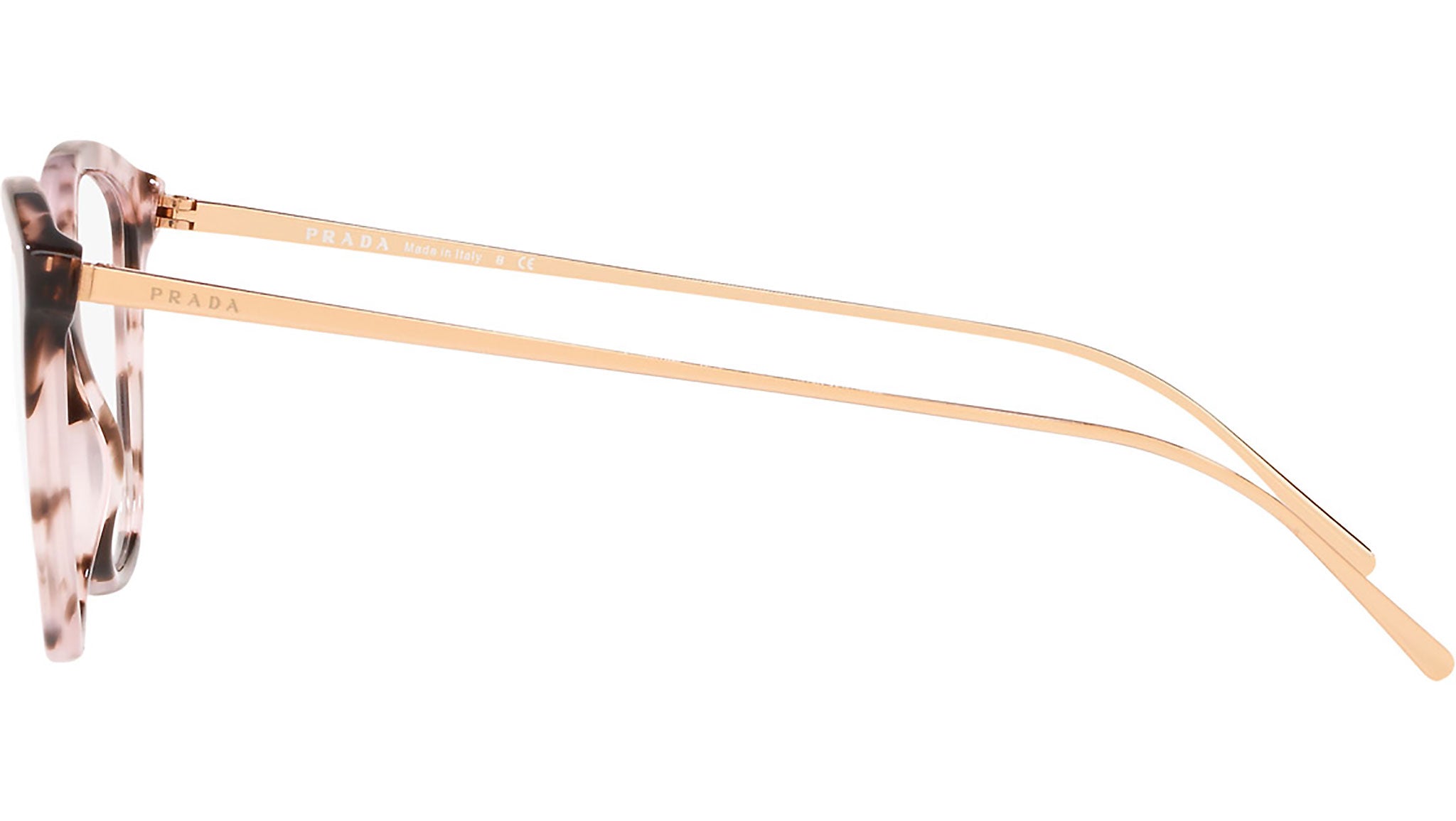 Prada Eyewear Collection model PR 11VV, pink havana frame variant, color code ROJ1O1. Prada represents the best of Italian culture and tradition. It is one of the most innovative, prestigious and widely recognized brands in the fashion and luxury goods industries, with a keen attention to details and new trends.